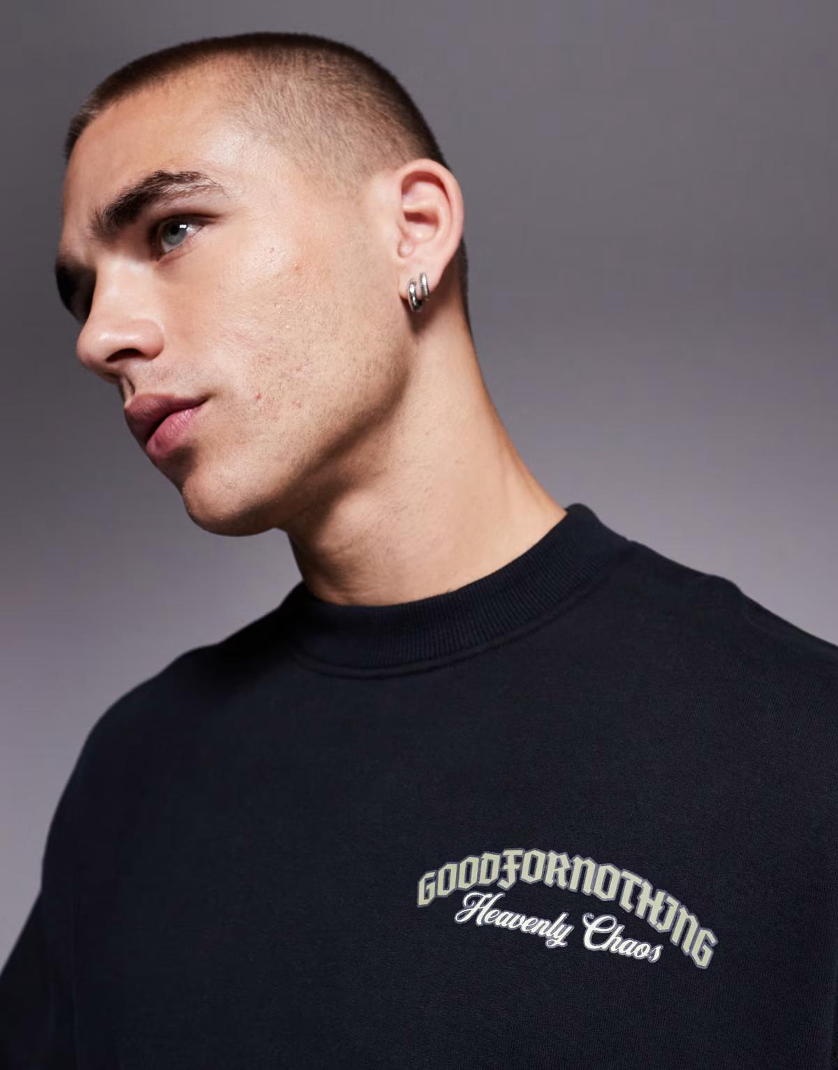 BrandStreetwear label Good For Nothing confronts the status quo with its collection of contrasts. Established in 2011, it challenges construction with tees and sweats in cut and sew designs and high definition prints. The brand’s butterfly logo also symbolises growth and strength.Size & FitModel's height: 180cm/5'11"Still unsure what size to get? Check out our size guide.