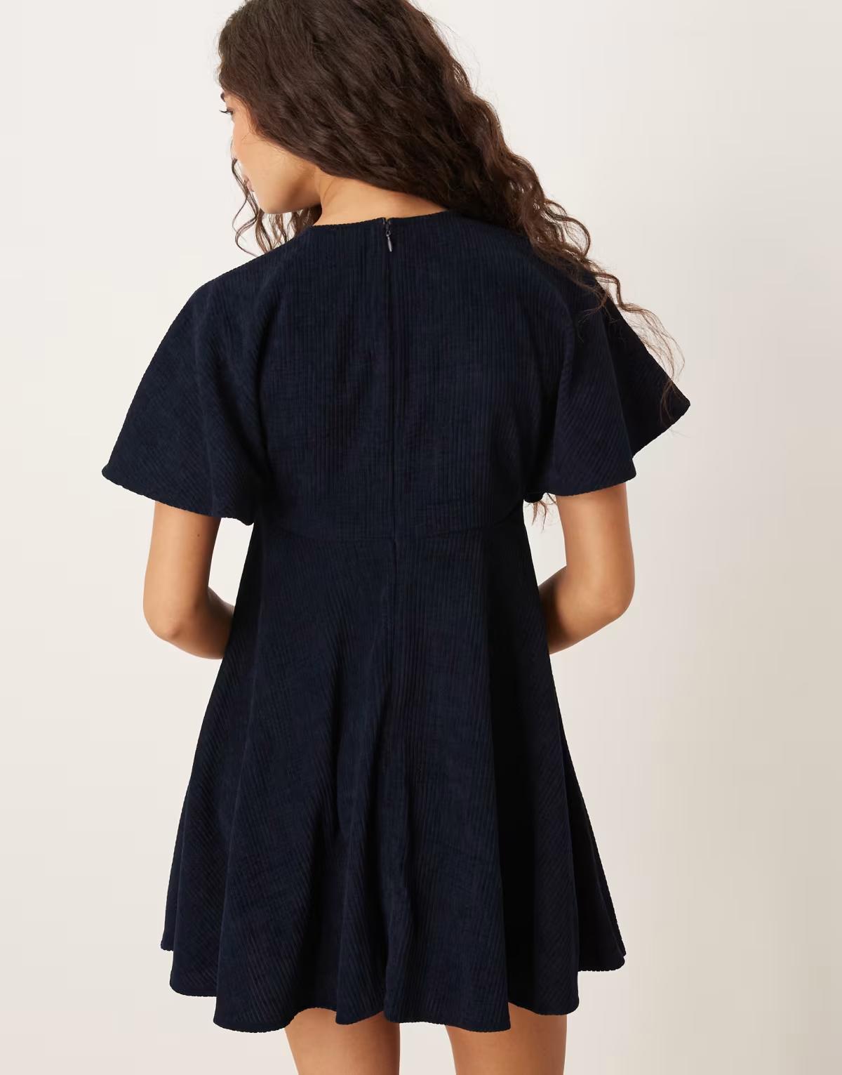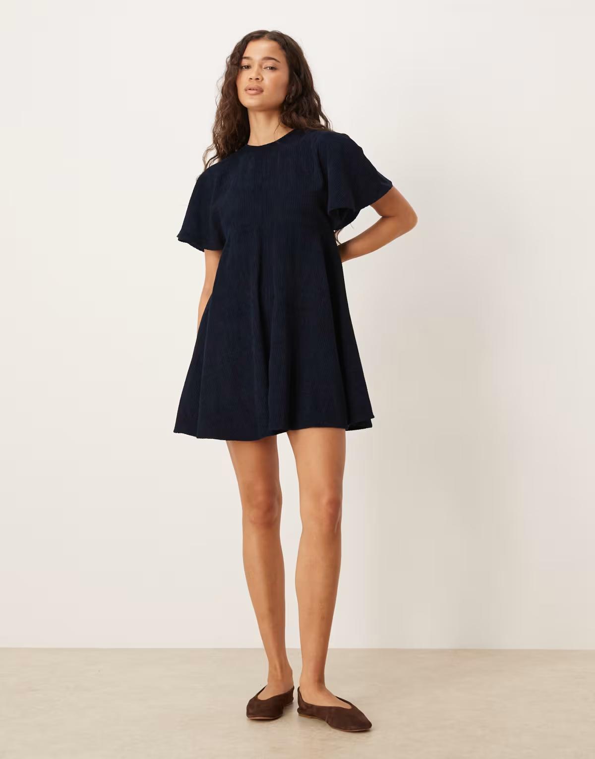 ASOS DESIGN cord t-shirt mini dress with stitching detail in navy