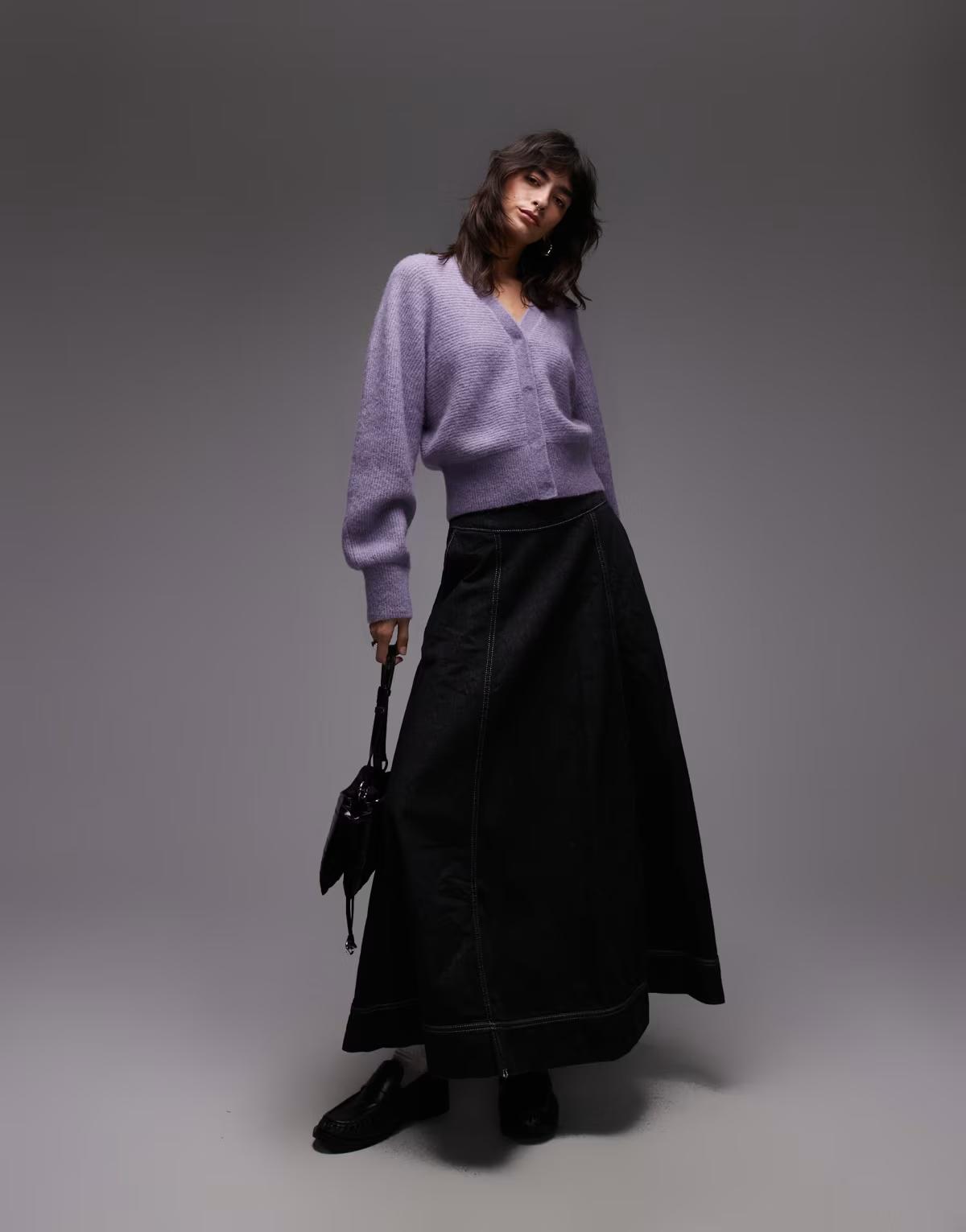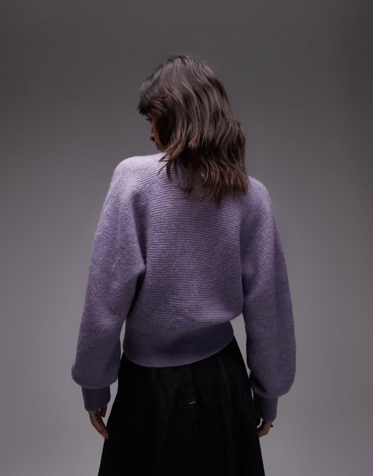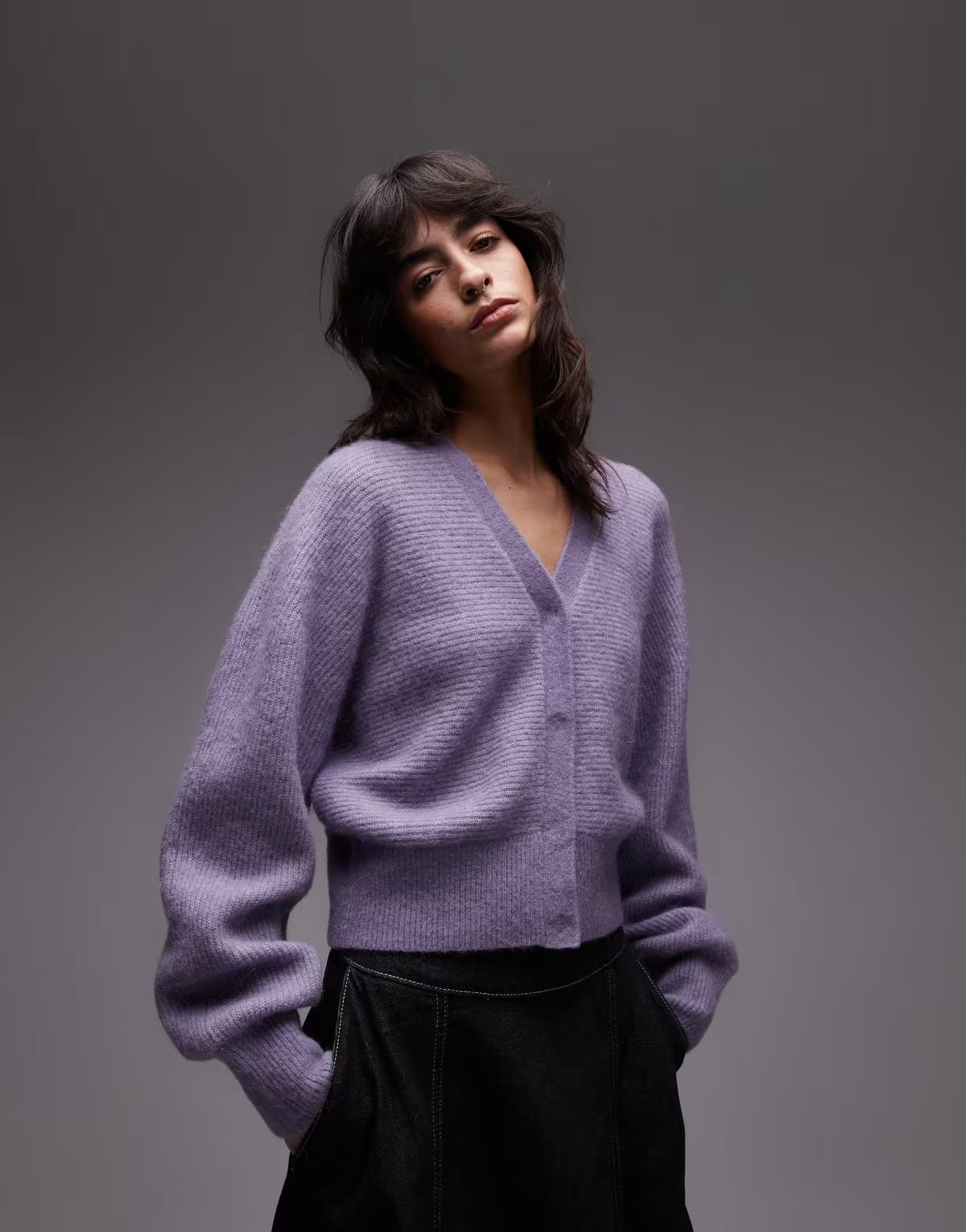 & Other Stories alpaca blend balloon sleeve knit cardigan in lilac