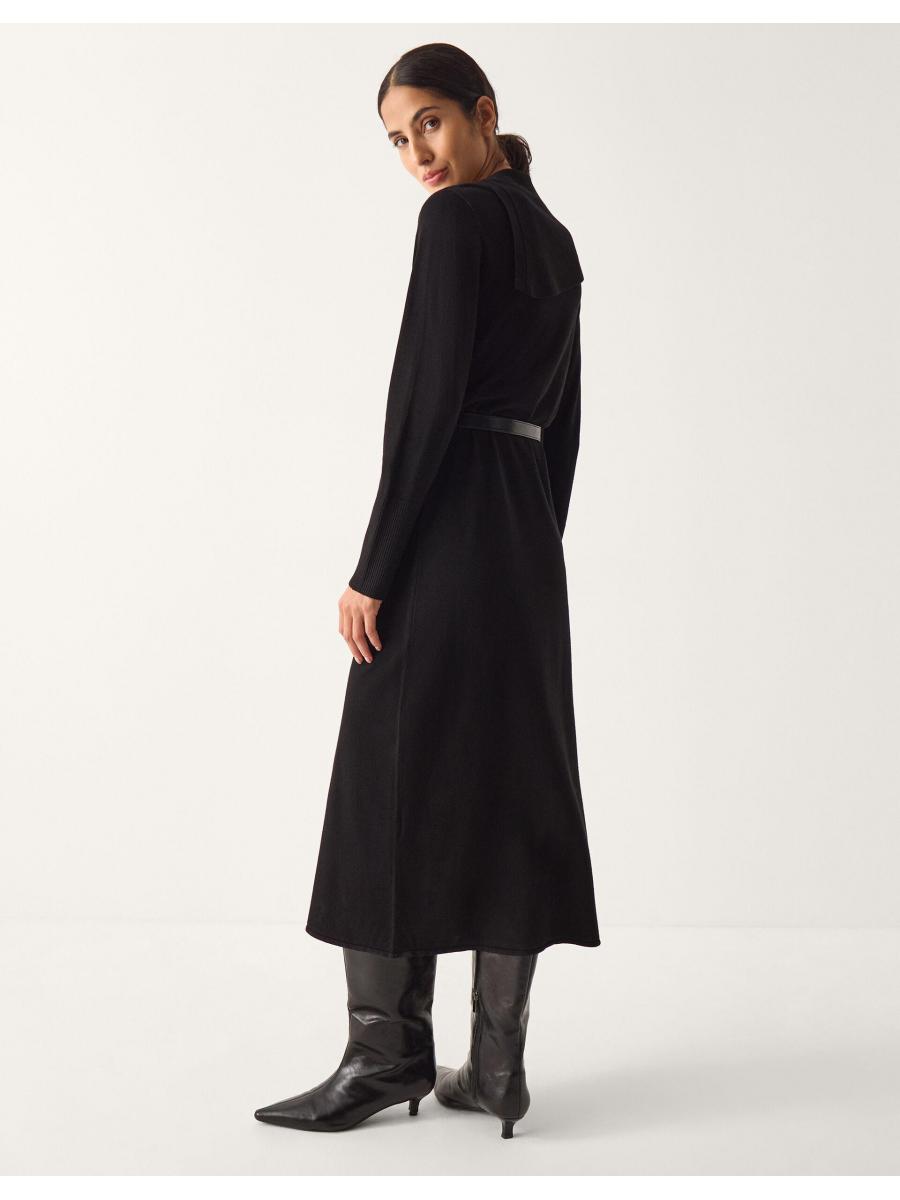 Jump(er) to it. Equal measures chic and cosy, this knitted dress is a timeless winter staple you can wear all day and into the night. Designed with an asymmetrical collar trimmed with gold-tone buttons, it falls to a midi length, leaving room to show off your favourite knee-high boots. Black