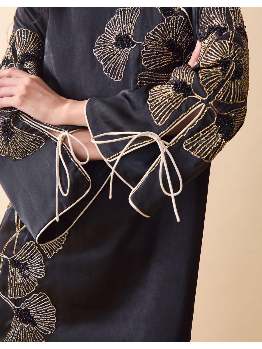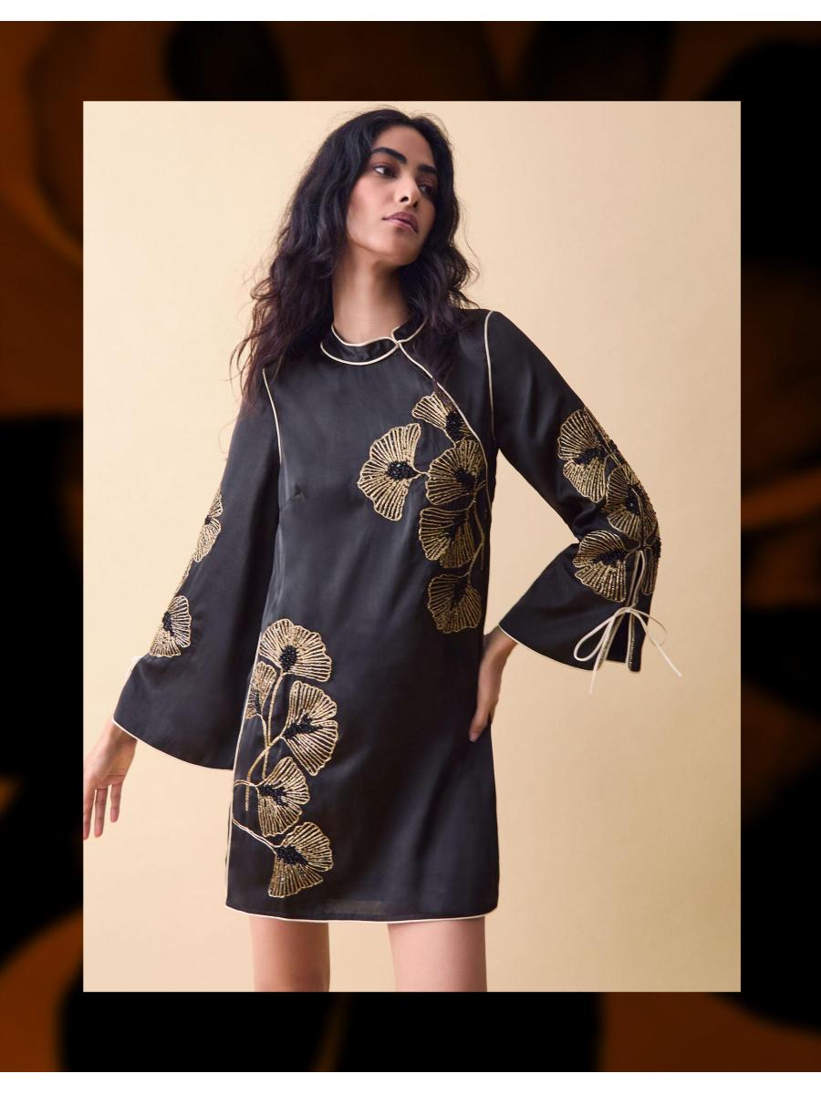The product: We're a fan. Taking your LBD collection to the next level, this mini will have heads turning at every function. Showcasing sleeves with statement flair, it's decorated with a fan of florals in golden shades and dainty sequin embellishments for a touch of sparkle. Style as a statement on its own, or live the full noughties boho fantasy by pairing over slouchy trousers with your go-to ballet pumps.