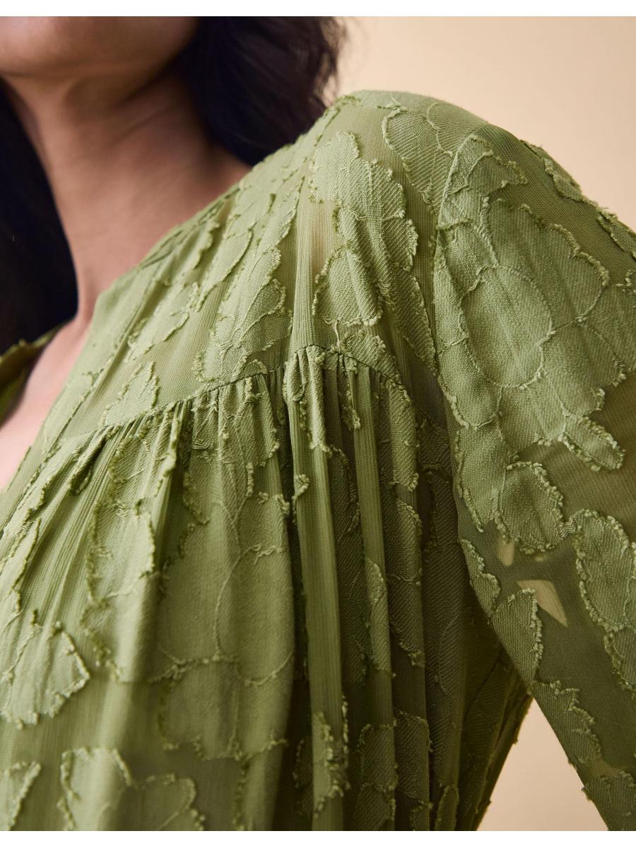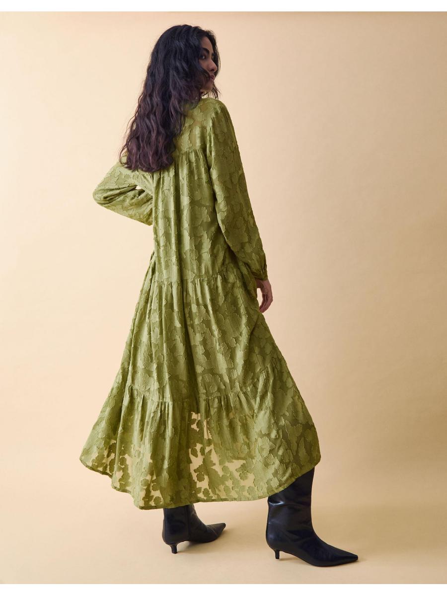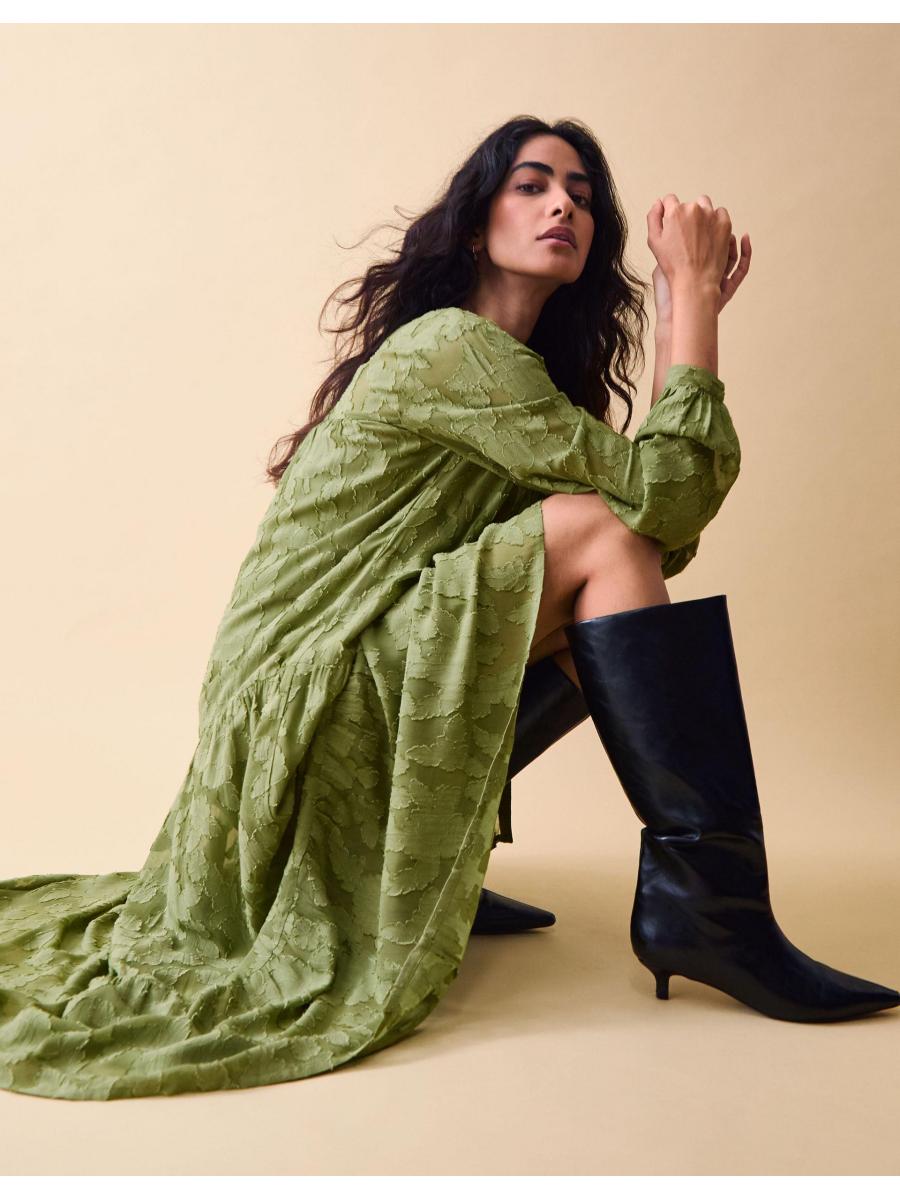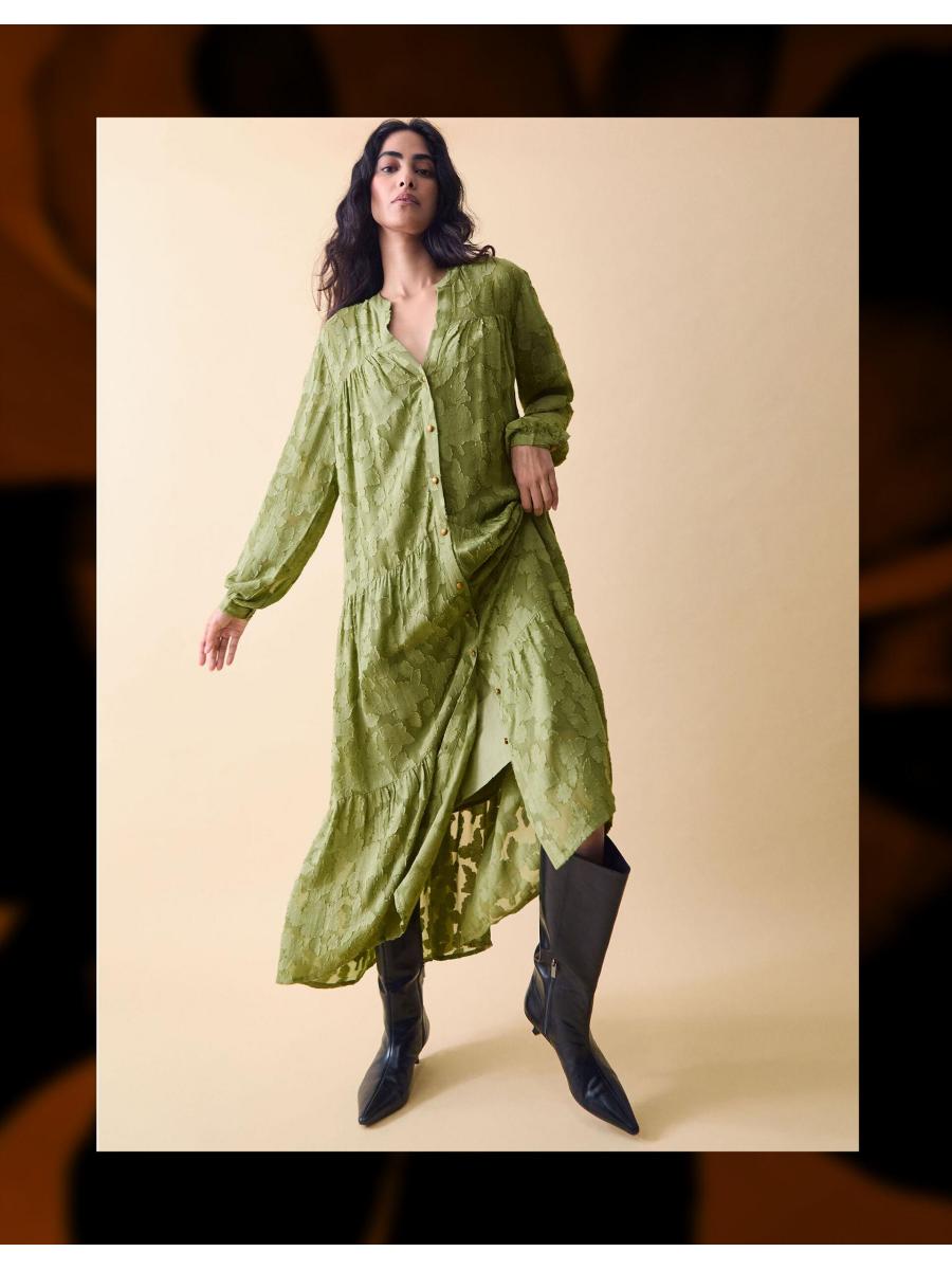 The product: Fancy a matcha? Breathing life (and delicate textures) into your Autumn wardrobe, this dress showcases abstract florals with a burnout finish in a soft green hue. Thanks to the blouson sleeves and relaxed, ankle-grazing silhouette, it's a versatile pick you can dress up or style casually throughout the seasons.