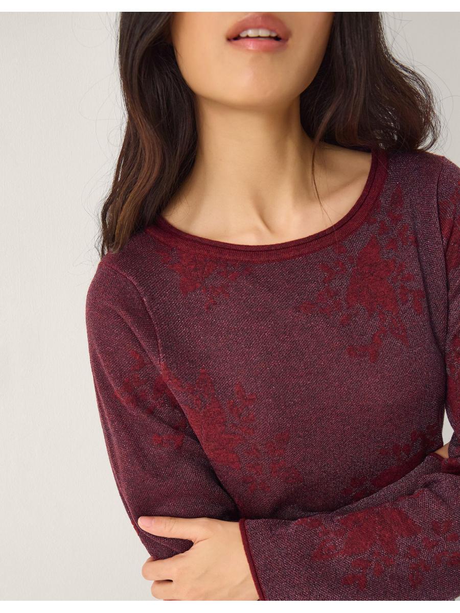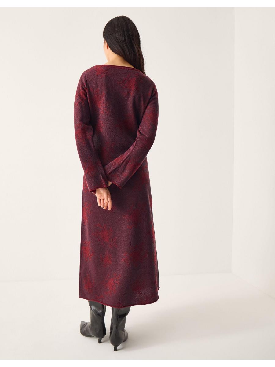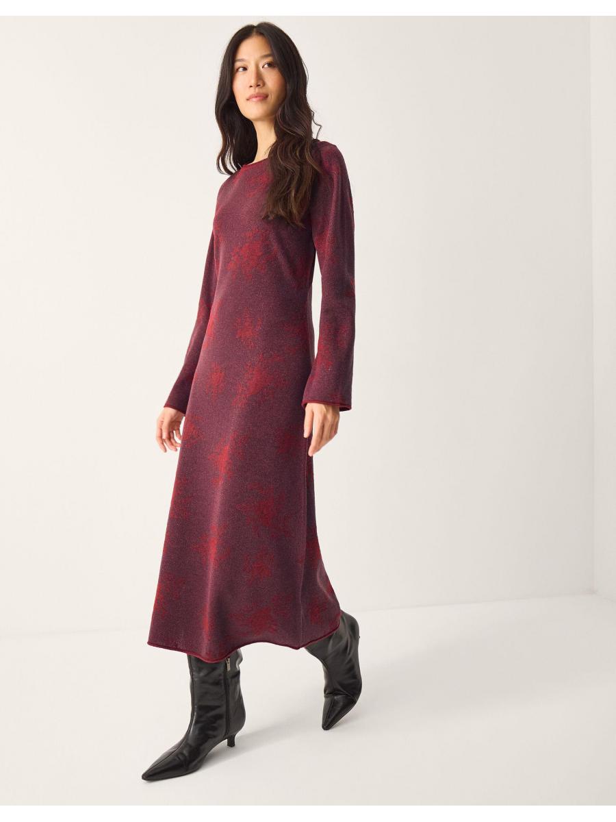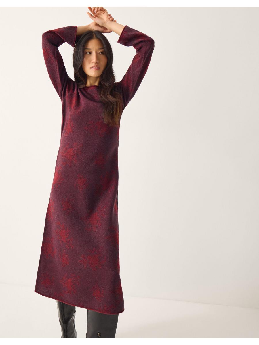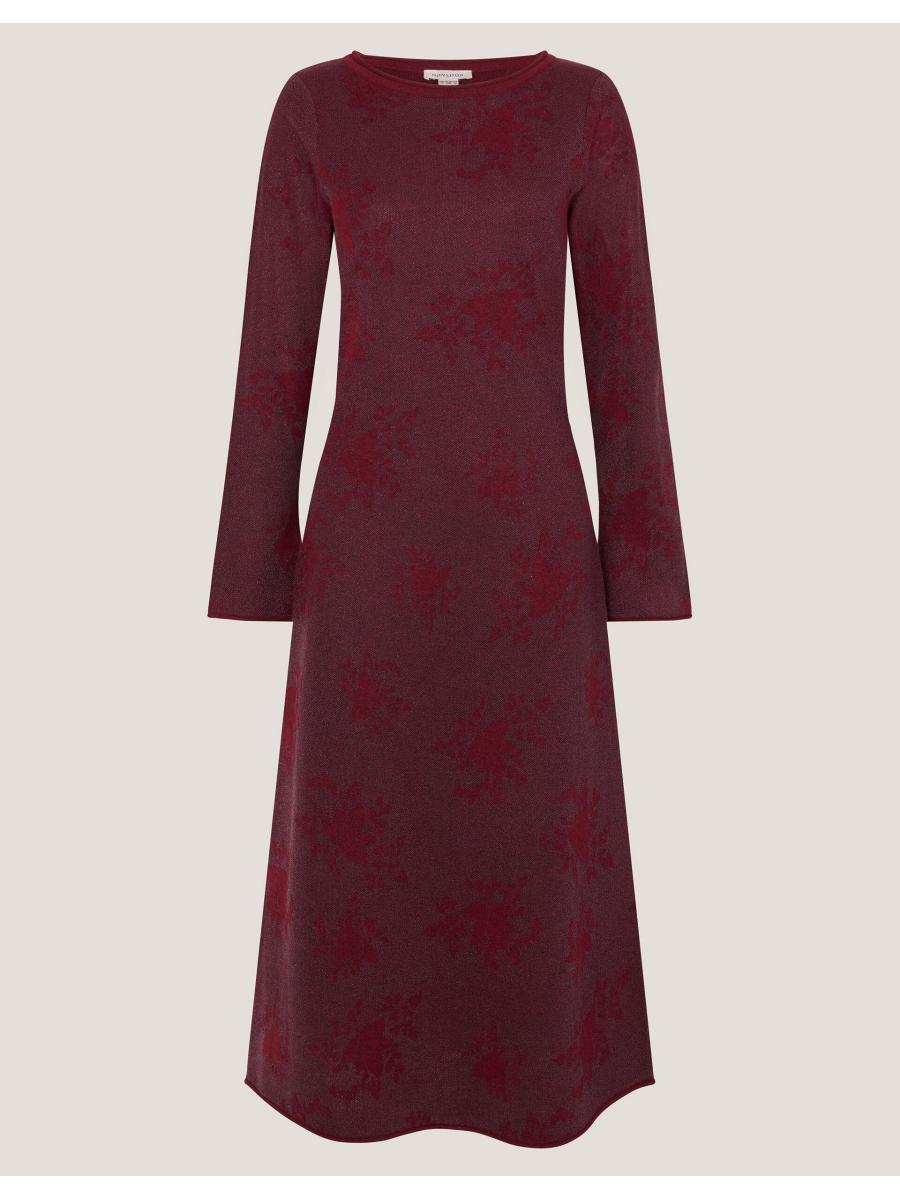 Your search for the perfect winter dress is over. Showcasing merlot-coloured florals over the glitzy knit backdrop, this dress is equal measures chic and cosy. Framed with long sleeves, it's finished with a midi-length hem, leaving room to show off all the knee-high boots in your shoedrobe. Red