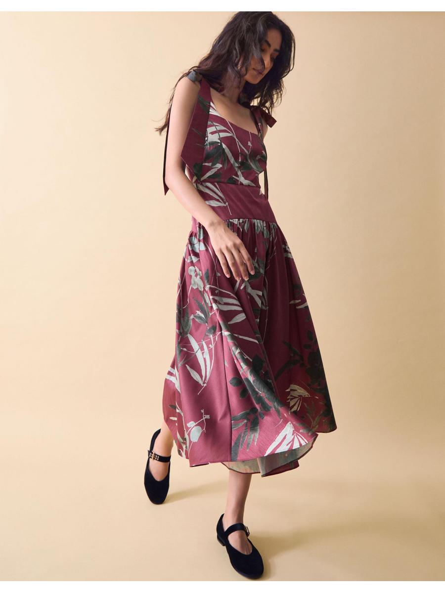 The product: Just dropped... The dress of your dreams. Soaked in a shade of red that *screams* Autumn, this dress is cloaked with bold, monochrome florals for a timelessly feminine feel. The tie-yourself straps offer a playful finish, whilst the dropped waist is a nod to the inspiration of the past.