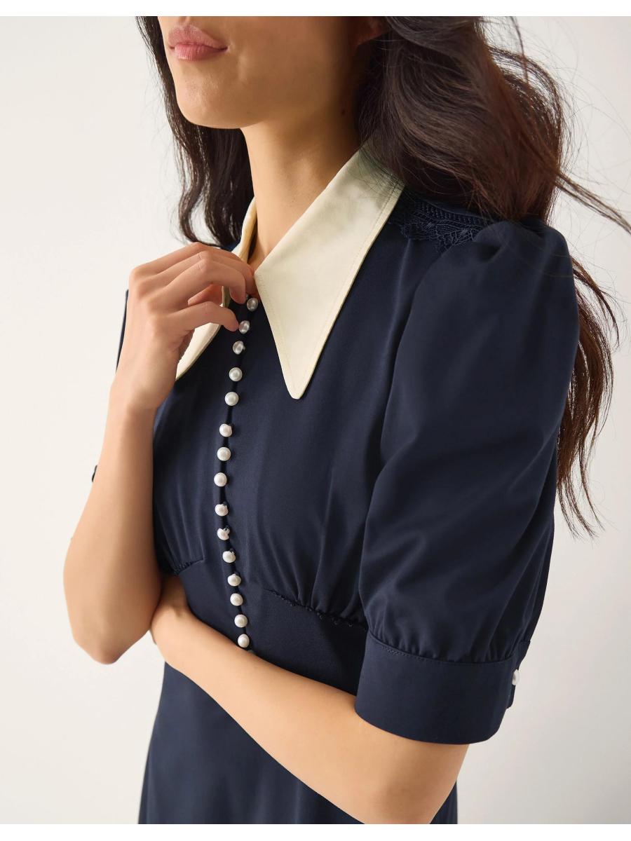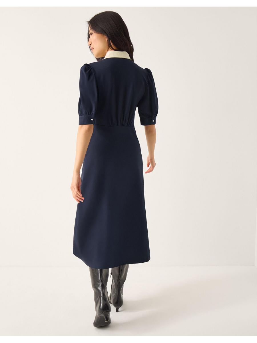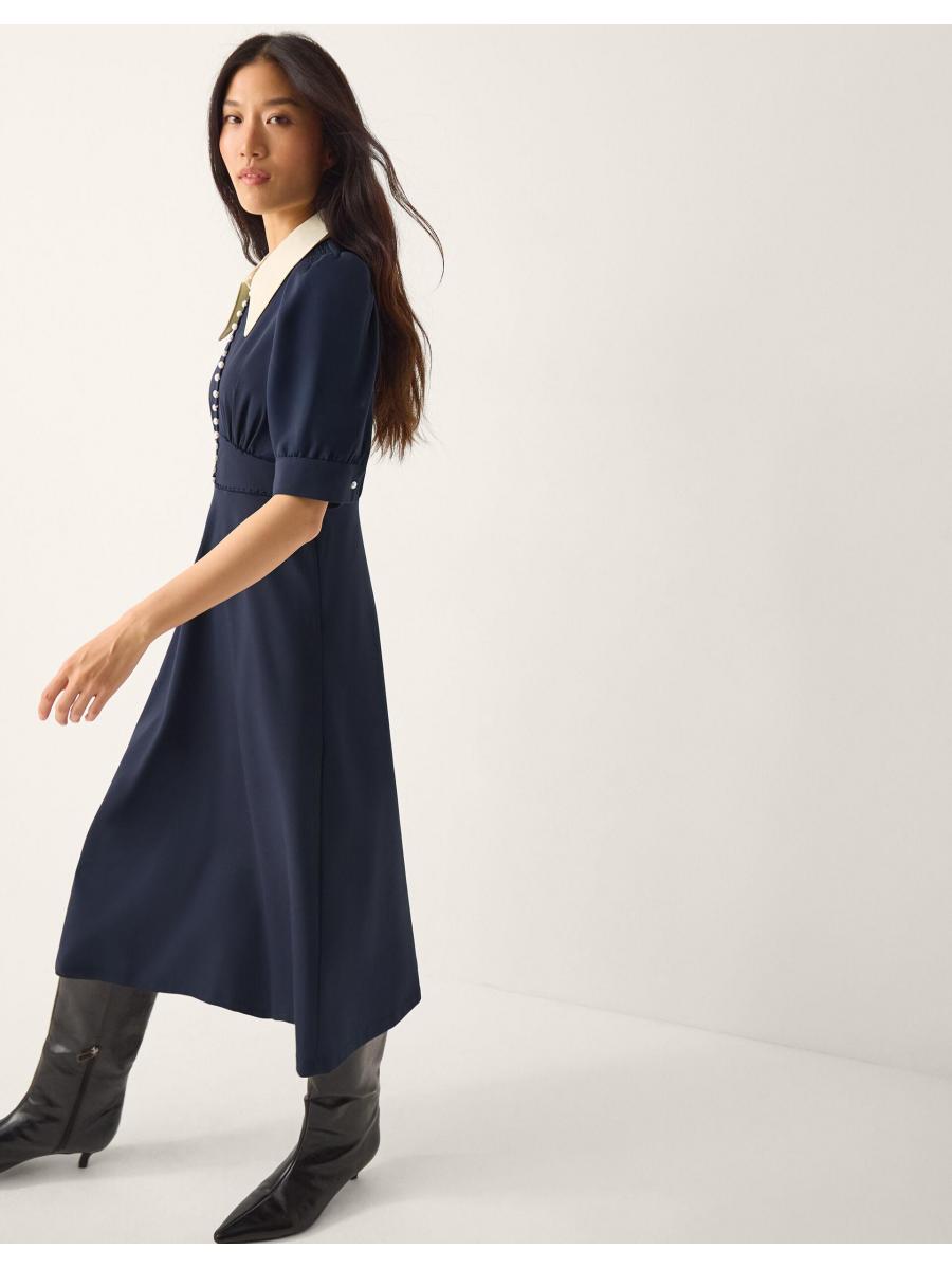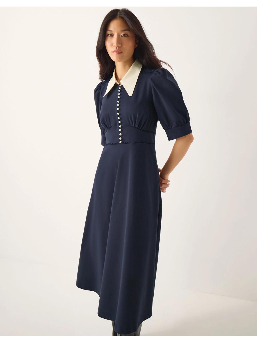 Designed with a striking collar and a line of buttons on the bodice, this frock is sure to become part of your weekly rotation. Paired with boots, it's just the thing to slip on for in-office days. Cue all the compliments! Blue