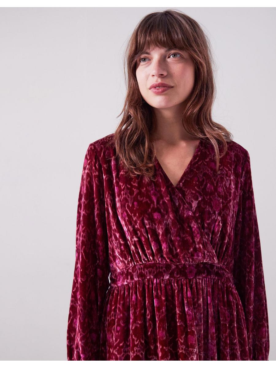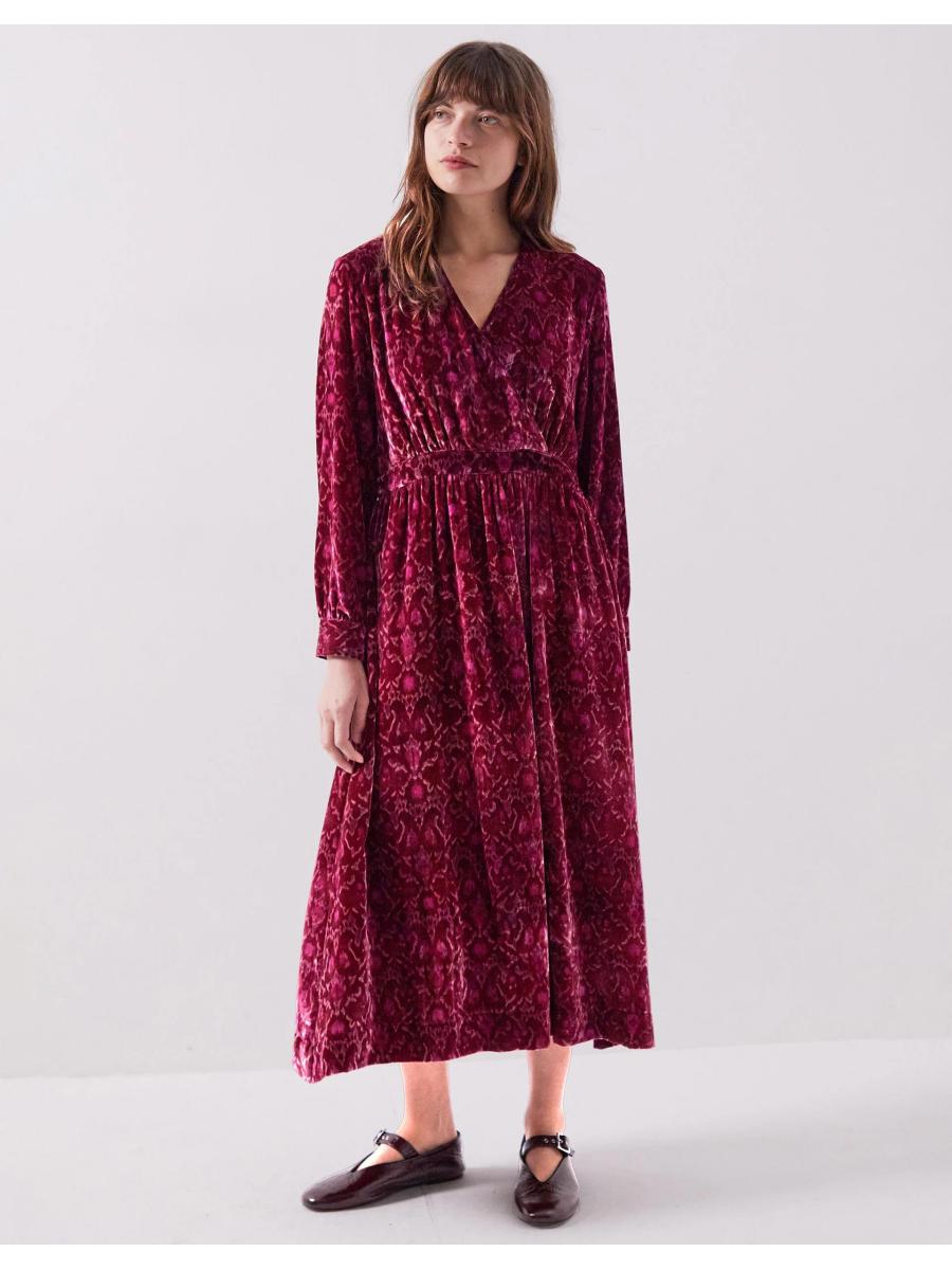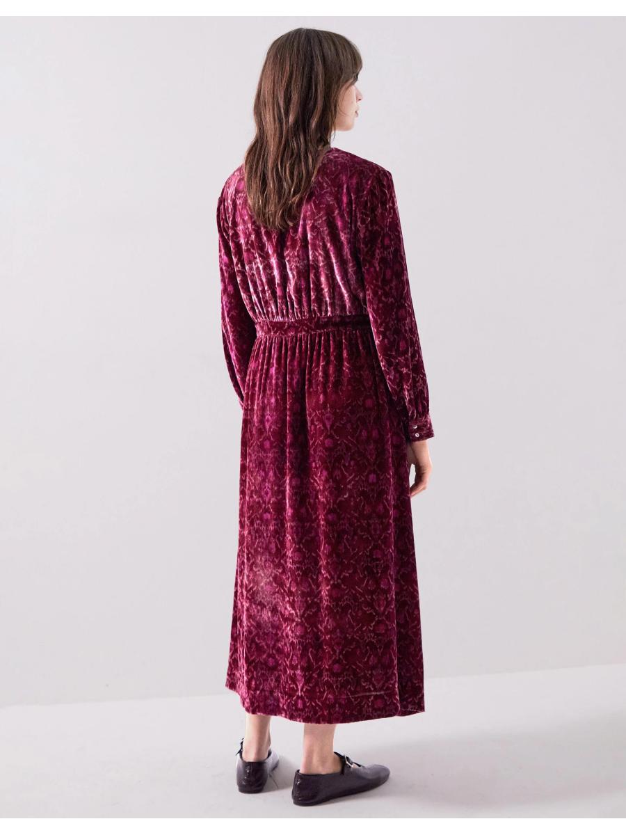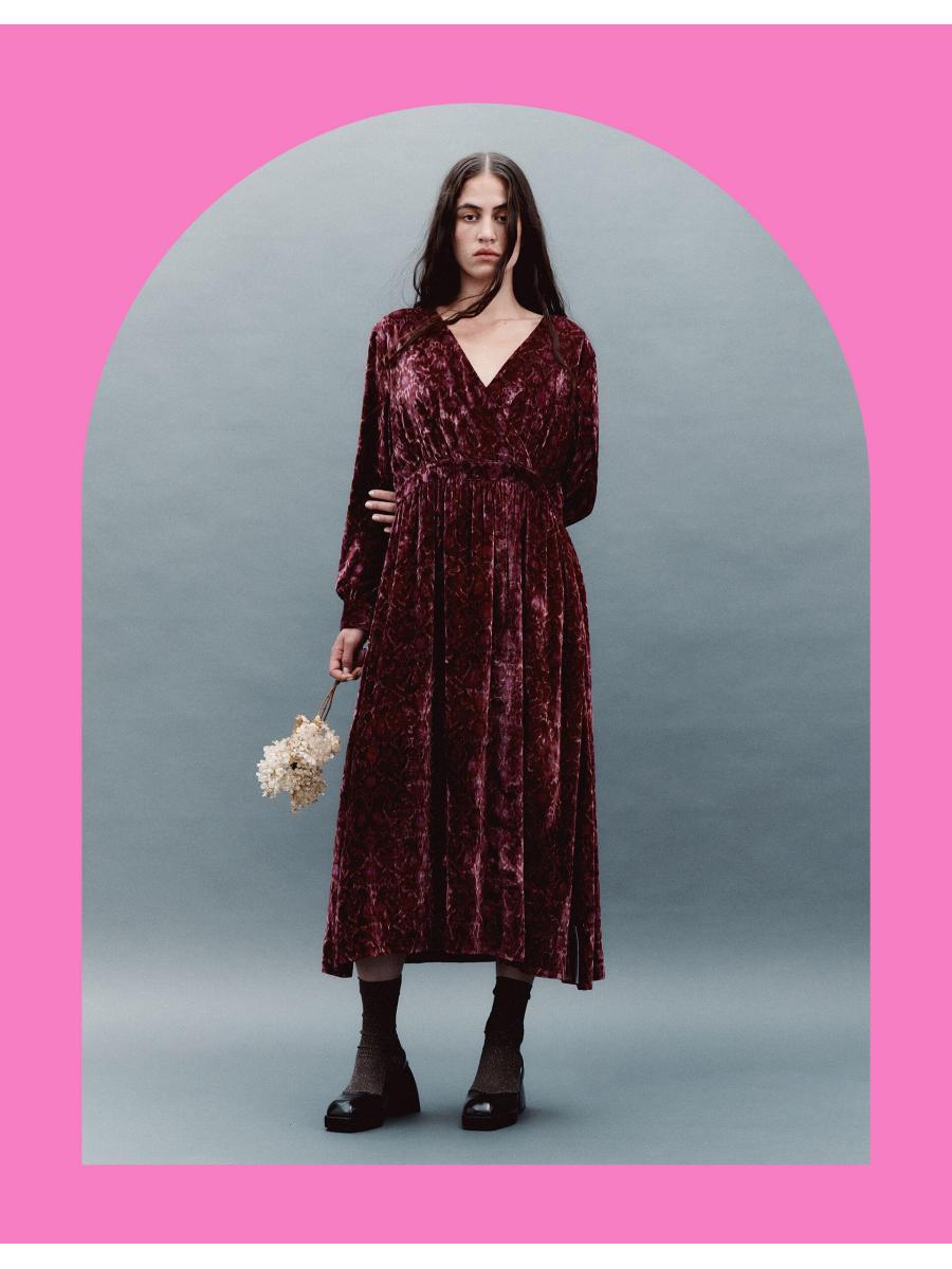 The product: Dress deliciously in red velvet. Designed in a shape that never goes out of style, this dress is a patterned piece of perfection for your wardrobe staples. Showcasing an ornate print in bubblegum and cherry tones, the calf-skimming hem leaves room to show off ballet pumps or platform heels, depending on the occasion.