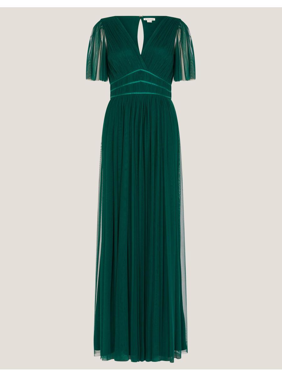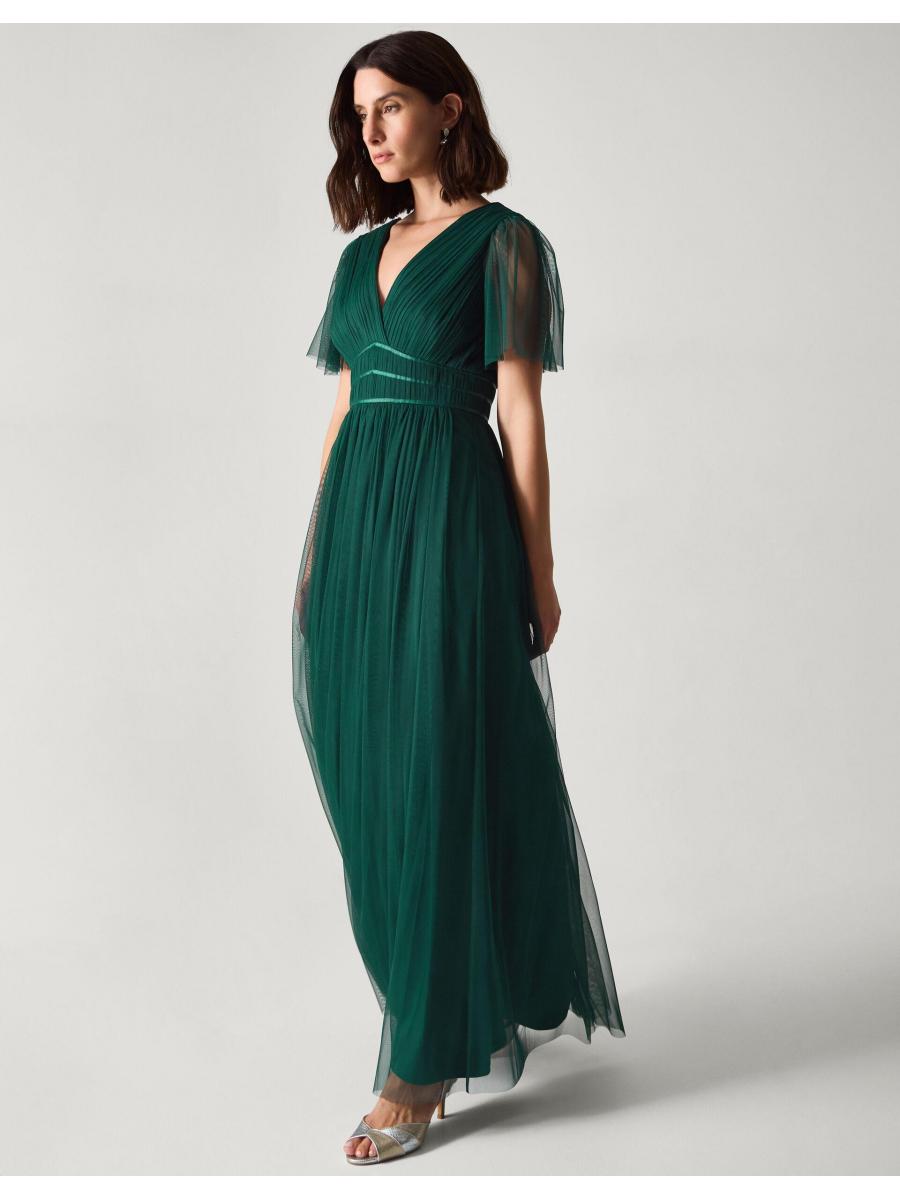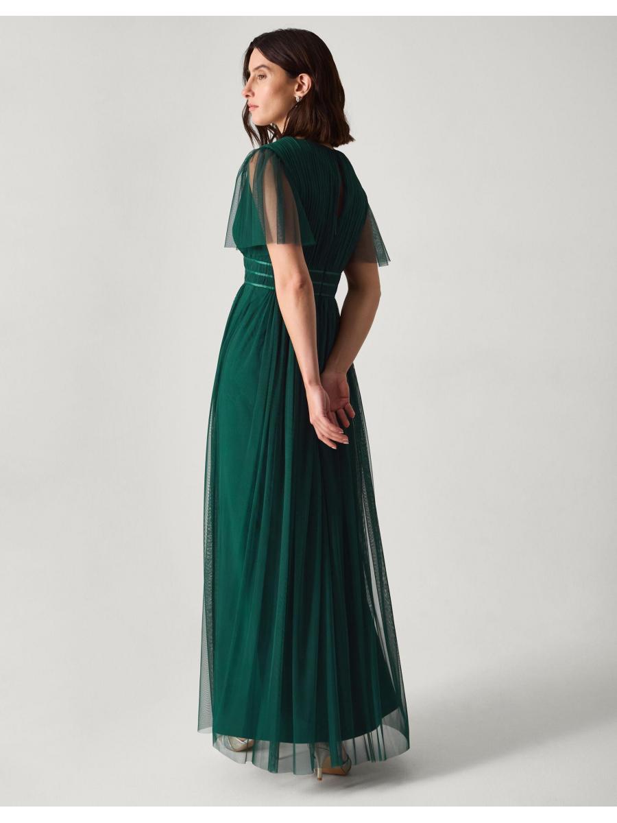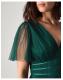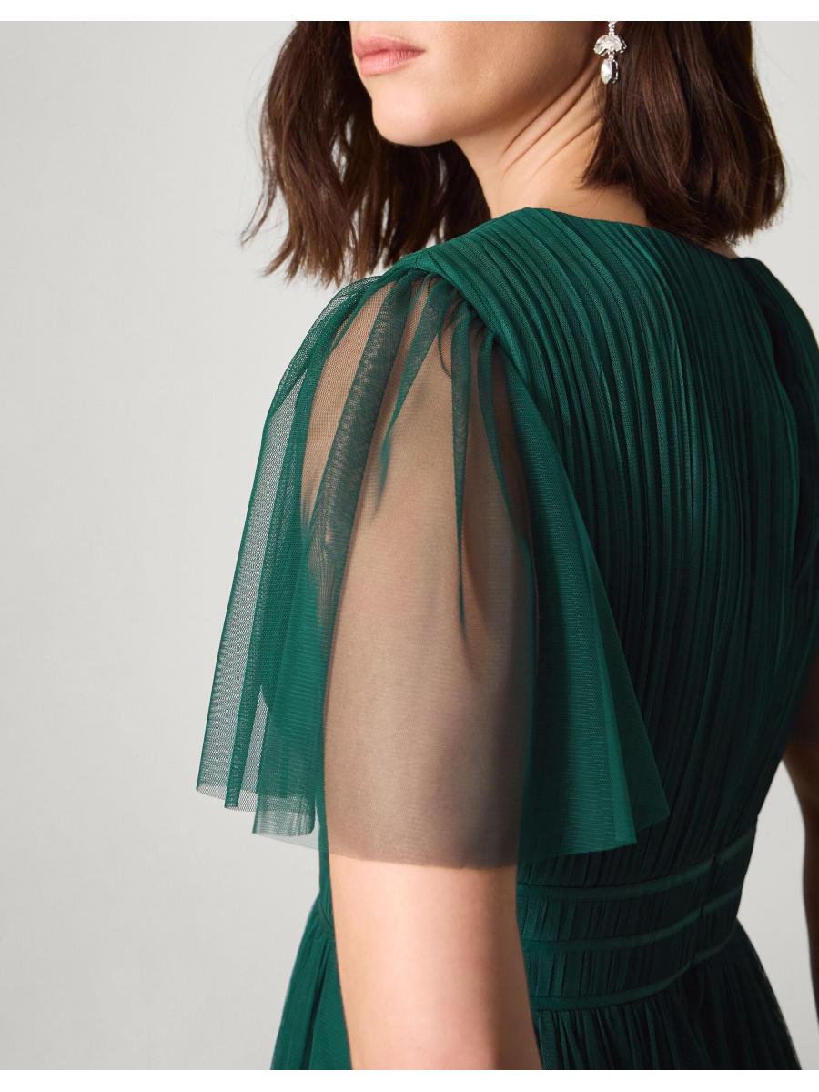 Imbued with suits-everyone elegance and sophistication, this dress will ensure the bridal party looks good and feels great during the day of celebrations. Designed with sheer tulle sleeves that dance as you move, the V-neck bodice showcases a pleated finish and a trio of satin panels to accentuate the waist. Green
