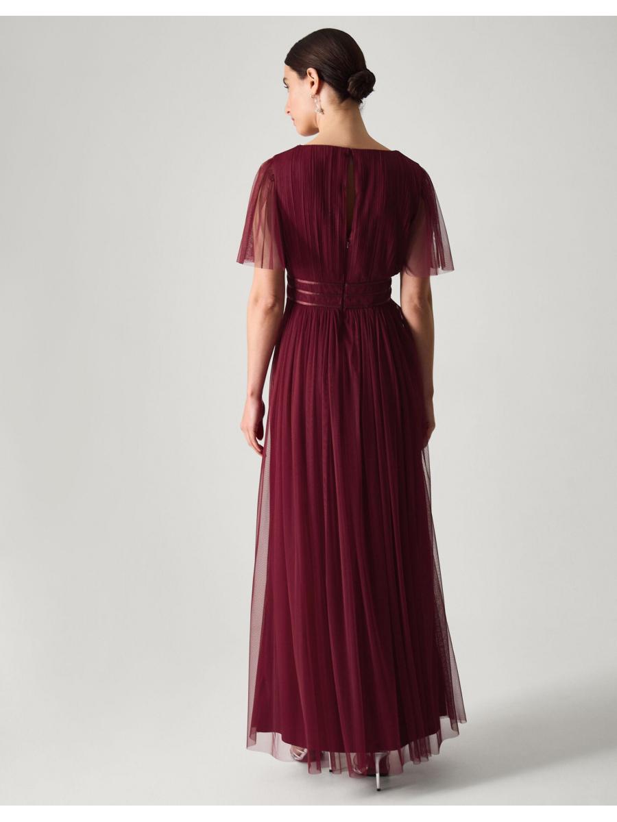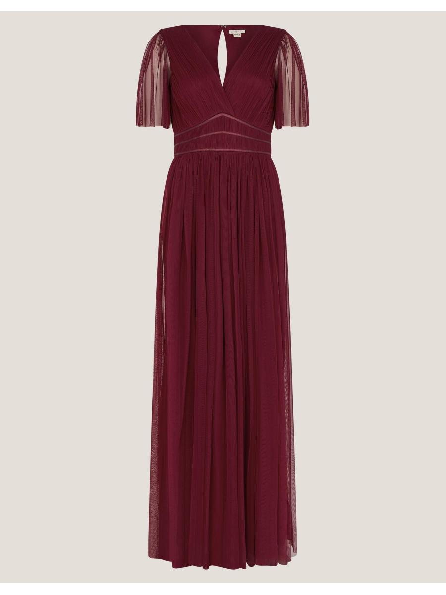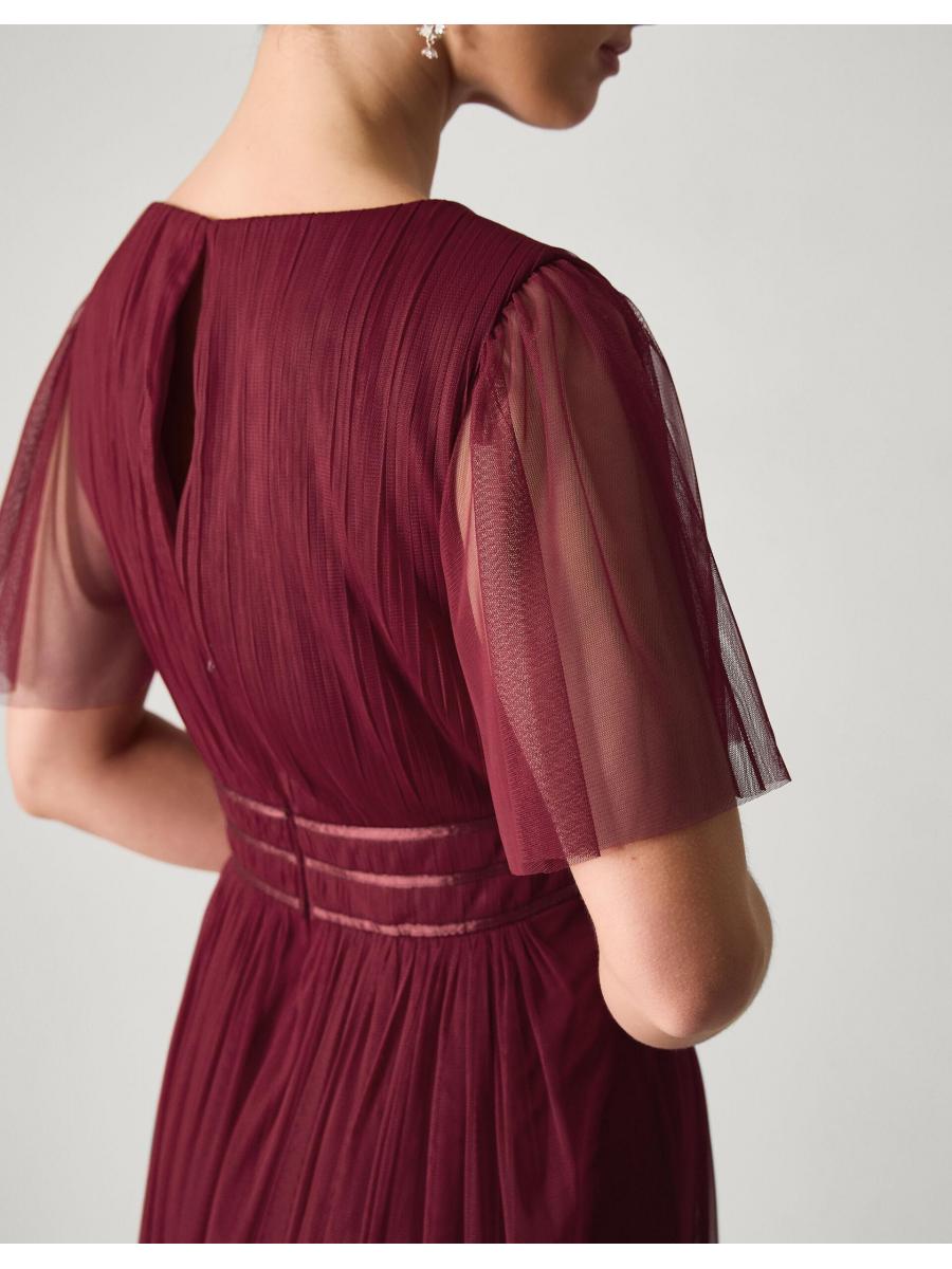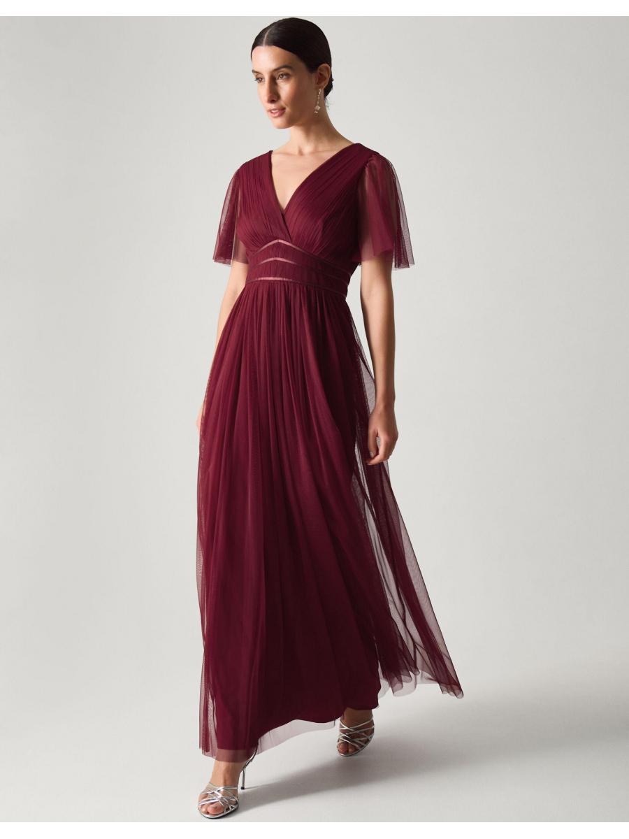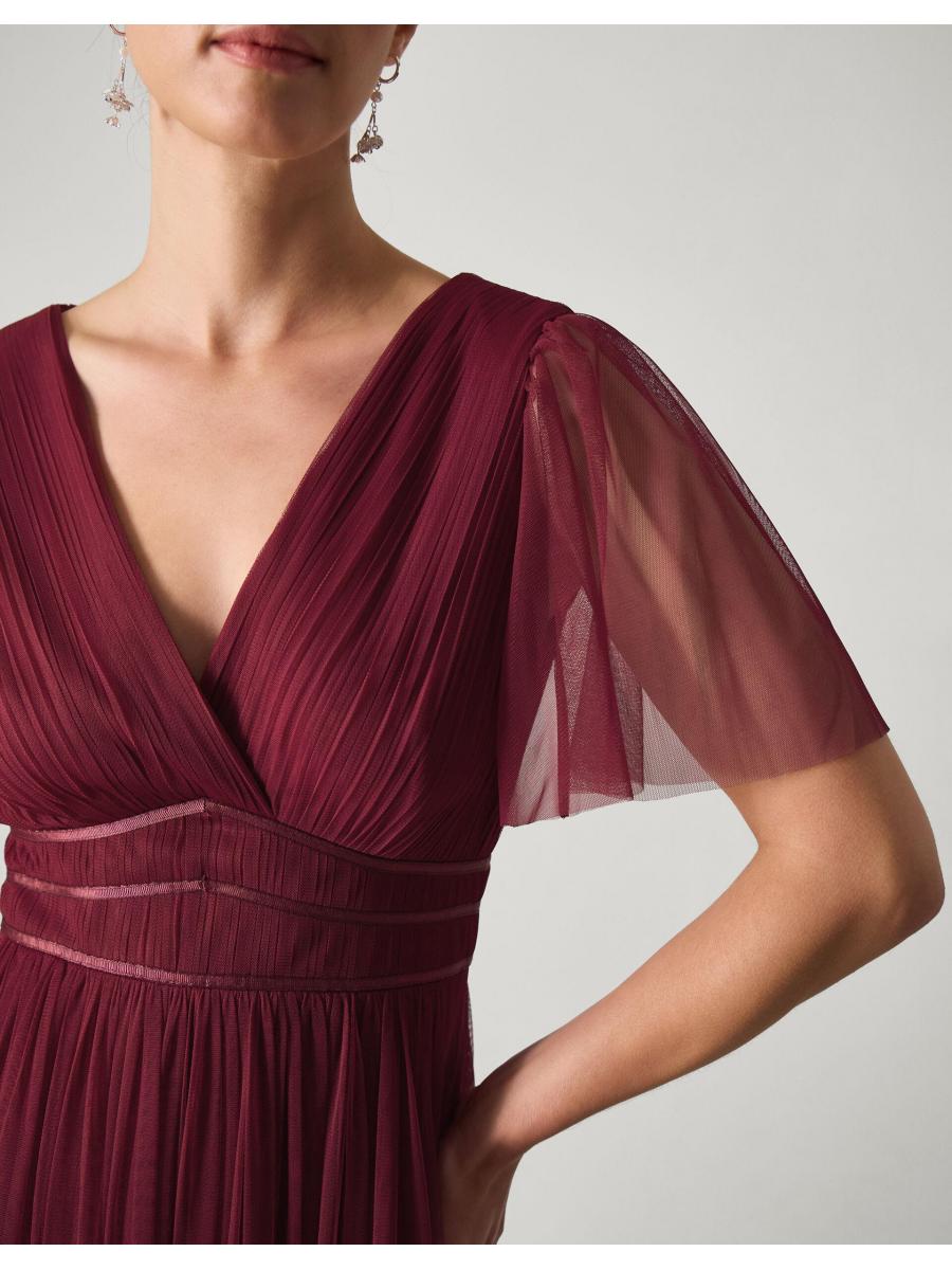 Imbued with suits-everyone elegance and sophistication, this dress will ensure the bridal party looks good and feels great during the day of celebrations. Designed with sheer tulle sleeves that dance as you move, the V-neck bodice showcases a pleated finish and a trio of satin panels to accentuate the waist. Red