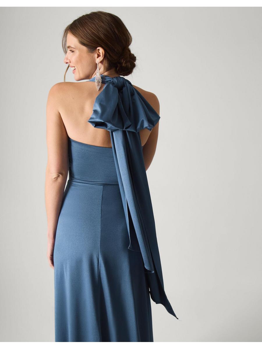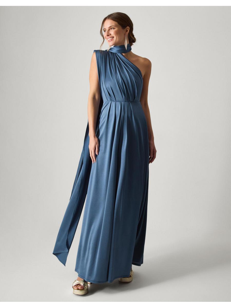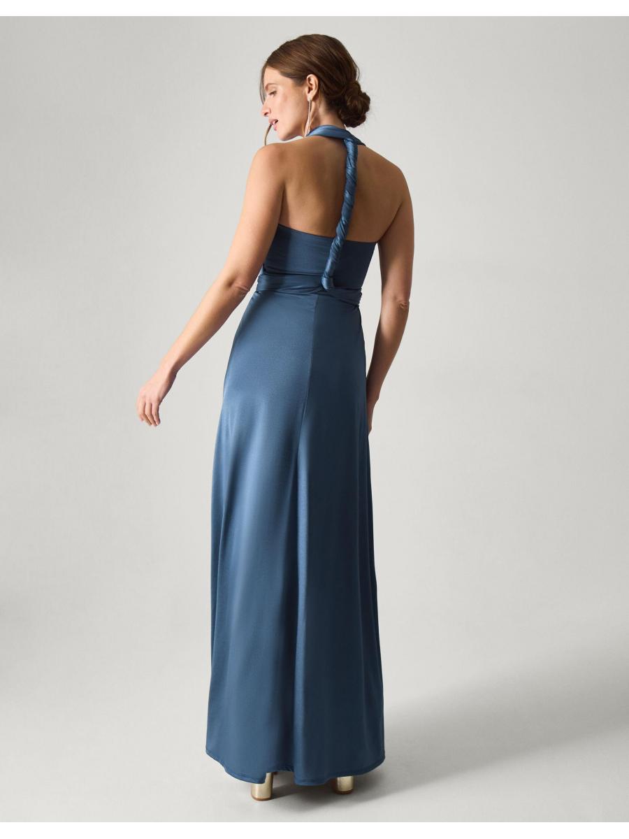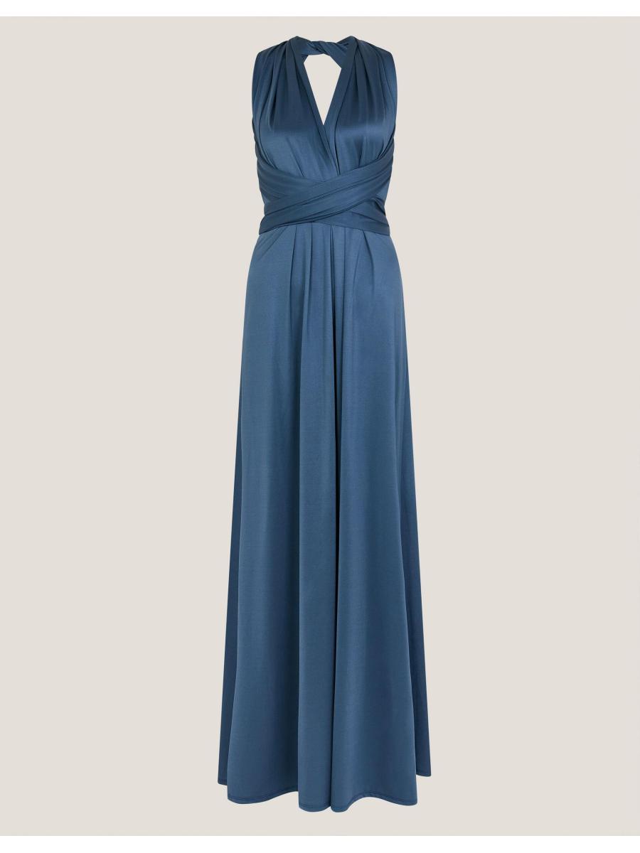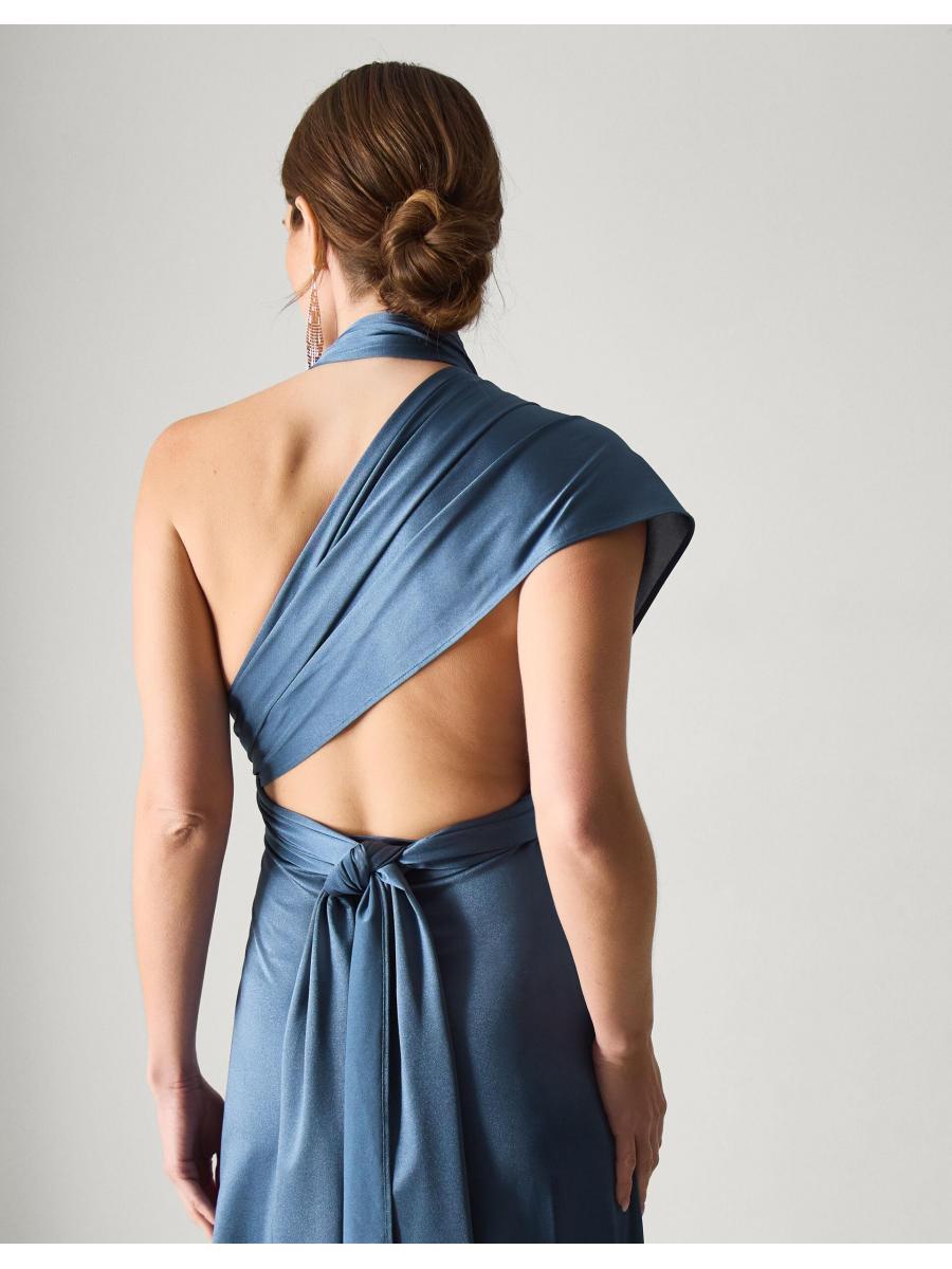 She's versatile. This smooth, silky-feel multiway dress can be tied and twisted in 15 beautiful styles, offering a different look to suit every member of the bridal party. Two long straps and a matching bandeau build the bodice, and then it's up to you whether you wear it halterneck, twisted or backless. Finished with an easy-to-alter hemline and clear instructions for all the ways to tie it.