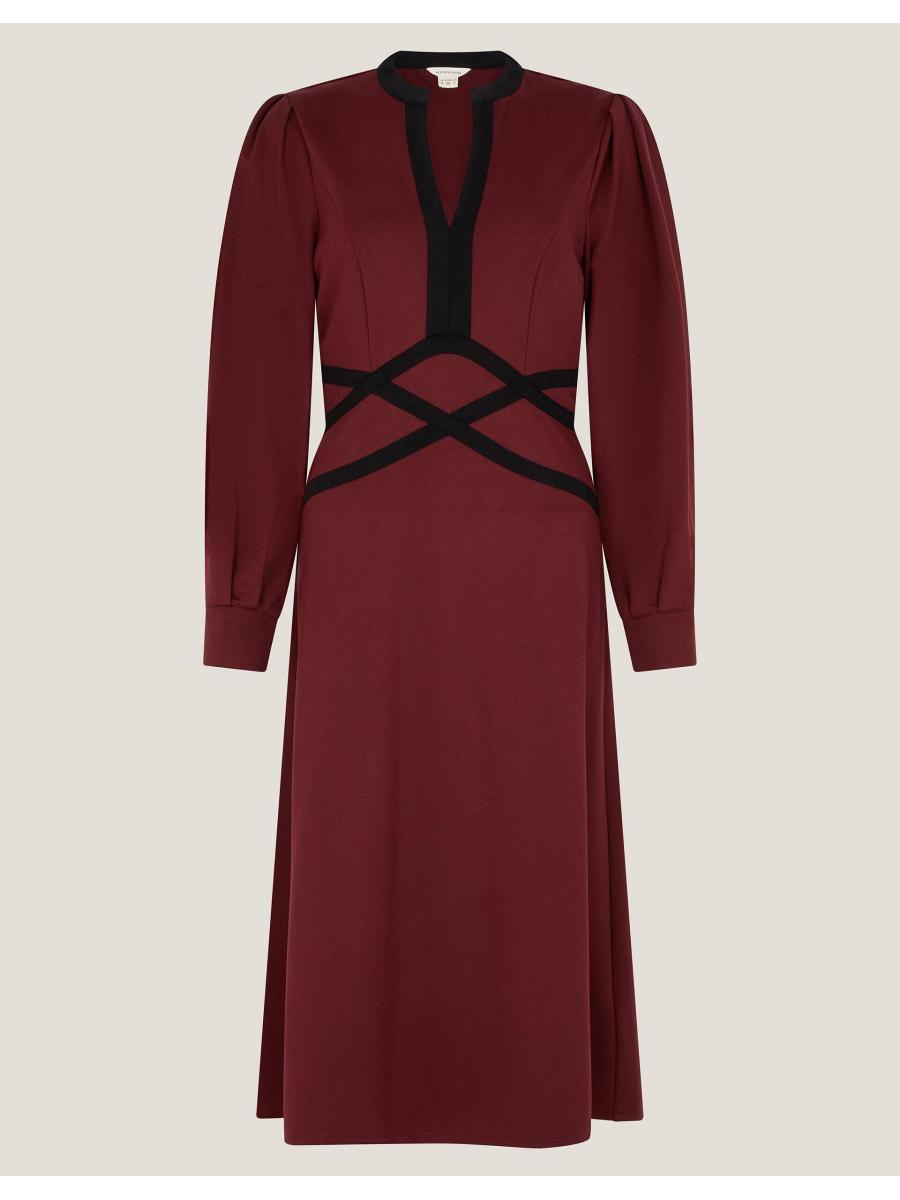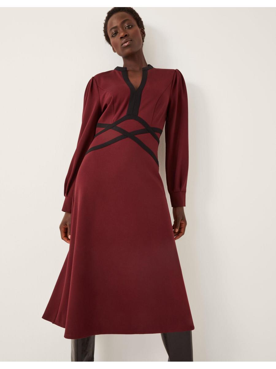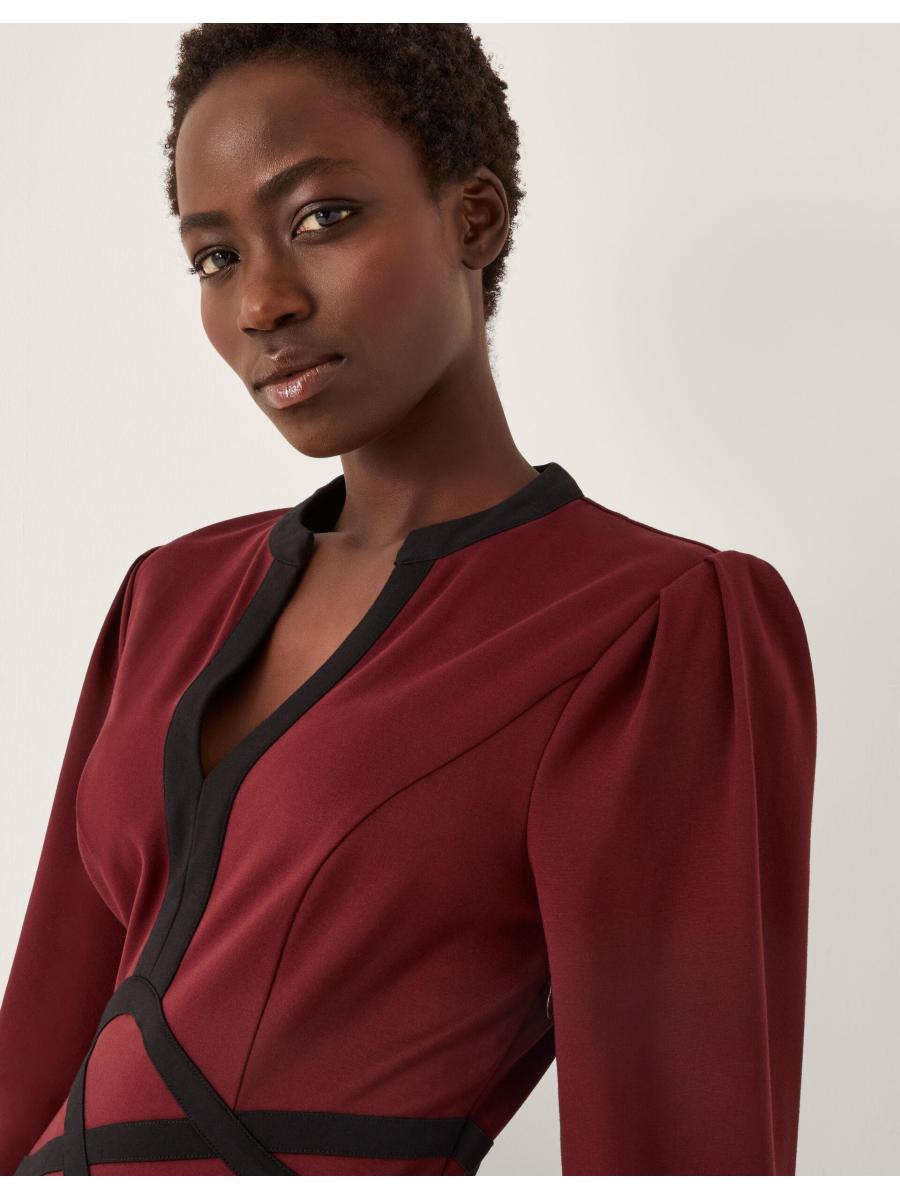 Don't leave us on red. Designed with contrast panels on the bodice, this midi dress features a V-neckline and long sleeves. Taking you from desk to drinks, this timeless number belongs in your wardrobe. Red