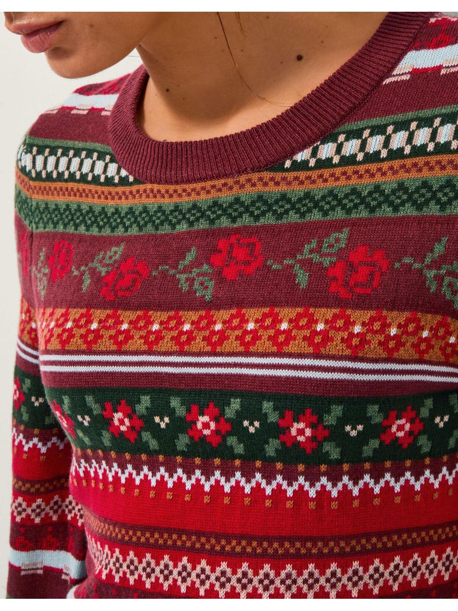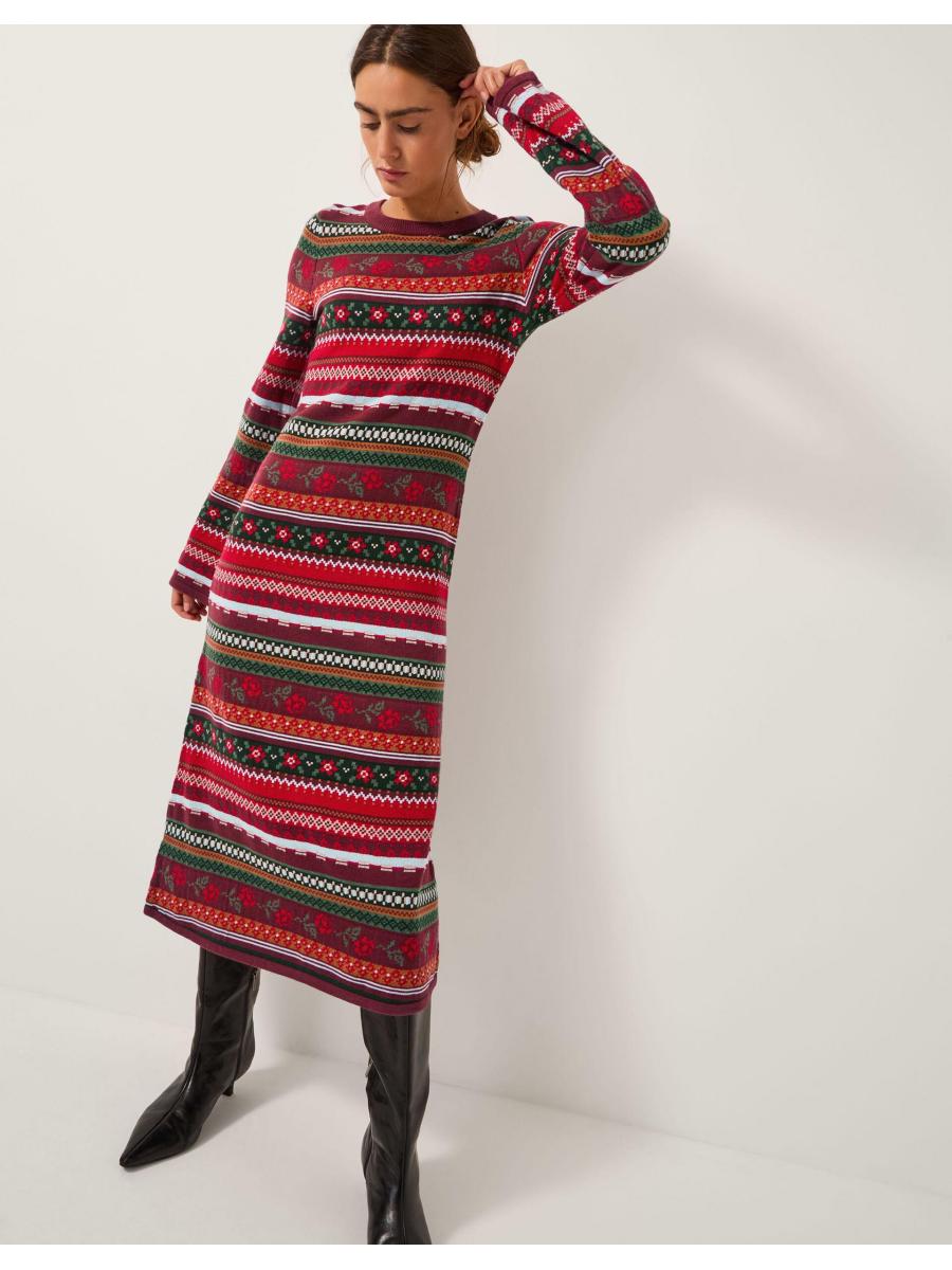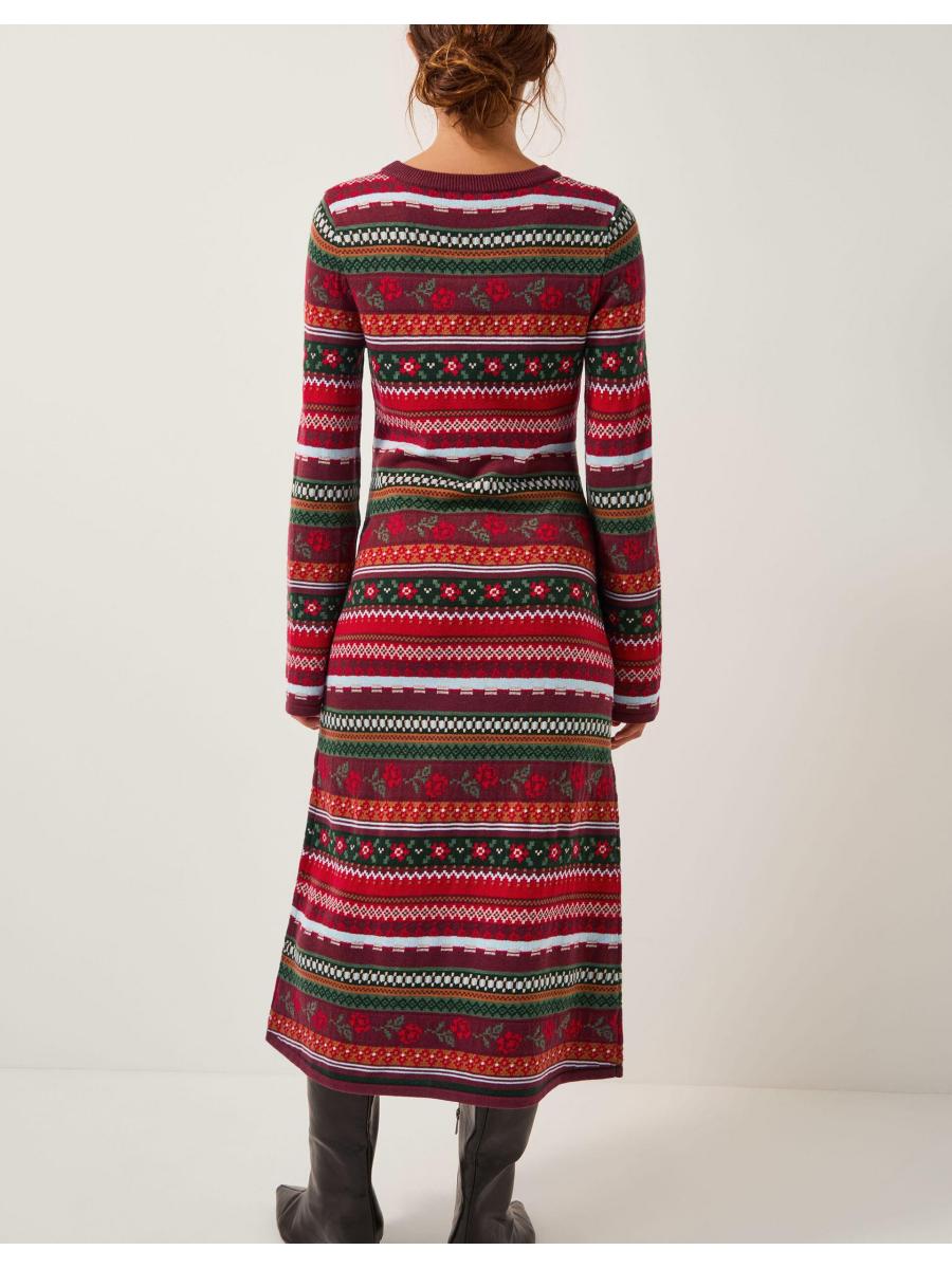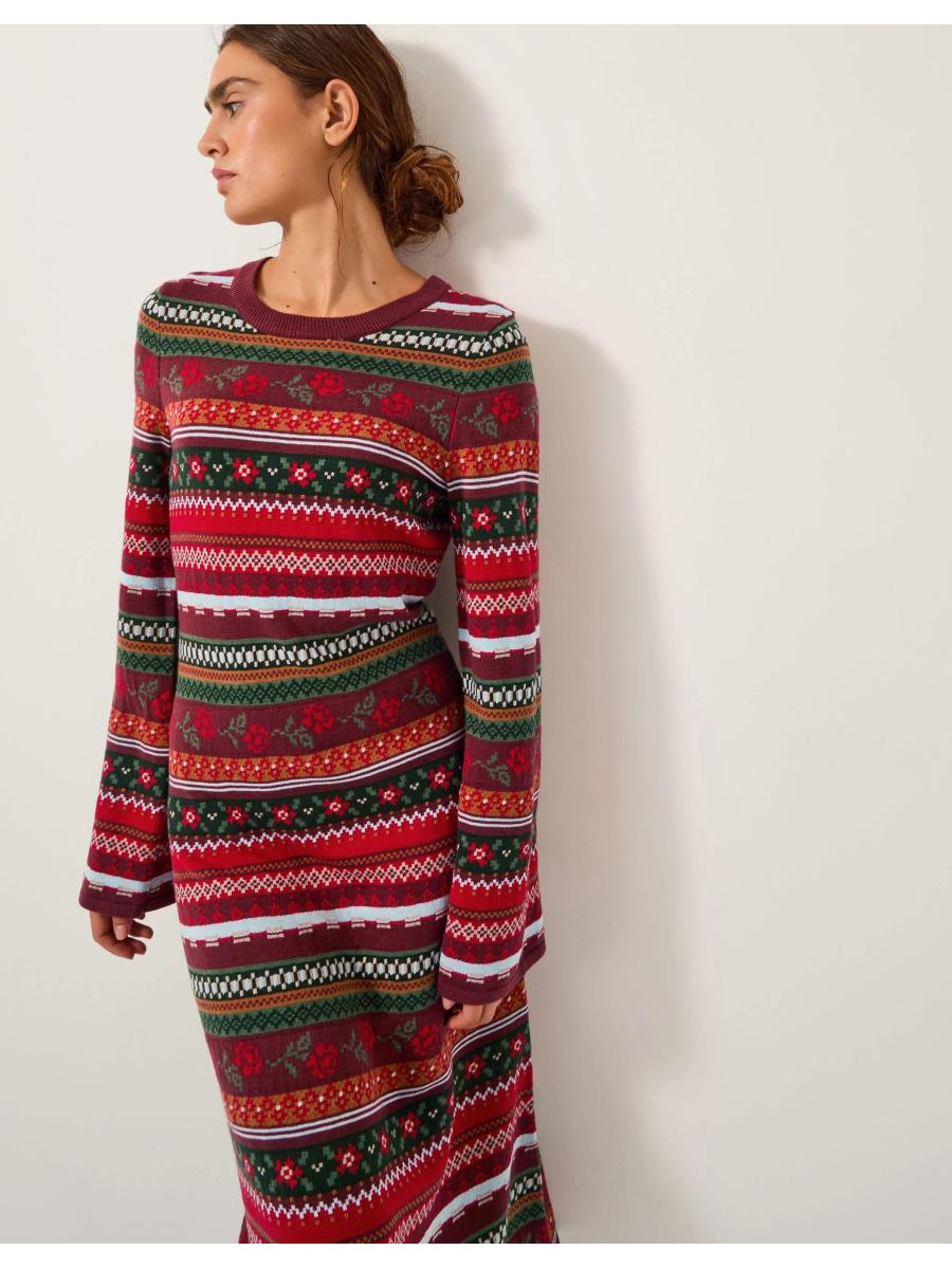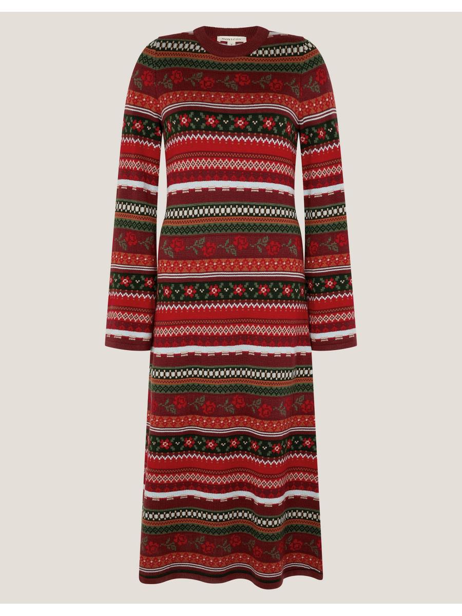 Roses are red... Stitched with a decorative Fair Isle pattern in an array of autumnal hues, this midi dress is the perfect pick for your winter wardrobe. Pair with knee-high boots and you're good to go! Red