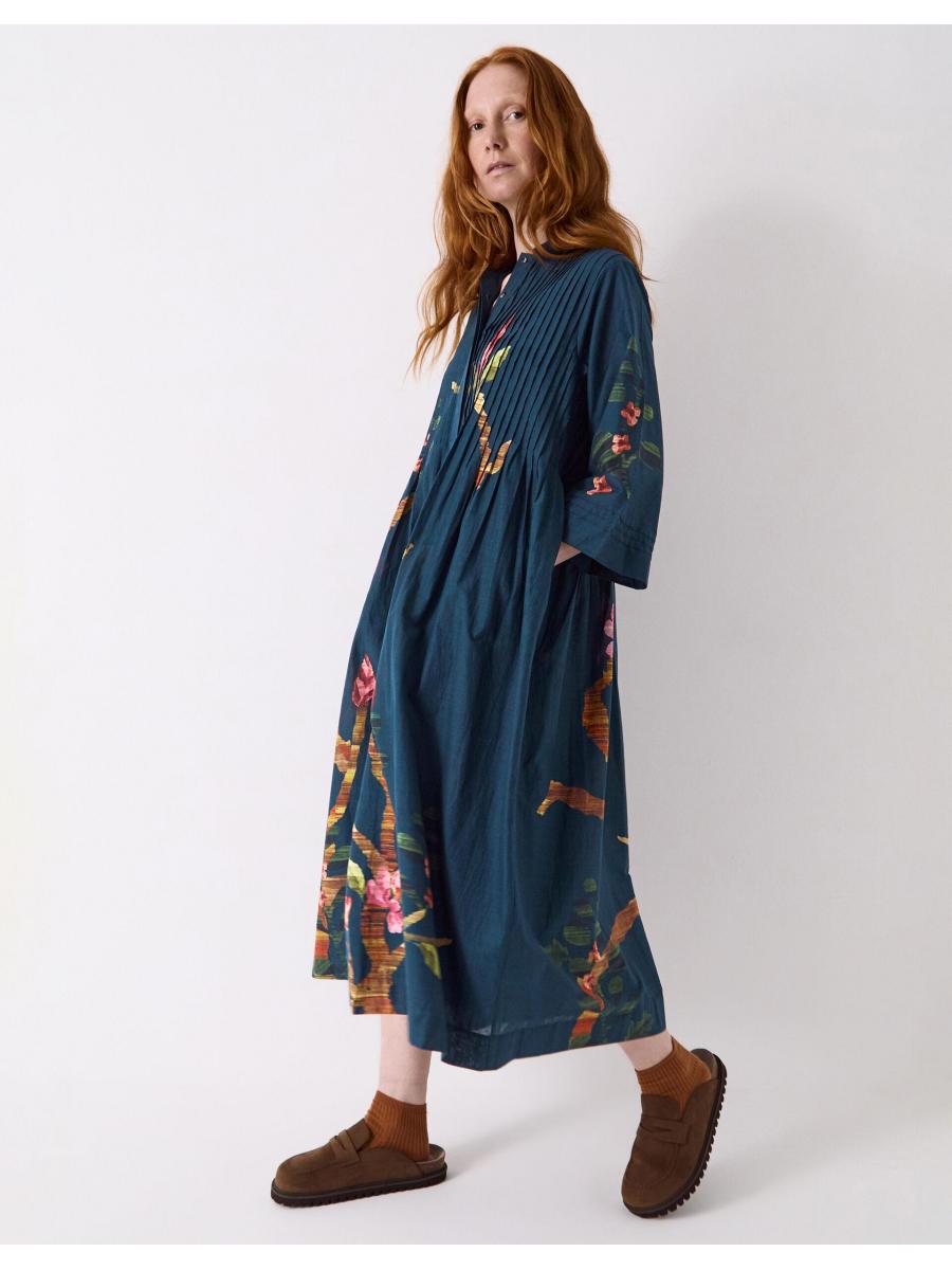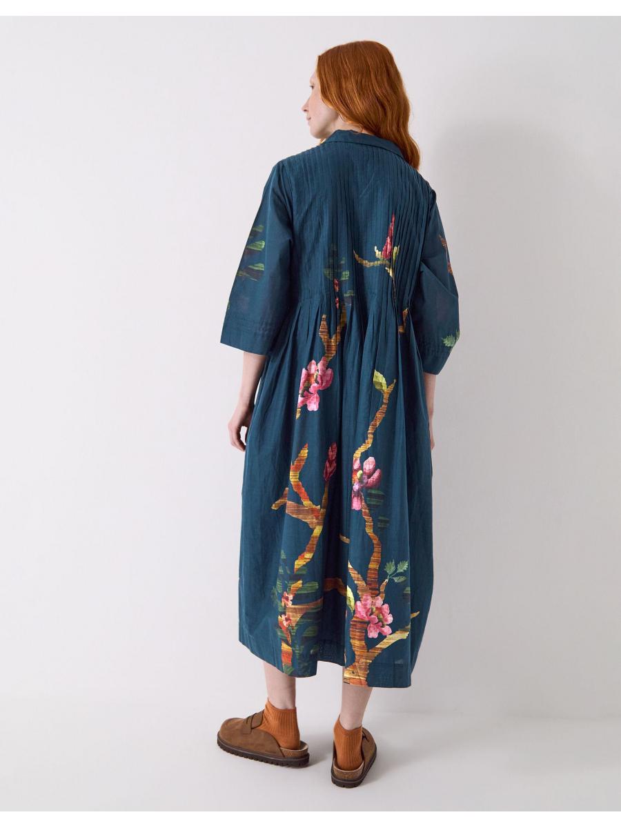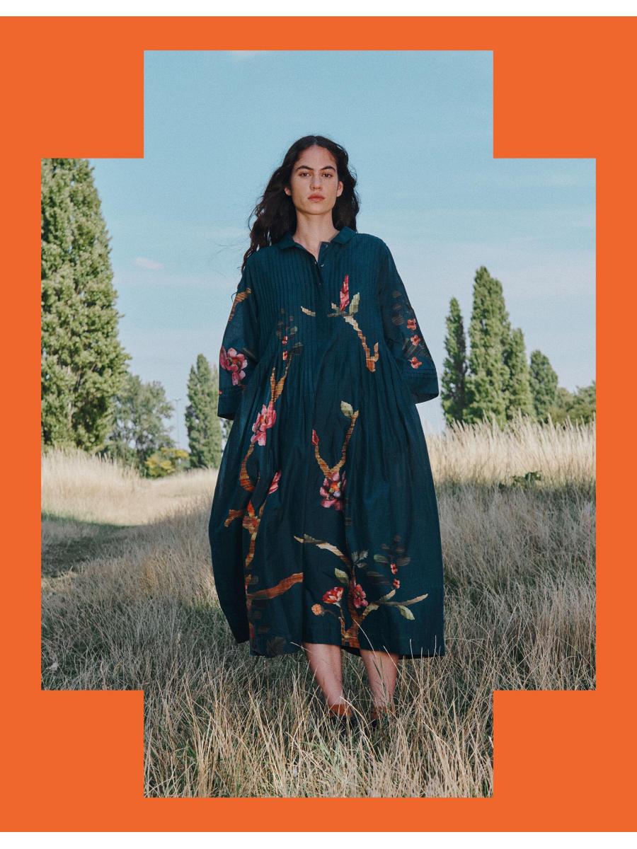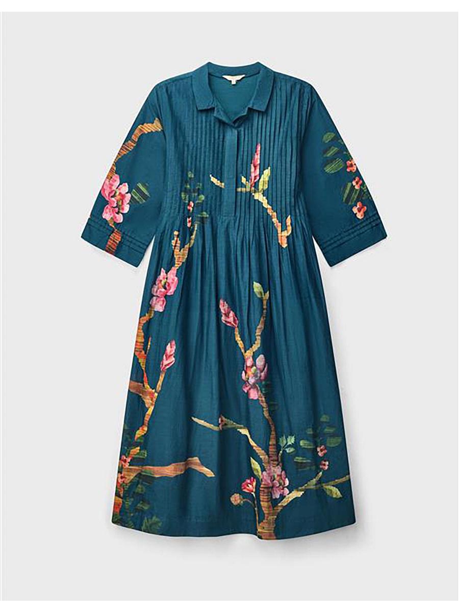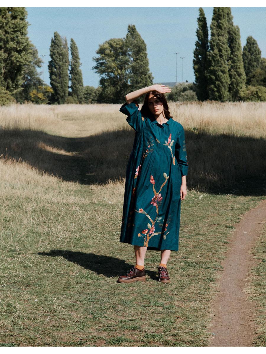 The product: Smart choice. Showcasing an artful print of cherry blossom branches over the dreamy teal backdrop, it's designed with a pleated shirt-inspired bodice and slightly voluminous midi-length hem. A dress you can wear for any desk-to-dinner plans in your diary, style with slip-on loafers or your go-to leather boots.