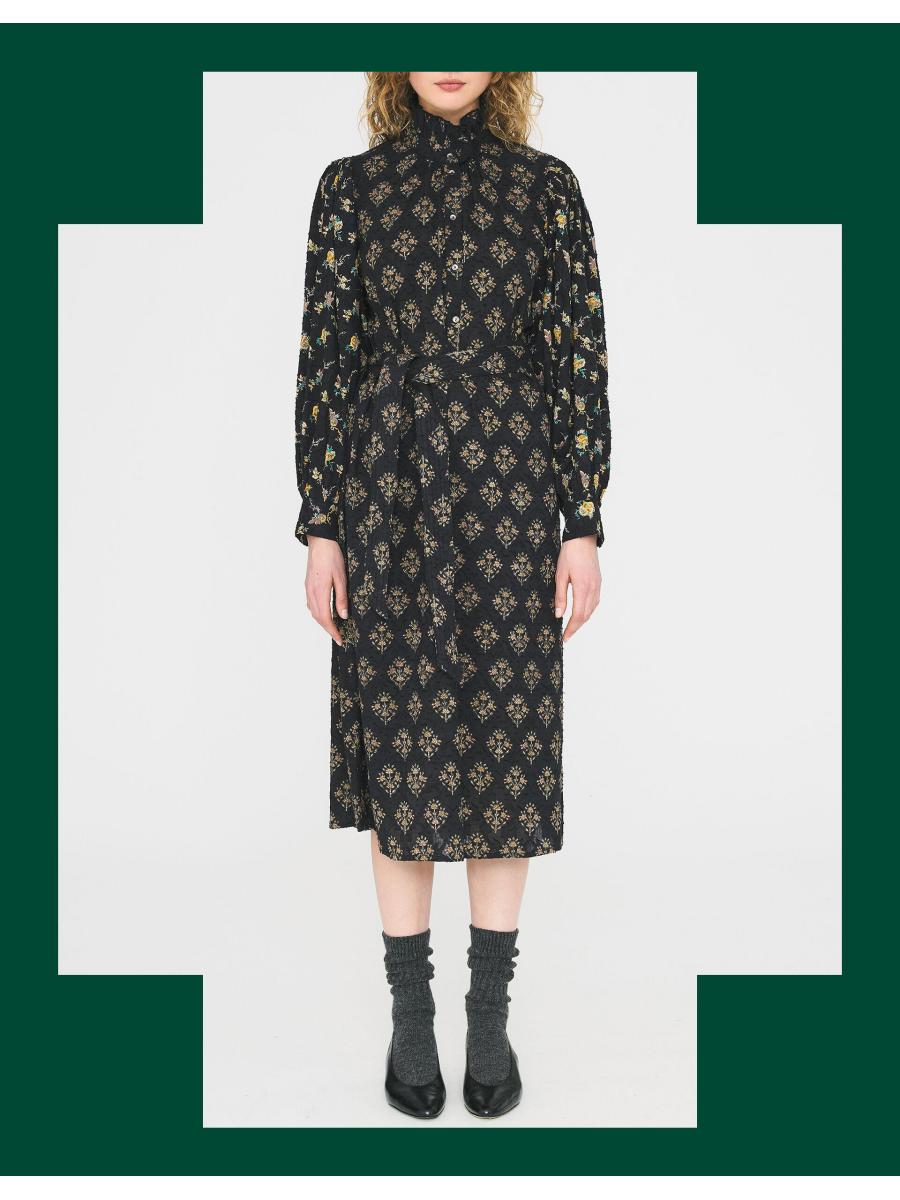 The product: Not opposed to a mid-week motive. A timeless style that you can wear in the office and at the bar, it's a printed piece of perfection for your wardrobe staples. Showcasing a mix of floral motifs, it's woven with a fil-coupé effect, giving raw texture to the jacquard fabric. Designed with a frilly neckline, front button fastenings and an optional quilted belt for the waist.