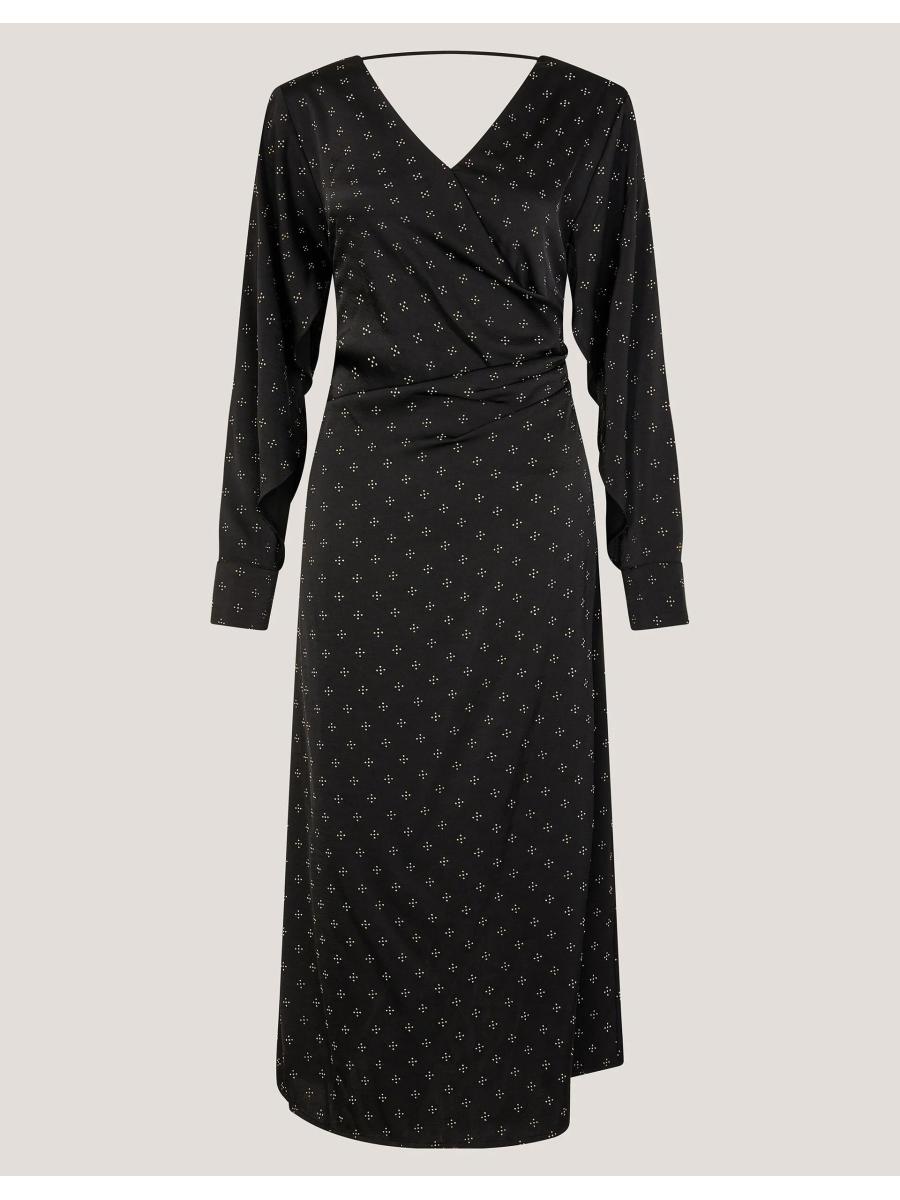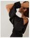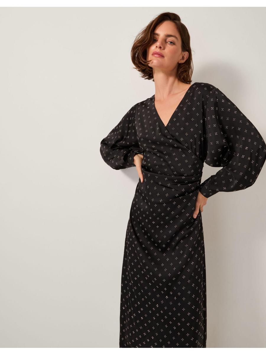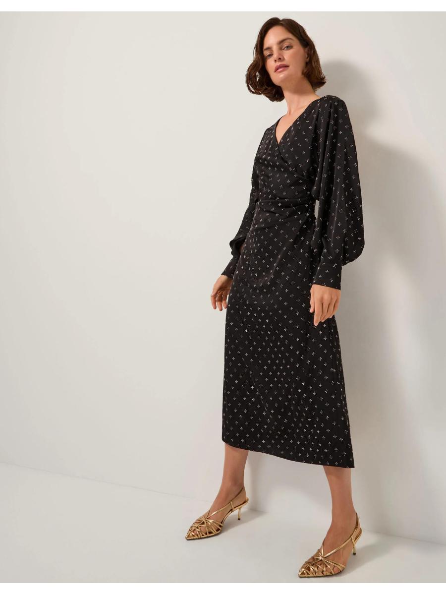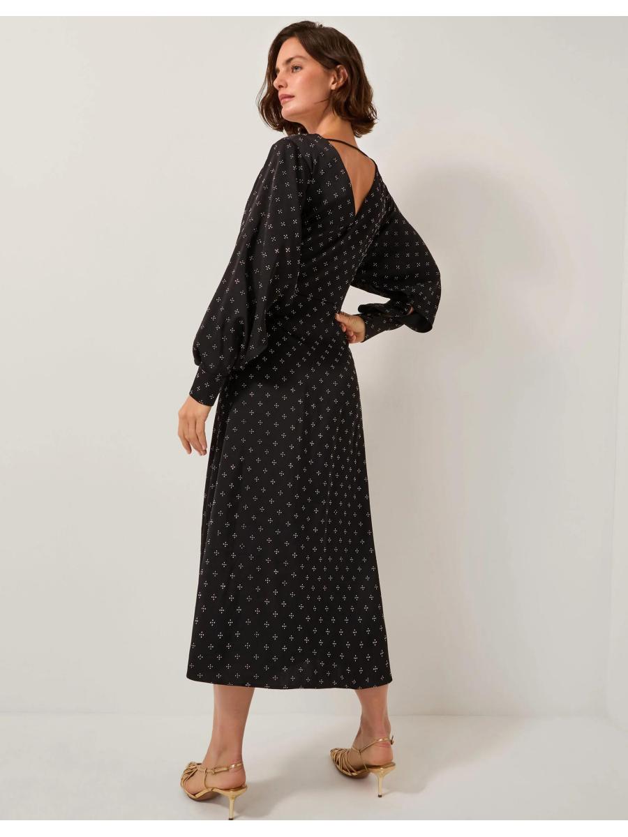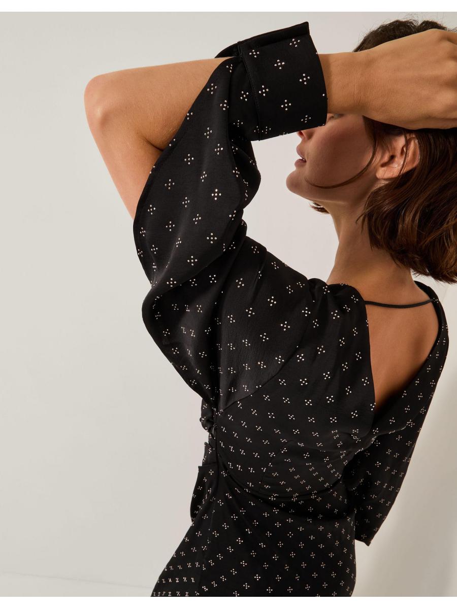 For a look you'll love. Embellished with hotfix sparkles in a symmetrical pattern, this midi dress is made for special occasions. Designed with a V-neckline and ruched waist, it's finished with blouson sleeves for added oomph. Just add heels! Black