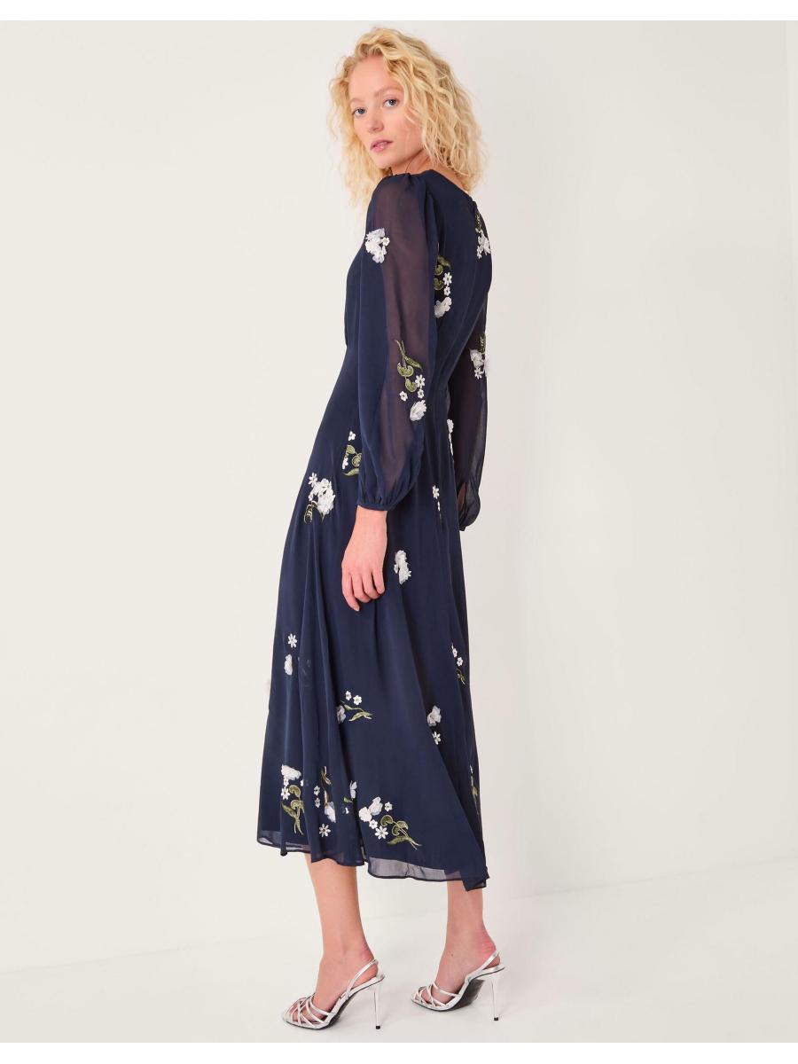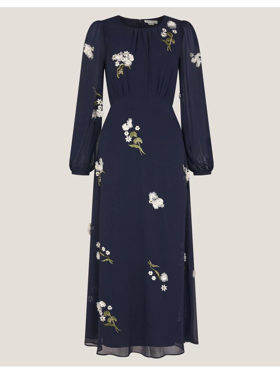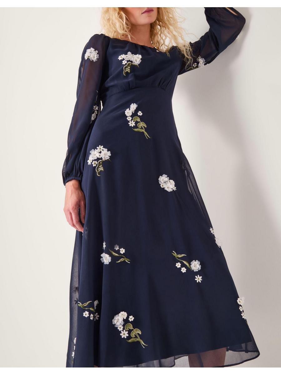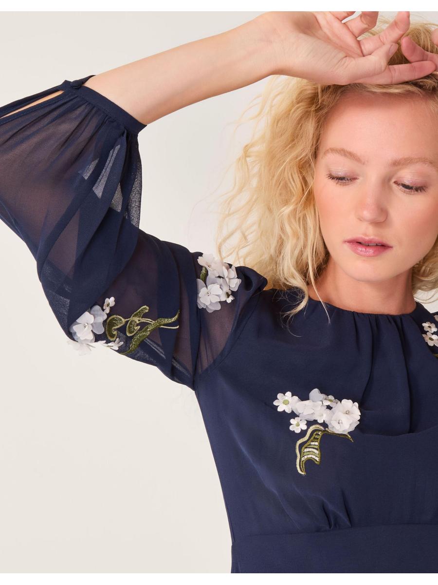 The piece you've looking for. Designed with dainty appliqué flowers and chiffon sleeves, this midi dress is a floaty and feminine addition to your collection. Whether you're swaying to church wedding bells or sipping wine at an evening soirée, it's sure to impress. Blue