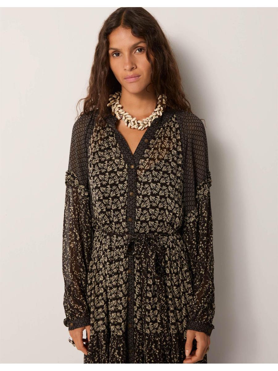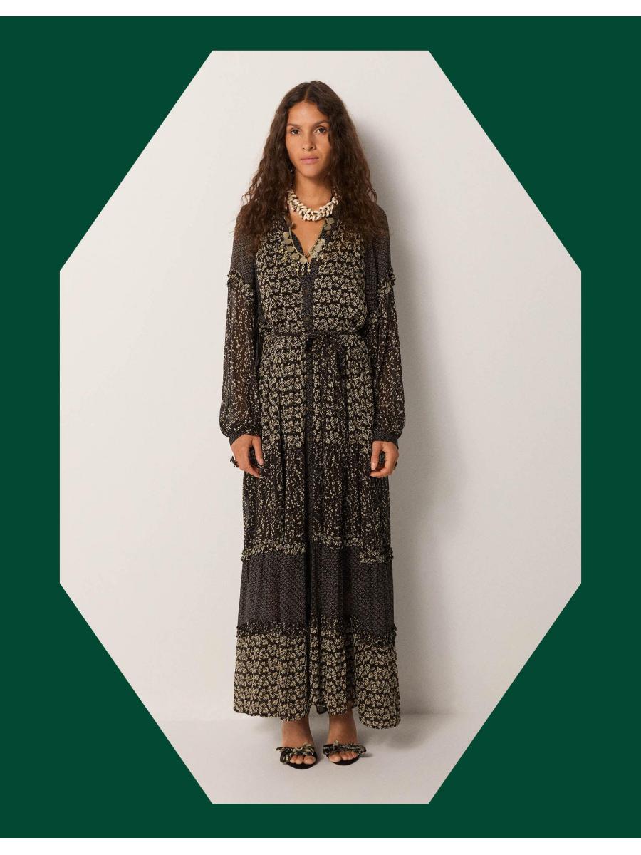 The product: Dress like you’ve made plans. A timeless pick for your new season wardrobe, this tiering delight is patterned with blocks of mixed florals in monochrome shades. Fastening with buttons through the front, you can cinch the floaty silhouette with the tie waist.