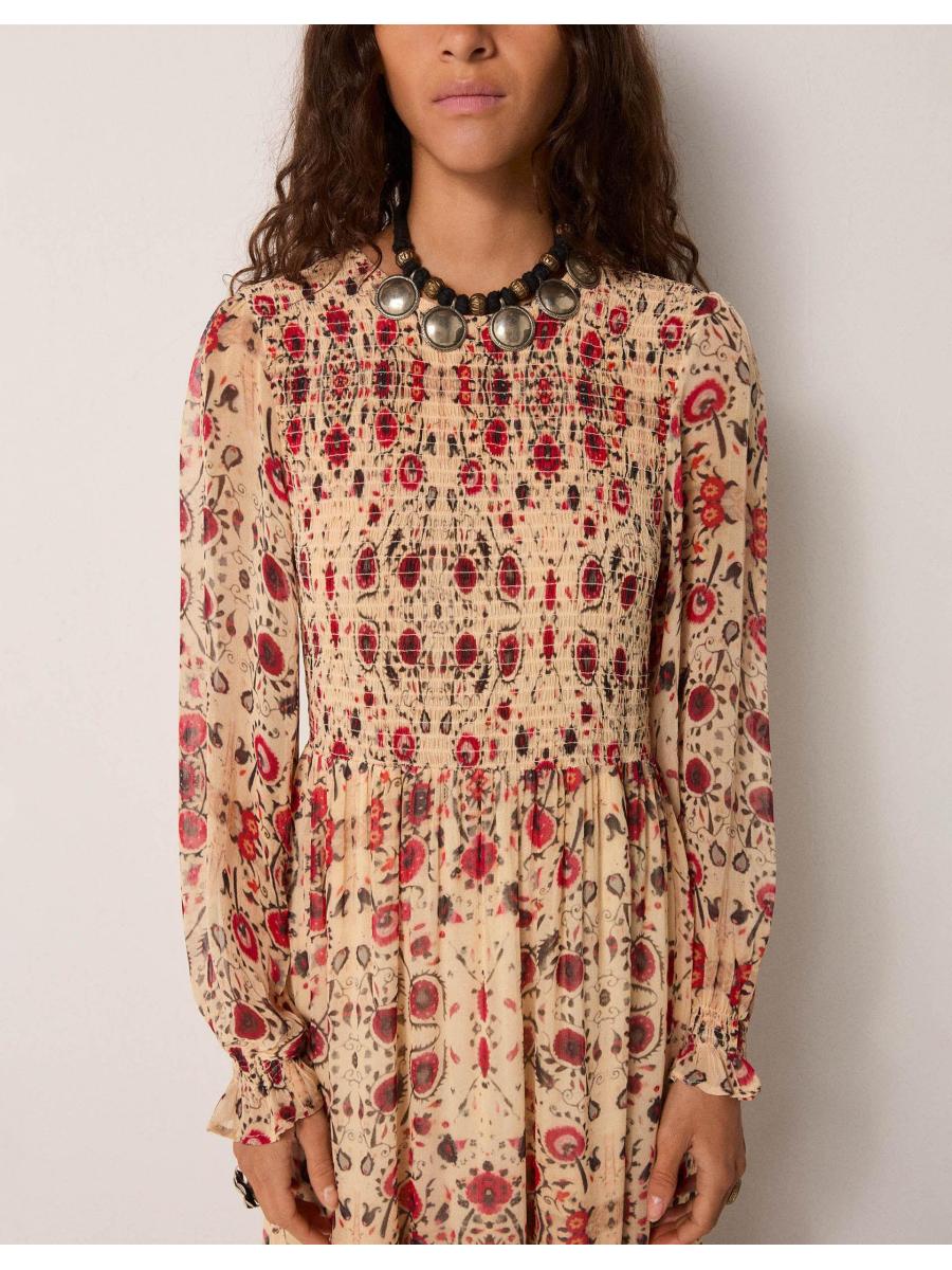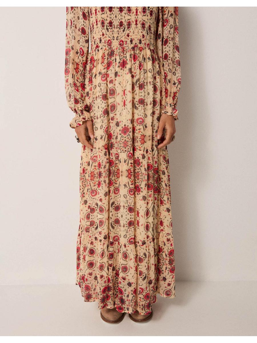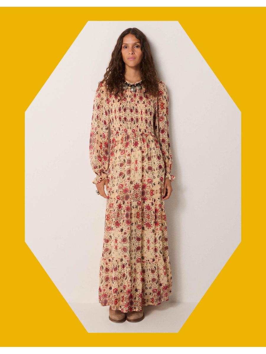 The product: We've found your prints charming. Made to be worn whilst frolicking in the meadows or strutting down the high street, this dress is as versatile as you are. Designed with a smocked bodice, long sleeves and ankle-skimming hem, it's patterned with artful motifs in a mix of blush hues.
