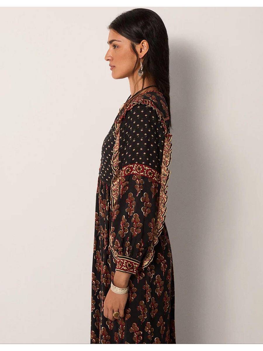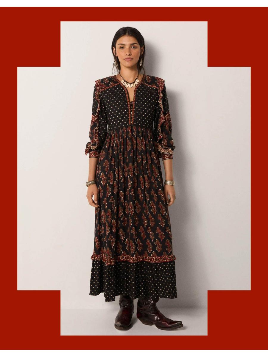The product: Like you, she's versatile. Whether dressed up with heeled boots or styled casually with ballet flats, this dress is a boheme dream you can count on for any occasion. Designed with long sleeves and a midi length hem, it's patterned with a mix of abstract floral motifs.