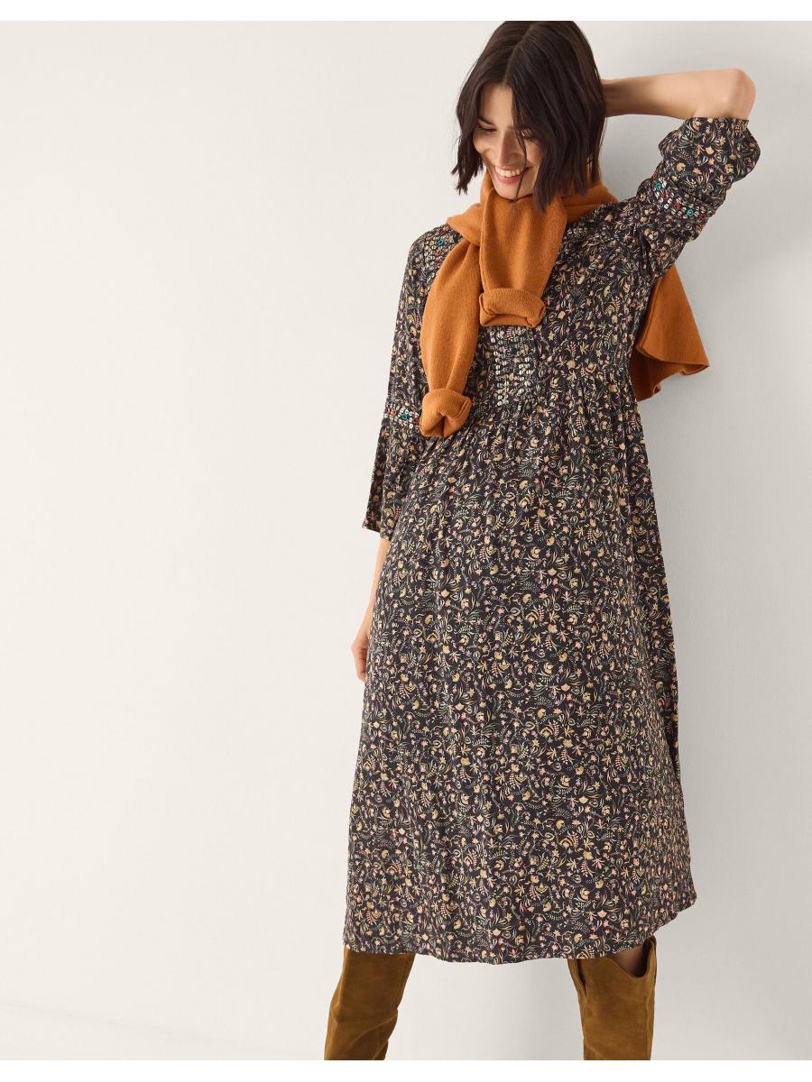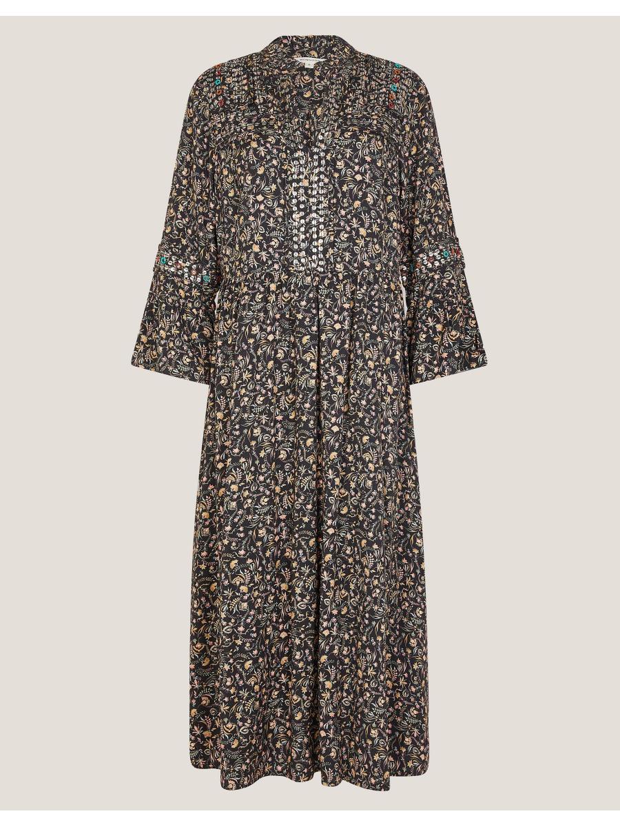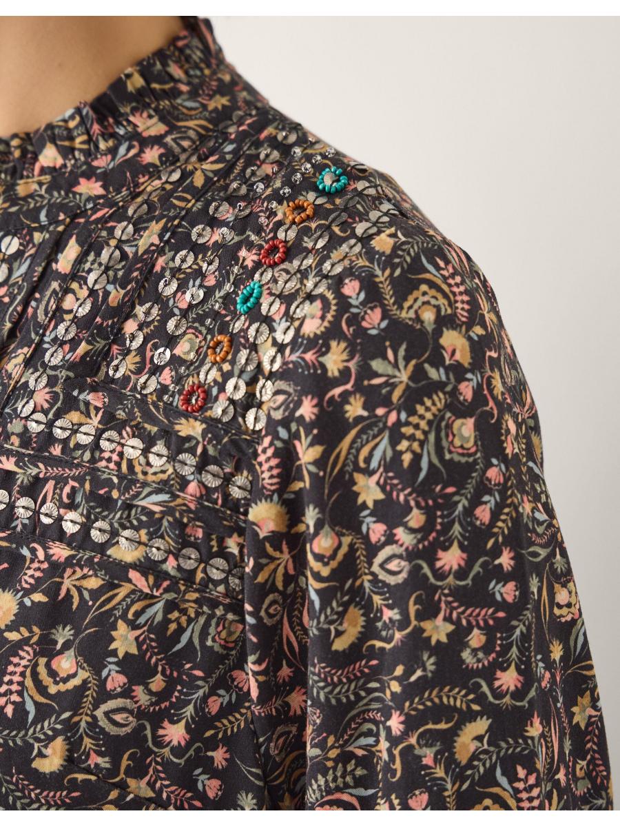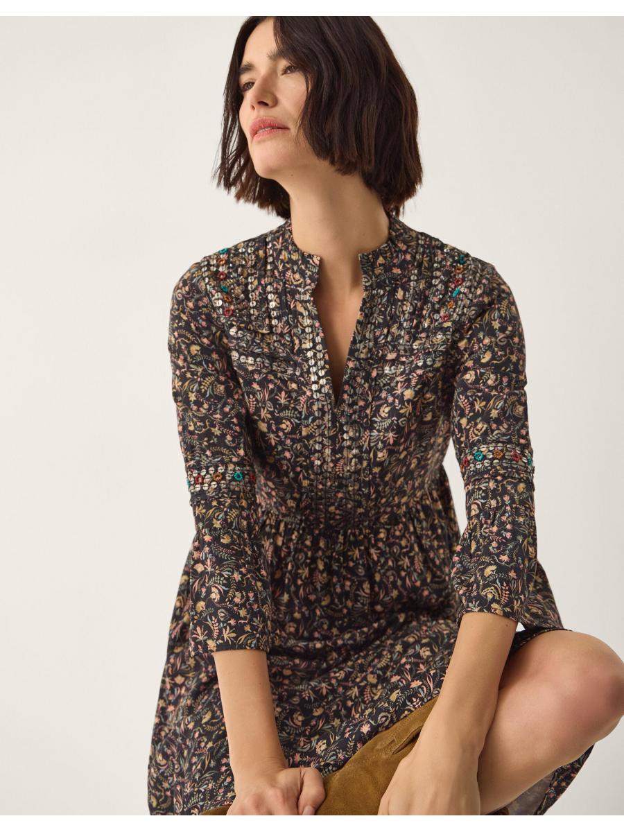 Totally timeless. Styled casually with trainers or dressed up with heeled boots, this dress is a versatile pick for your autumn wardrobe. It's decorated with ornate florals in pretty, pastel tones and embellished with beads and sequins at the bodice and sleeves. Fun, right? Black