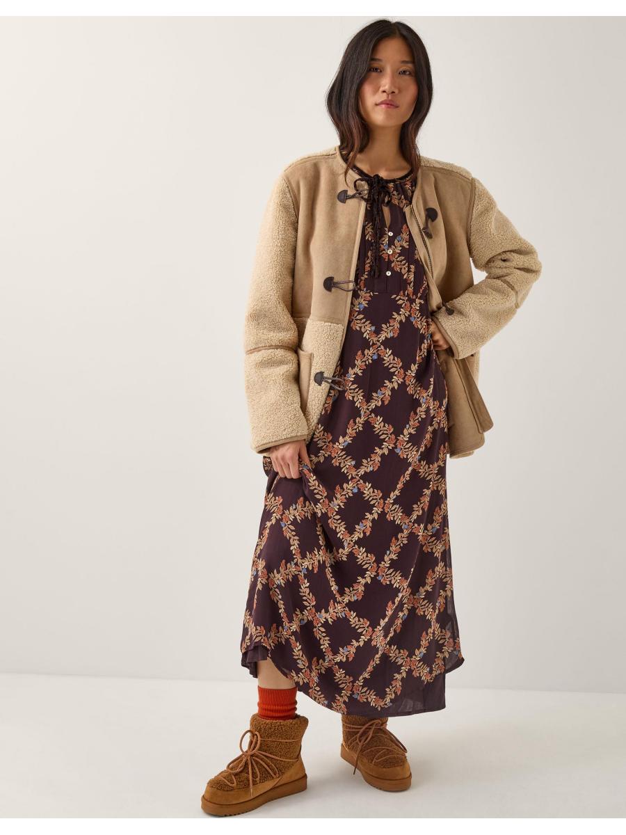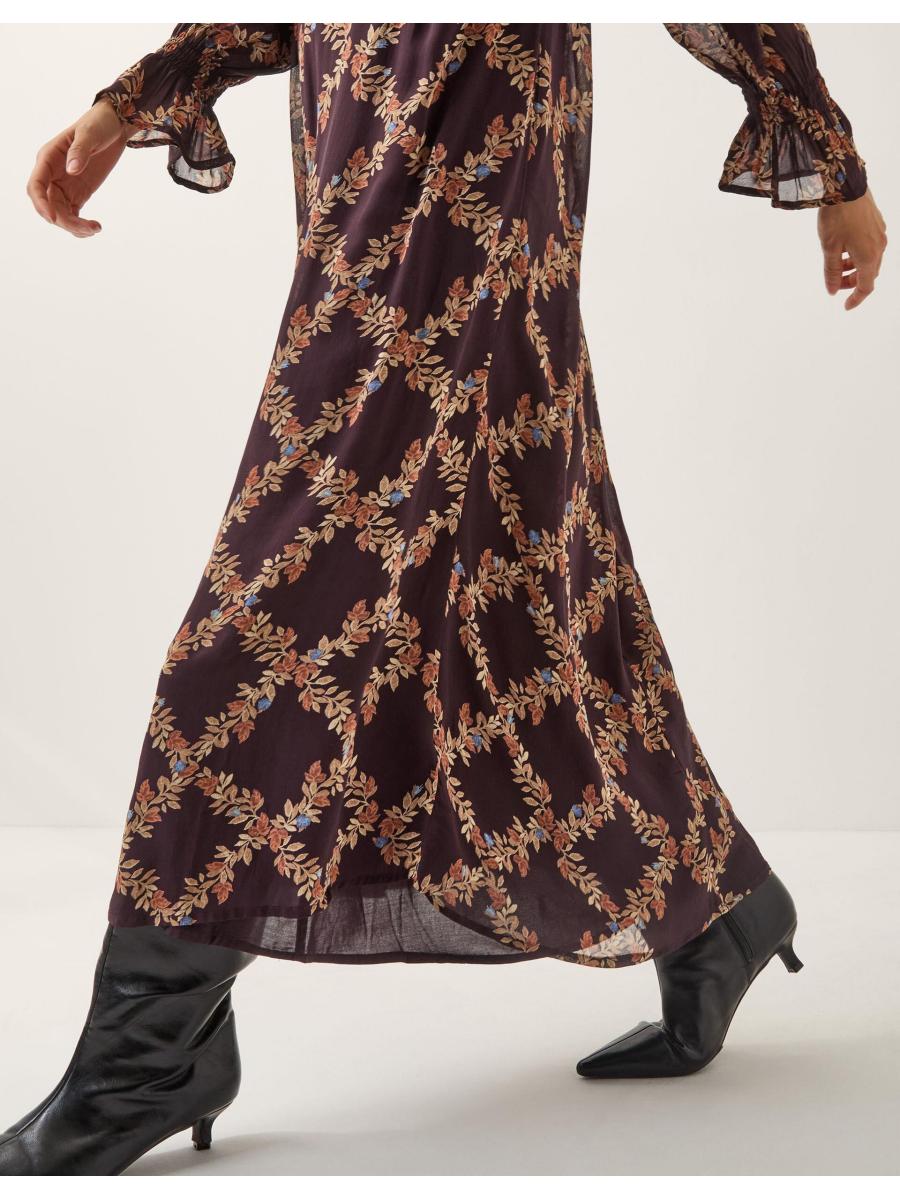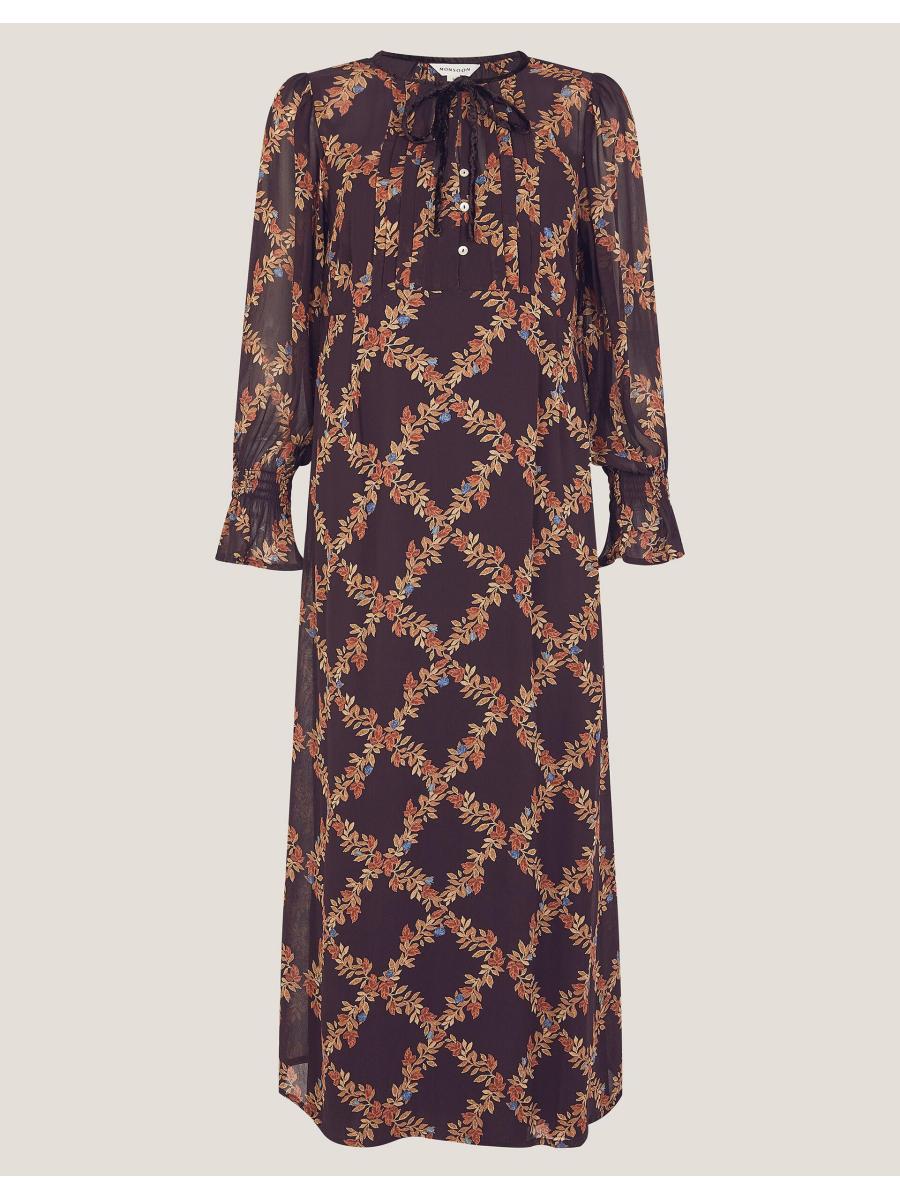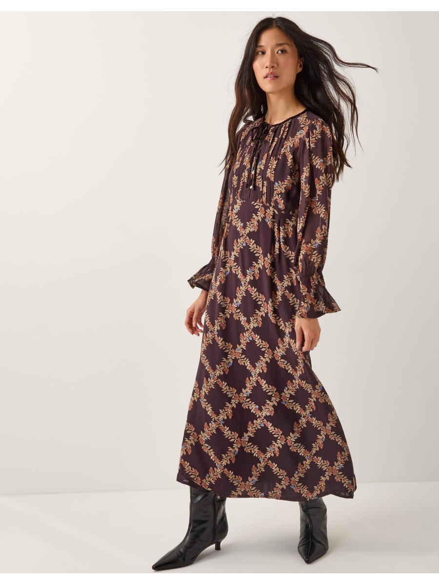 Florals for Autumn? Obviously. Framed with frilly-cuffed sleeves and pintuck pleating on the bodice, this dress is cloaked in decorative florals in a diamond pattern. For a look that'll take you from day to night, style with knee high boots and your go-to shoulder bag. Brown