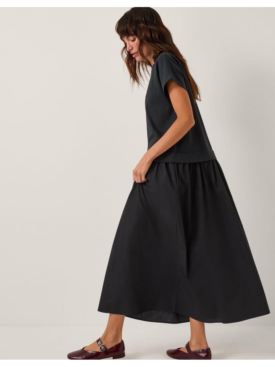 Maximum style, minimal effort. oh-so versatile and totally timeless, this dress offers a 2-in-1 look you can dress up or down, all season long. Designed with a cap sleeve jersey T-shirt, it's finished with a voluminous skirt that floats above the ankles. Oh, and did we mention it has pockets? Yay! Blue
