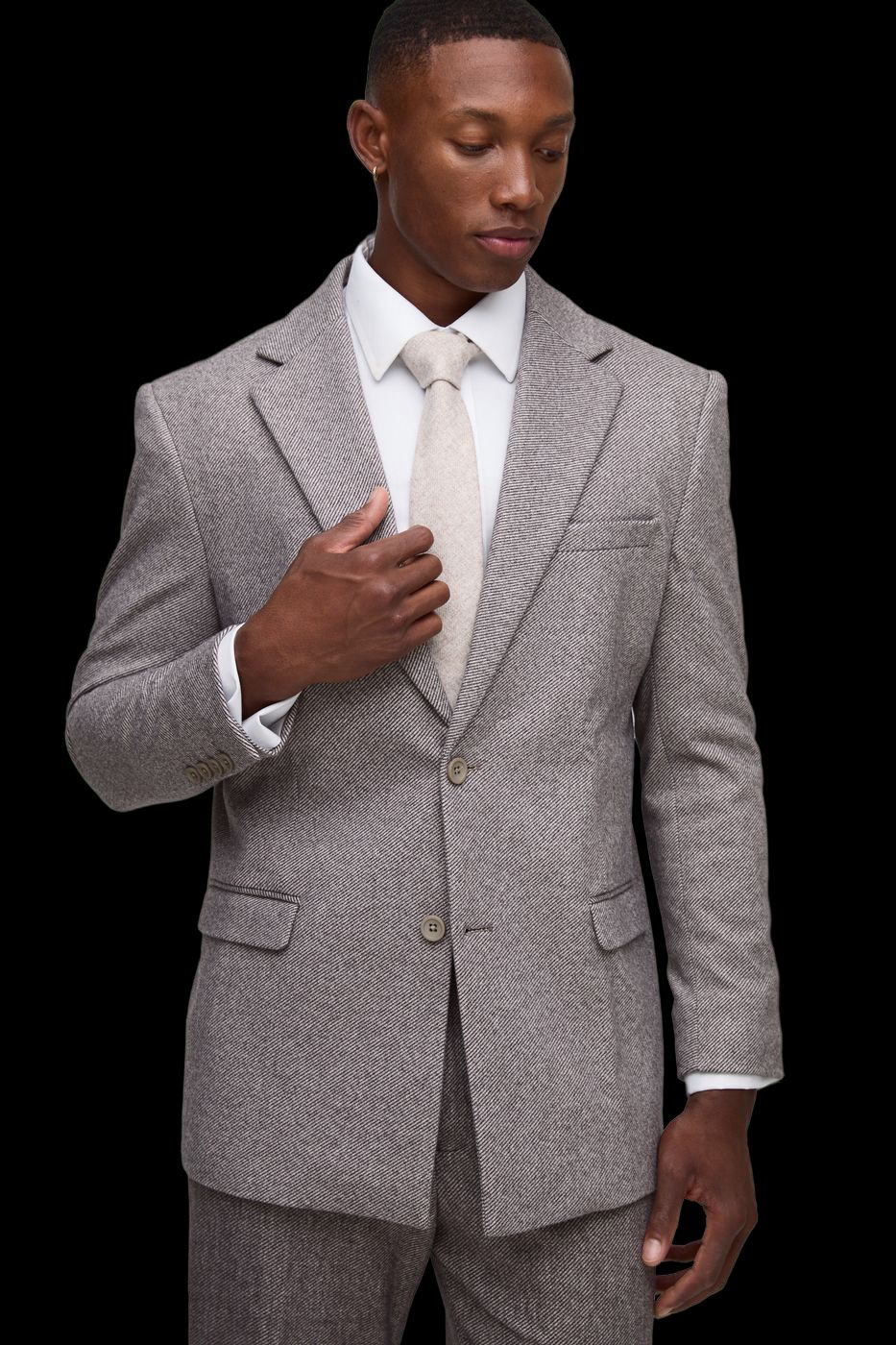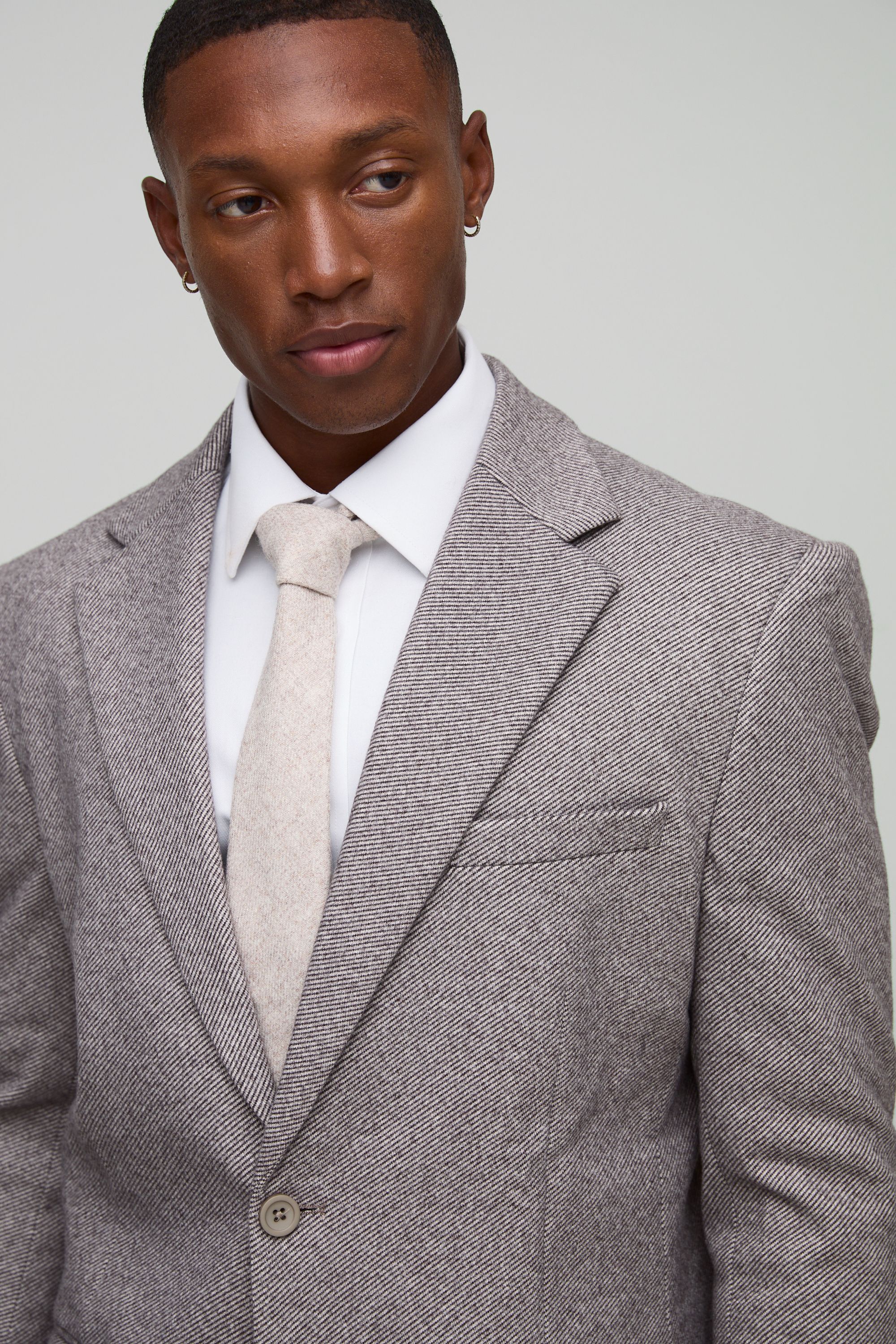 Style: Suit JacketDesign: HerringboneFabric: HerringboneDetail: PlainLength: RegularNeckline: NotchSleeve Length: Long Sleeve Details & Care Main: 100% Polyester, Lining: 100% Polyester. Model is 6'1 & wears UK size M/38