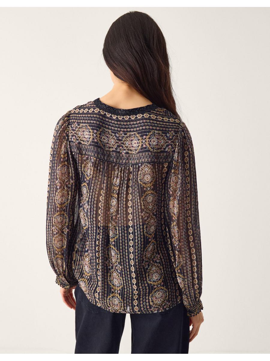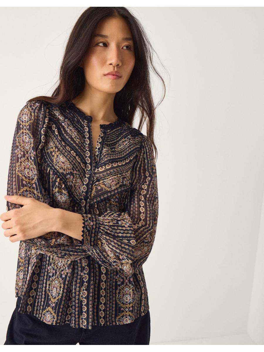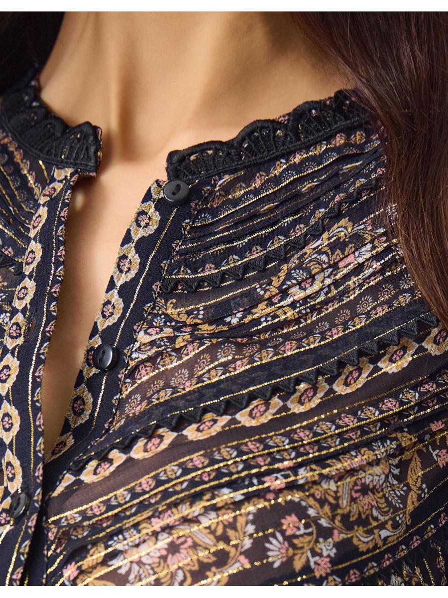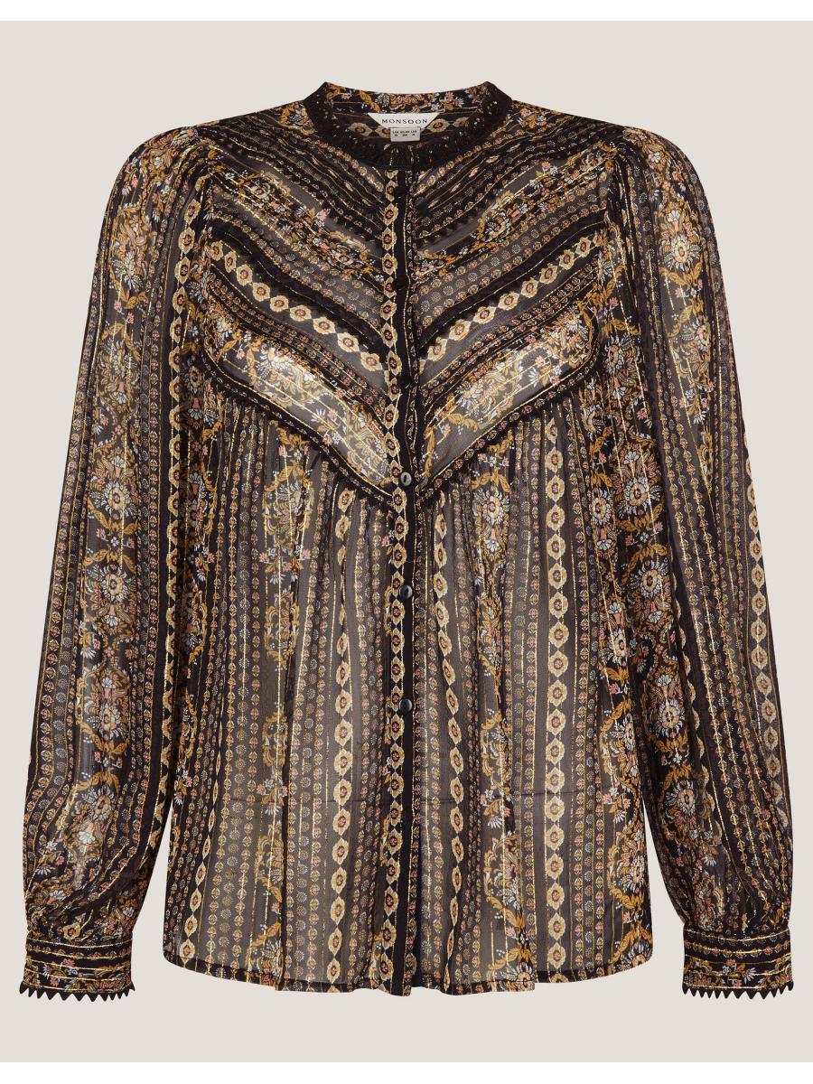 Printed perfection. Bursting with character, this floral blouse is a breath of fresh air you've been searching for. Featuring lace detailing at the collar and cuffs, it styles well with denim, trousers and skirts. Black