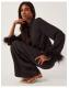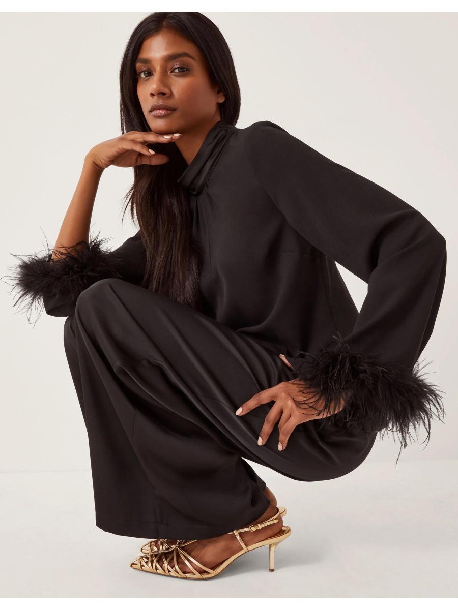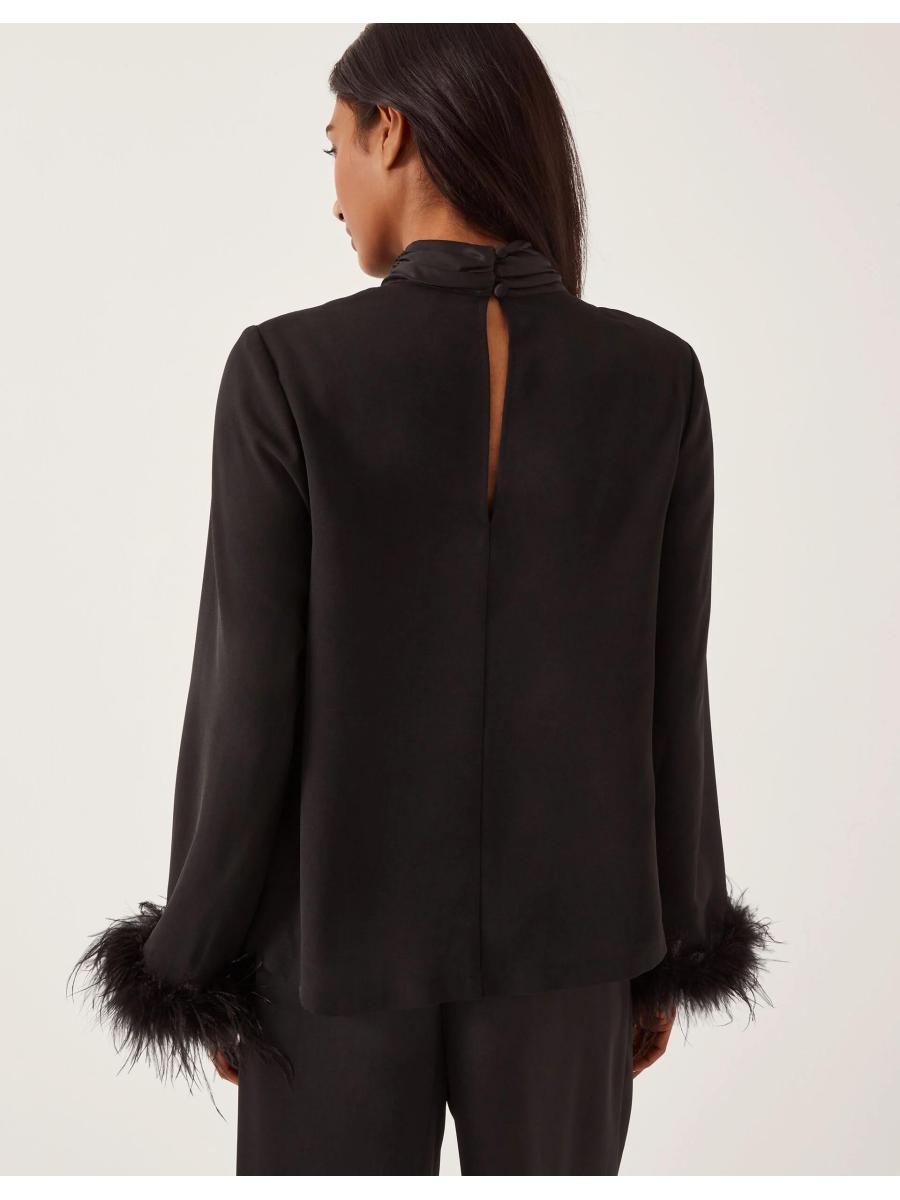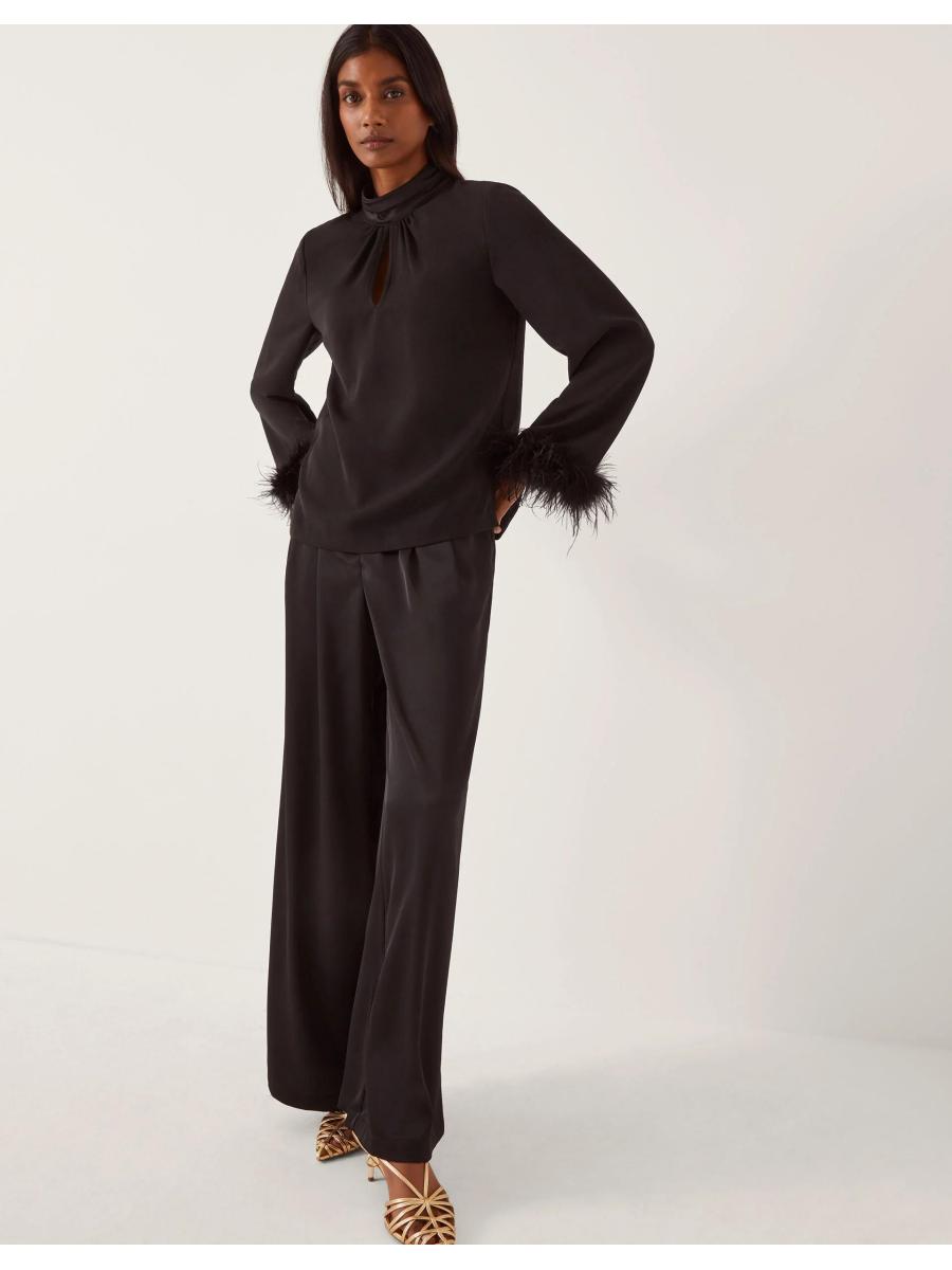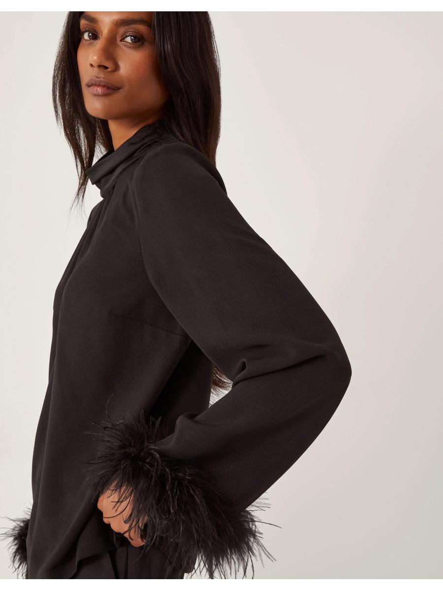 A little something up your sleeve. Designed with feathery, statement sleeves, this high-neck blouse will be your secret weapon for spontaneous nights out. Finished with a keyhole neckline for added elegance. Black