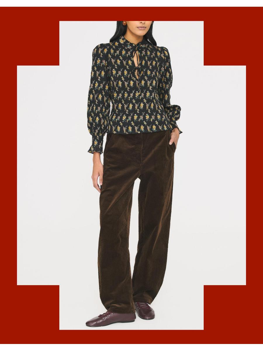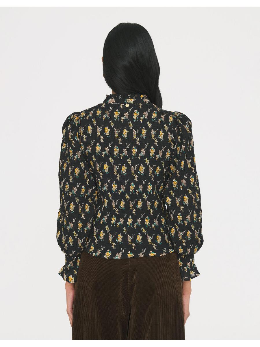 The product: How romantic. Fully smocked and framed with frilly cuffs for a feminine feel, this blouse is one you will fall in love with season after season. Showcasing floral bouquets, it's woven with a fil-coupé effect, giving raw texture to the jacquard fabric.