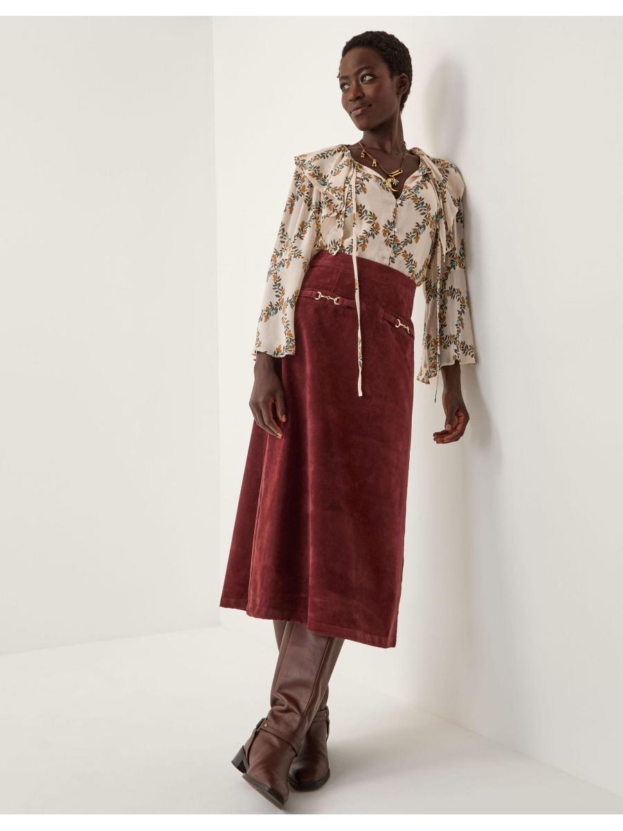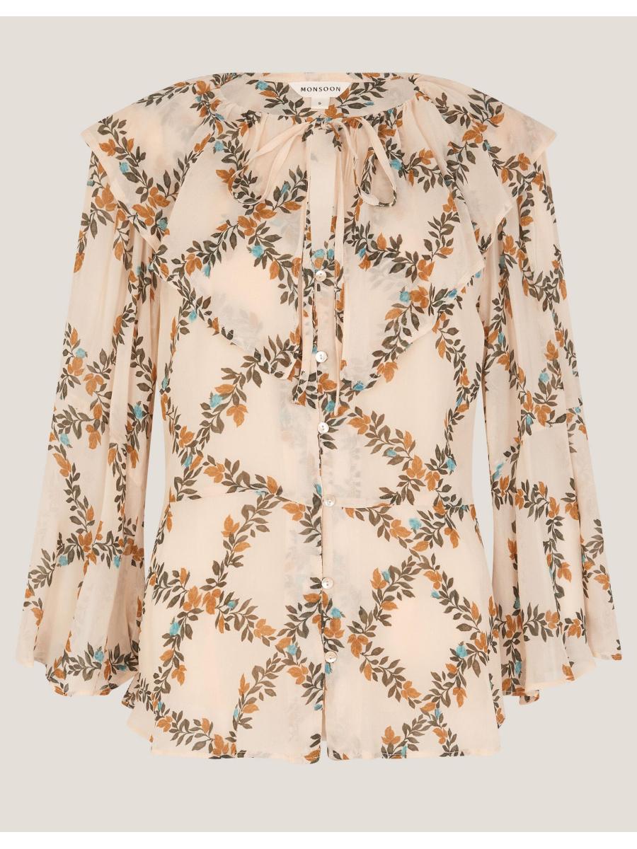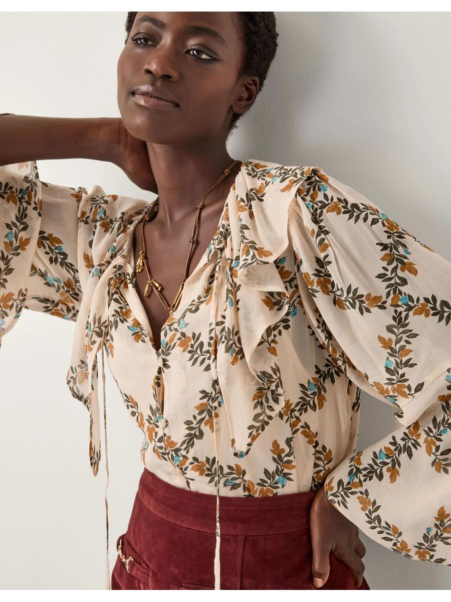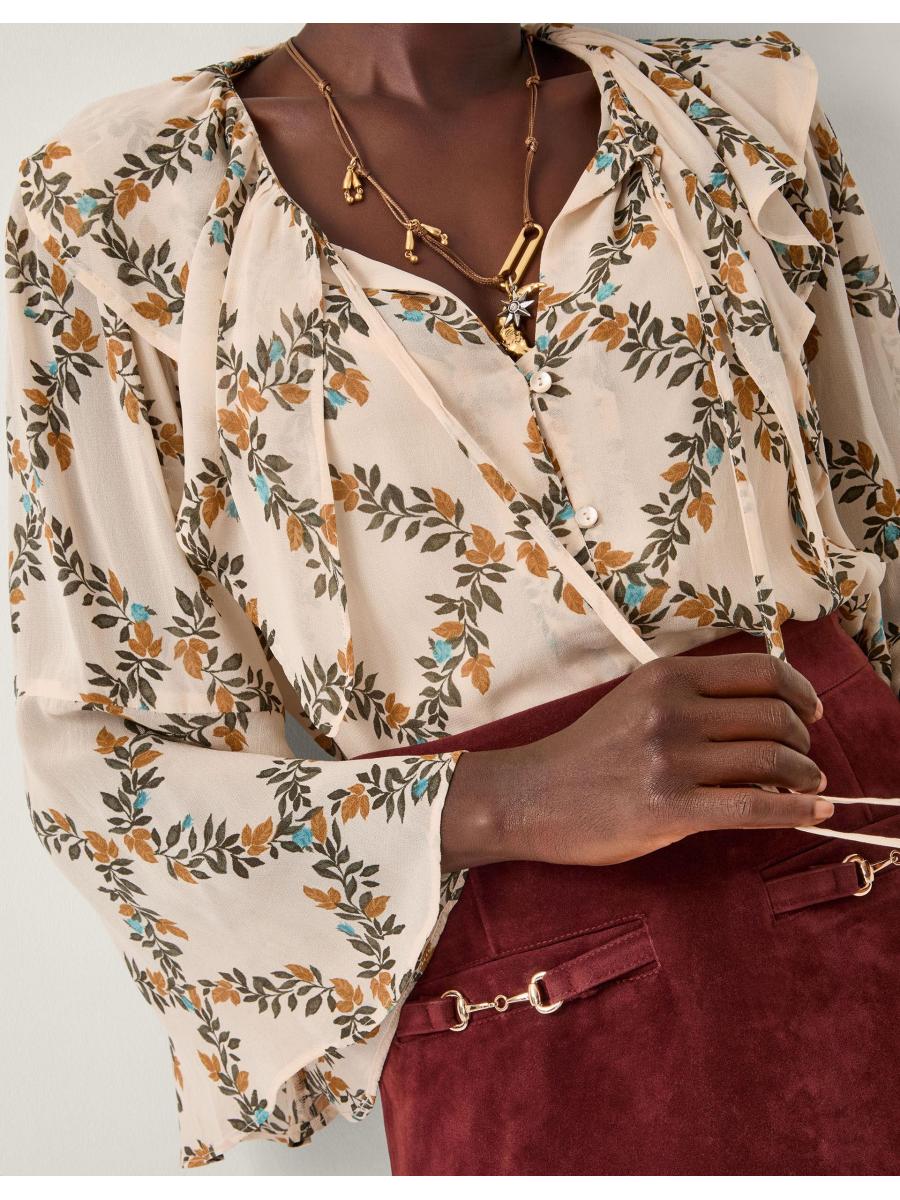 Florals for Autumn? Obviously. Framed with floaty sleeves and playful ruffles at the shoulders, this blouse is cloaked with vine-like florals in a bold, diamond pattern. For a look that'll take you from day to night, style with an A-line midi skirt, knee high boots and your go-to shoulder bag. Ivory