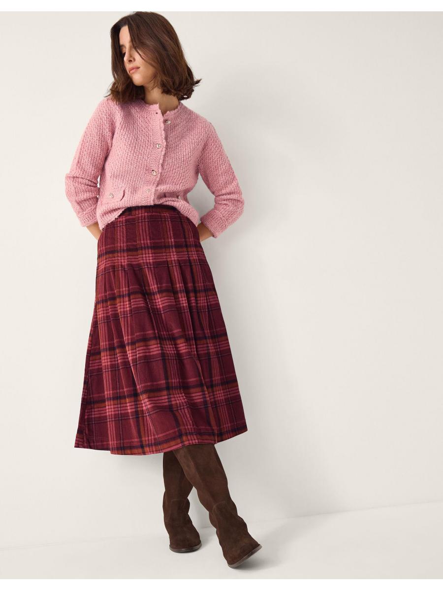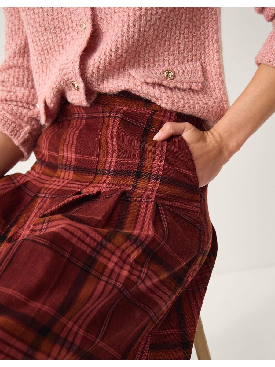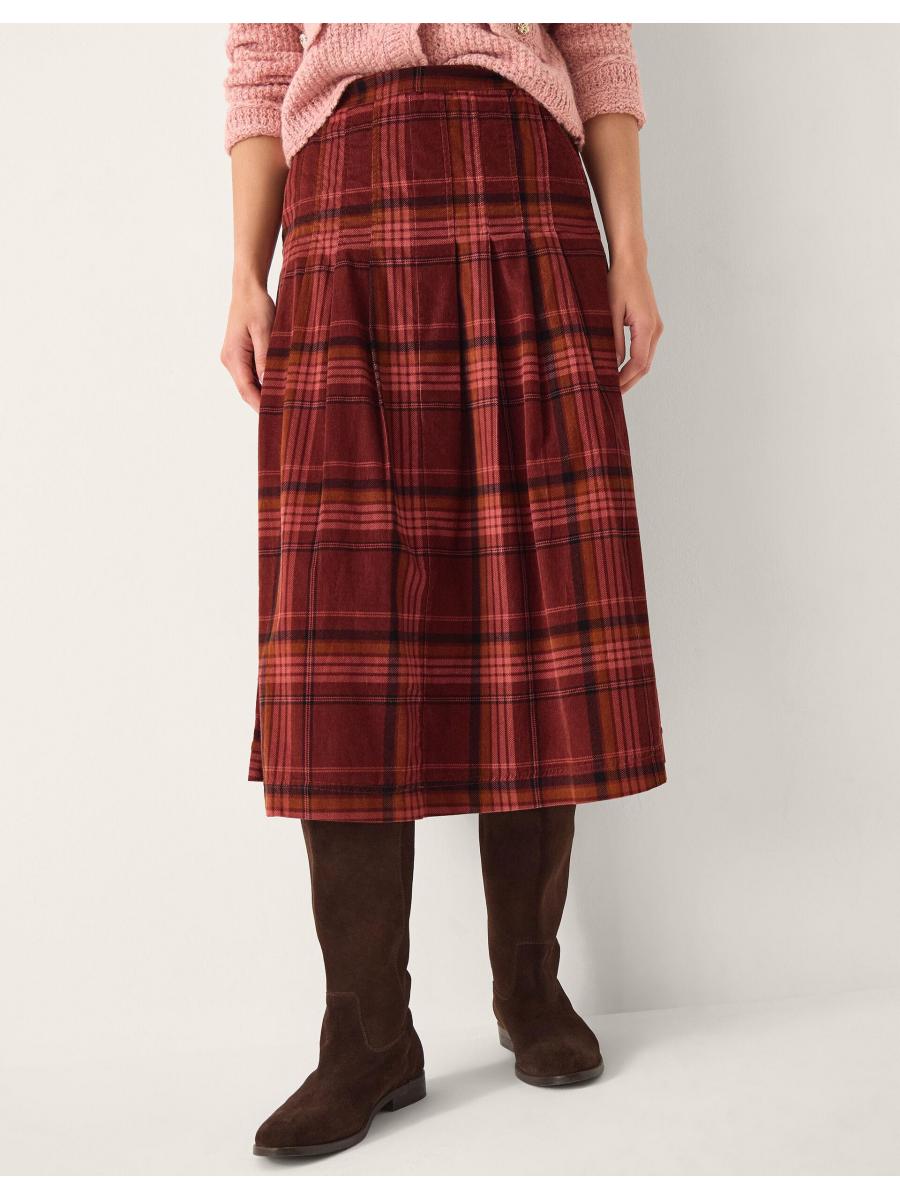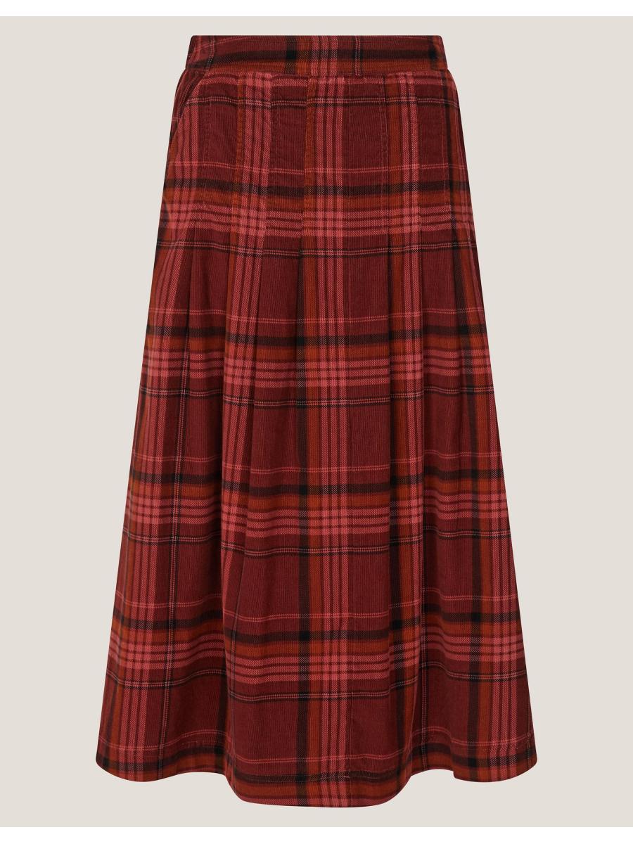 Say hello to your dream skirt. Patterned with checks in autumnal hues, it falls below the knee, pairing perfectly with knee high boots. Spun from comfy cotton, it's a must have for looking cute throughout the chilly season. Red