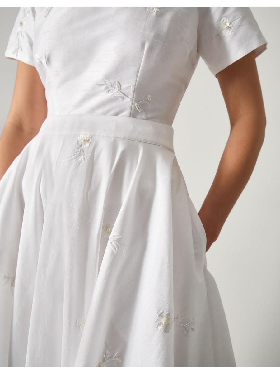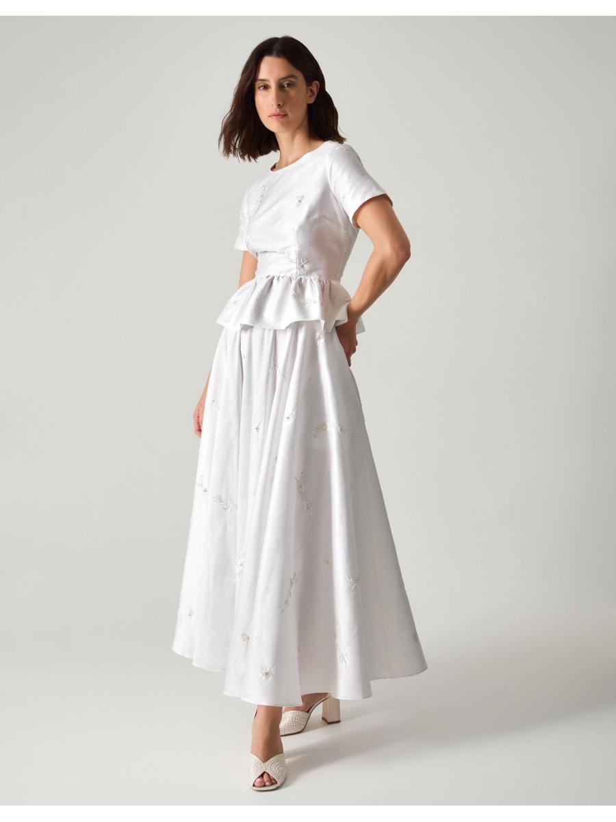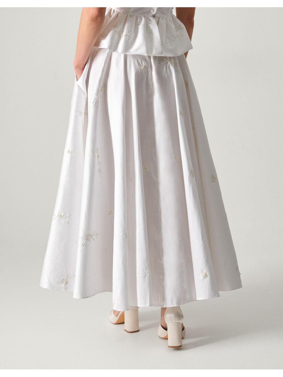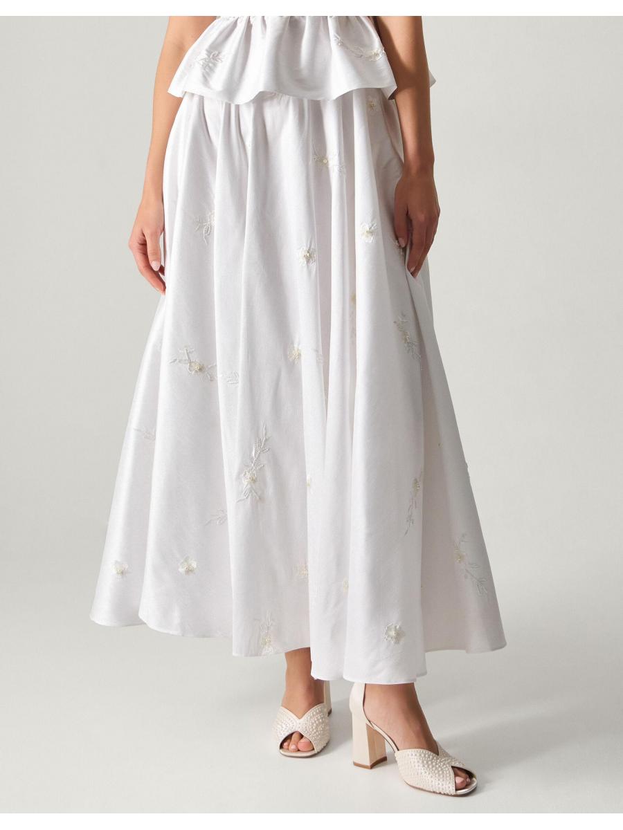 Alt-bride. If a gown's never been on the vision board, why not opt for a skirt, instead? Designed to sit high on the waist, it's beautifully embellished with beaded bouquets and pearly finishes throughout the A-line silhouette. Curate (another) match made in heaven with the Eliza Floral Embellished Wedding Top to complete the look. Ivory
