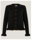 Here for the frills. Bringing a playful vibe to your knitwear collection, this cardi is stitched with super-soft yarns and ruffles around the cuffs and hem. Complete with gold knot button fastenings for an elevated finish. Black