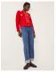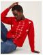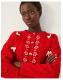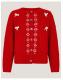 Bye-bye boring knitwear. Stitched in a classic cable knit, this cardigan is topped with white flower motifs and fuzzy bows to match. Finished with front button fastenings, style it solo or layered over a classic tee. Red
