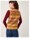 Knit happens. A cosy layer to style over T-shirts and long sleeve tops, this knitted vest is stitched with a decorative fair isle pattern in a mix of mustard and baby pink hues. Finished with front button fastenings and two patch pockets. Yellow