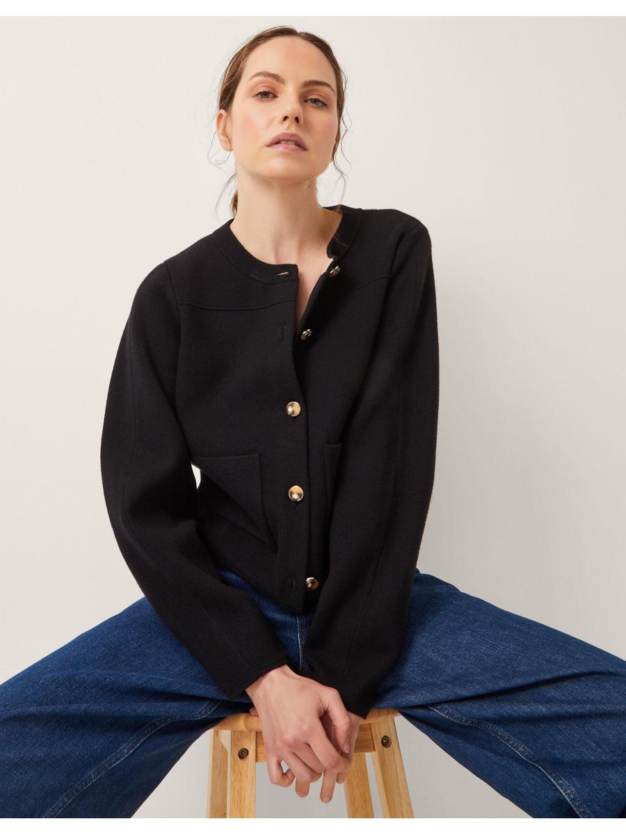 Totally timeless. A chic addition to your knitwear collection, this cardigan features two patch pockets and tort button fastenings. The best thing? It's a layer that'll go with all your outfits for every season. Black