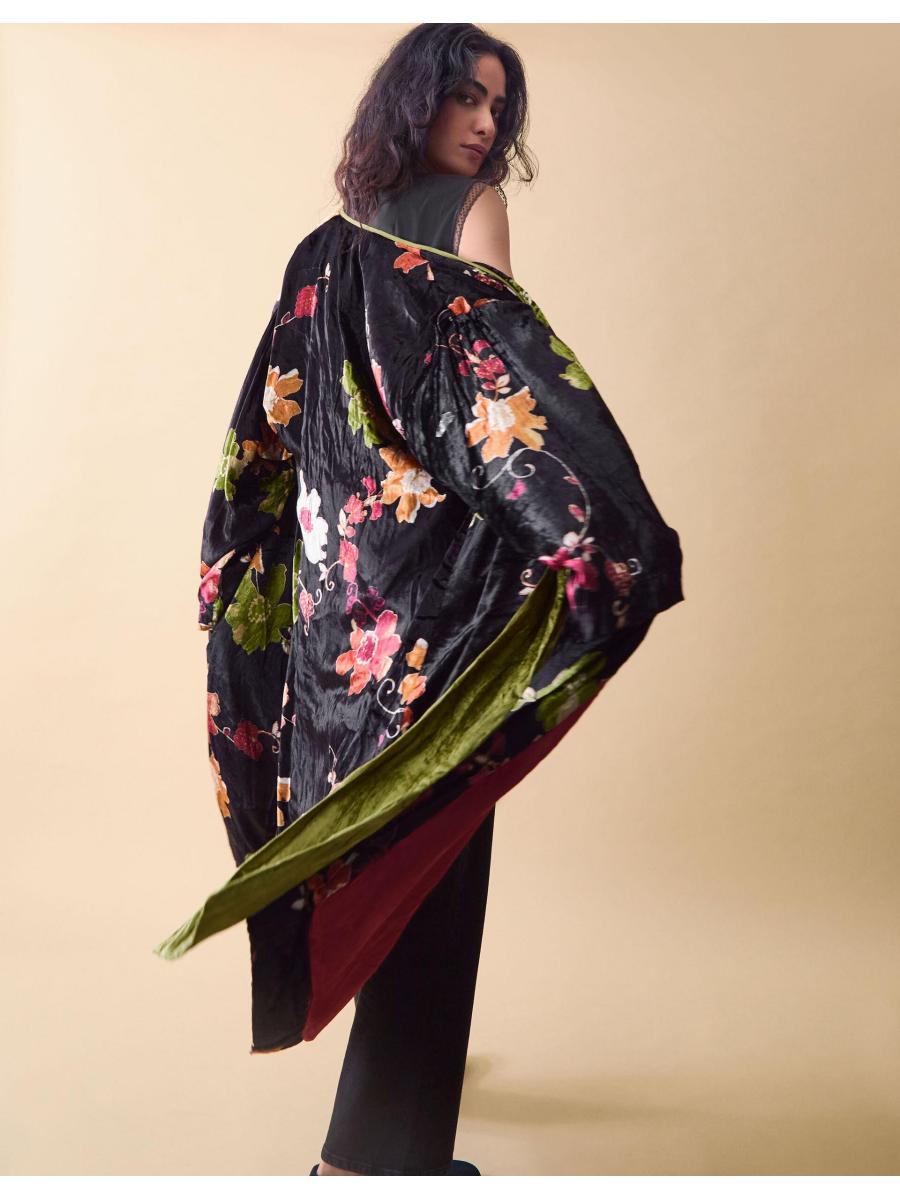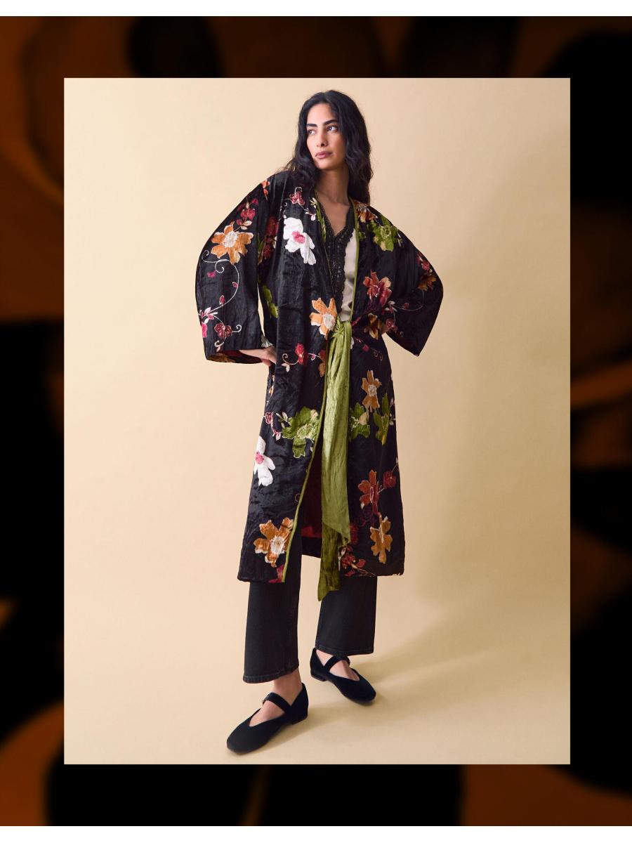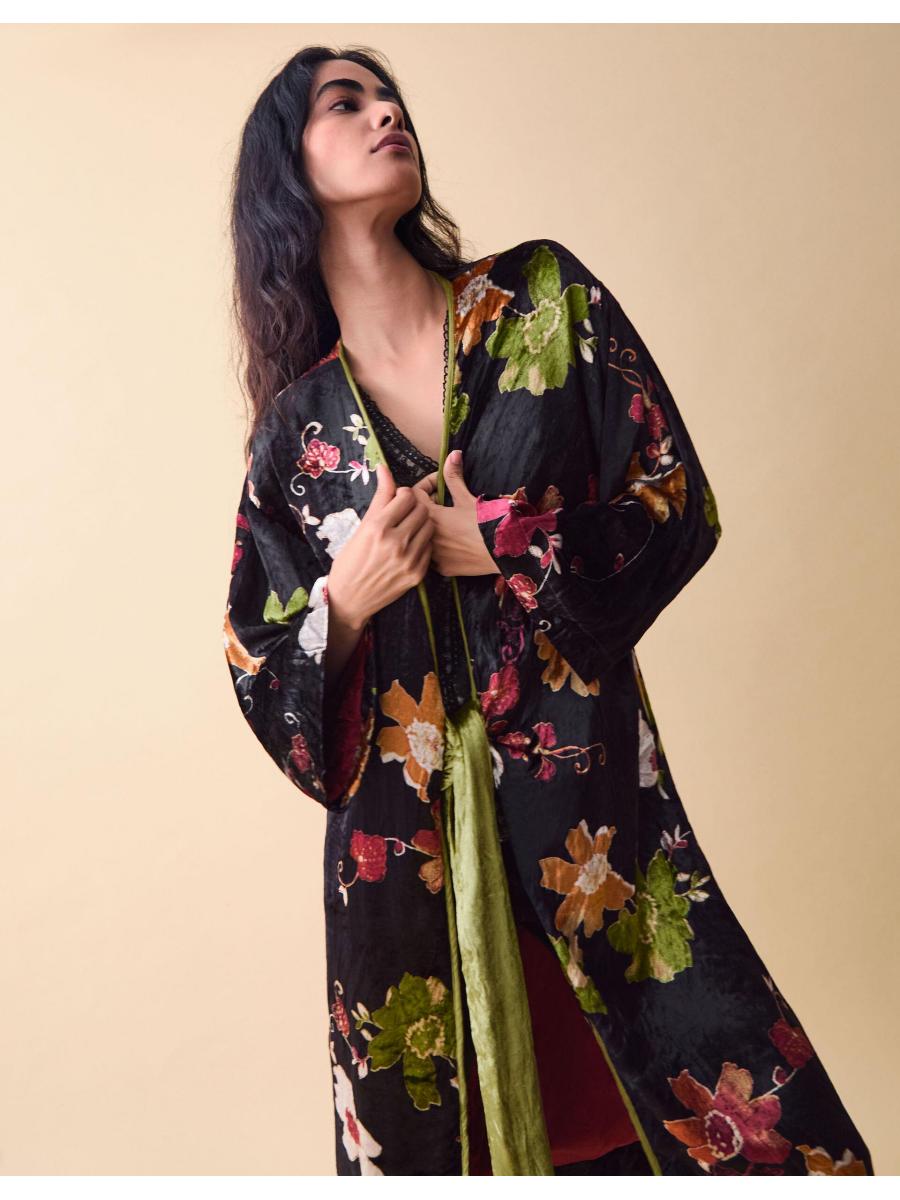 The product: Invest in a kimono, once and flor-al. Cloaked in vibrant florals that pop against the dark velvet backdrop, it's a luxurious layer that'll instantly elevate all your looks. To fulfill the full 90s bohemia fantasy, style with a tank top, jeans and your go-to ballet pumps.