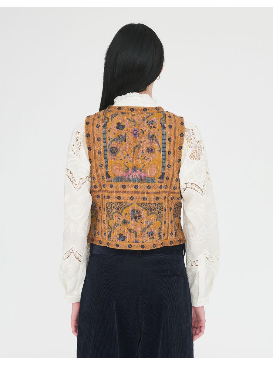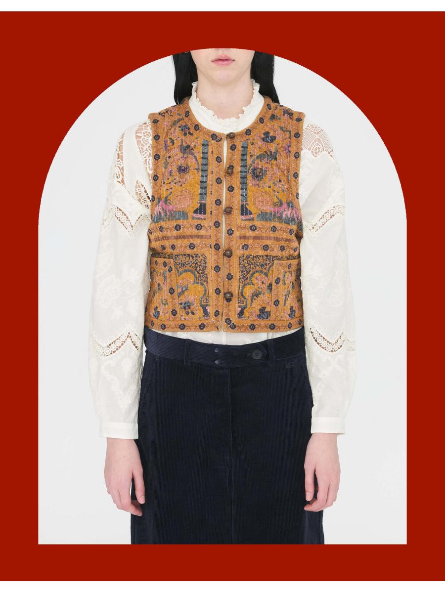 The product: Simply the vest. An artful pick to style over all the blouses and t-shirts in your wardrobe. Printed with decorative flora and fauna and woven with a fil-coupé effect, giving raw texture to the jacquard fabric, this waistcoat features wooden buttons and two patch pockets. Our favourite part? The contrast printed lining.