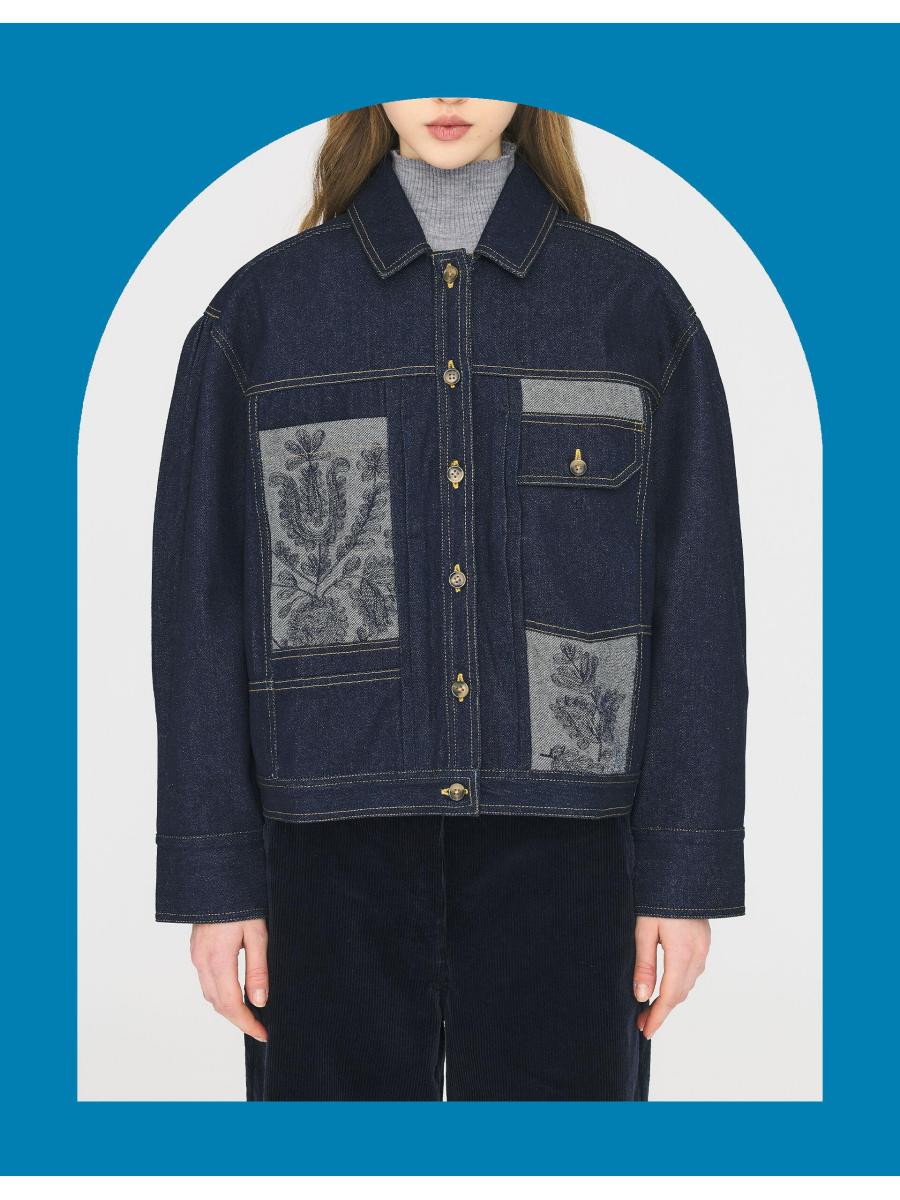 The product: Warning: will cause compliments. A utility-inspired shape imbued with one-of-a-kind finishes, this jacket will become a statement staple in your wardrobe. Designed in a dark wash, it showcases hand-embroidered patches and features a chest pocket and front button fastenings.