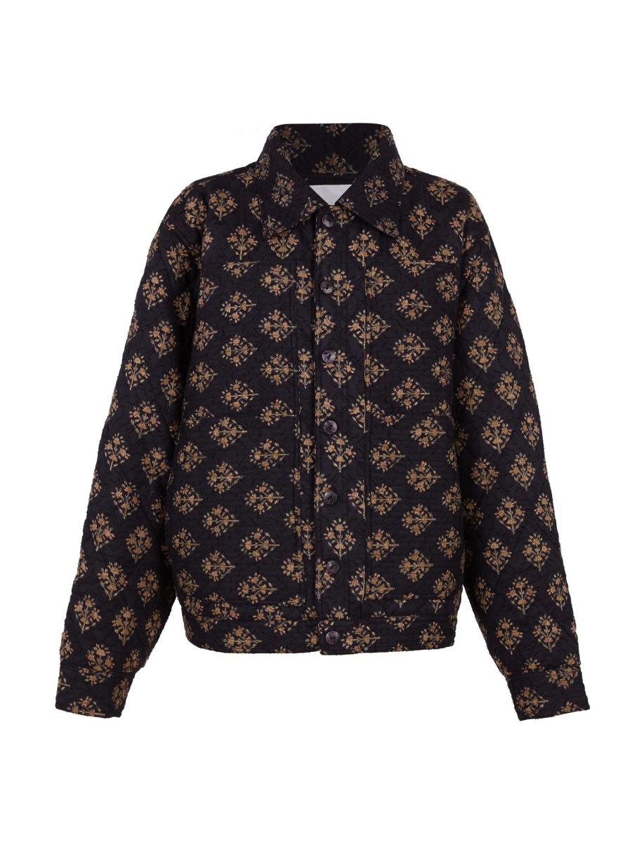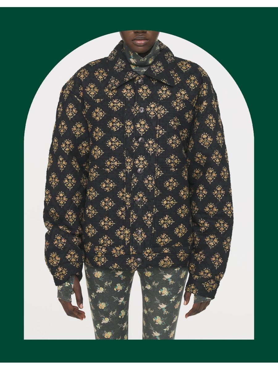 The product: It's shacket time. A smart pick for between-seasons styling, this jacket is designed with a classic collar, large pockets, front button fastenings and a slightly oversized fit. Showcasing ornamental floral motifs and a soft quilted finish, it's woven with a fil-coupé effect, giving raw texture to the jacquard fabric. When it's too cold for just a jumper, and too warm for the full winter coat look, opt for this.