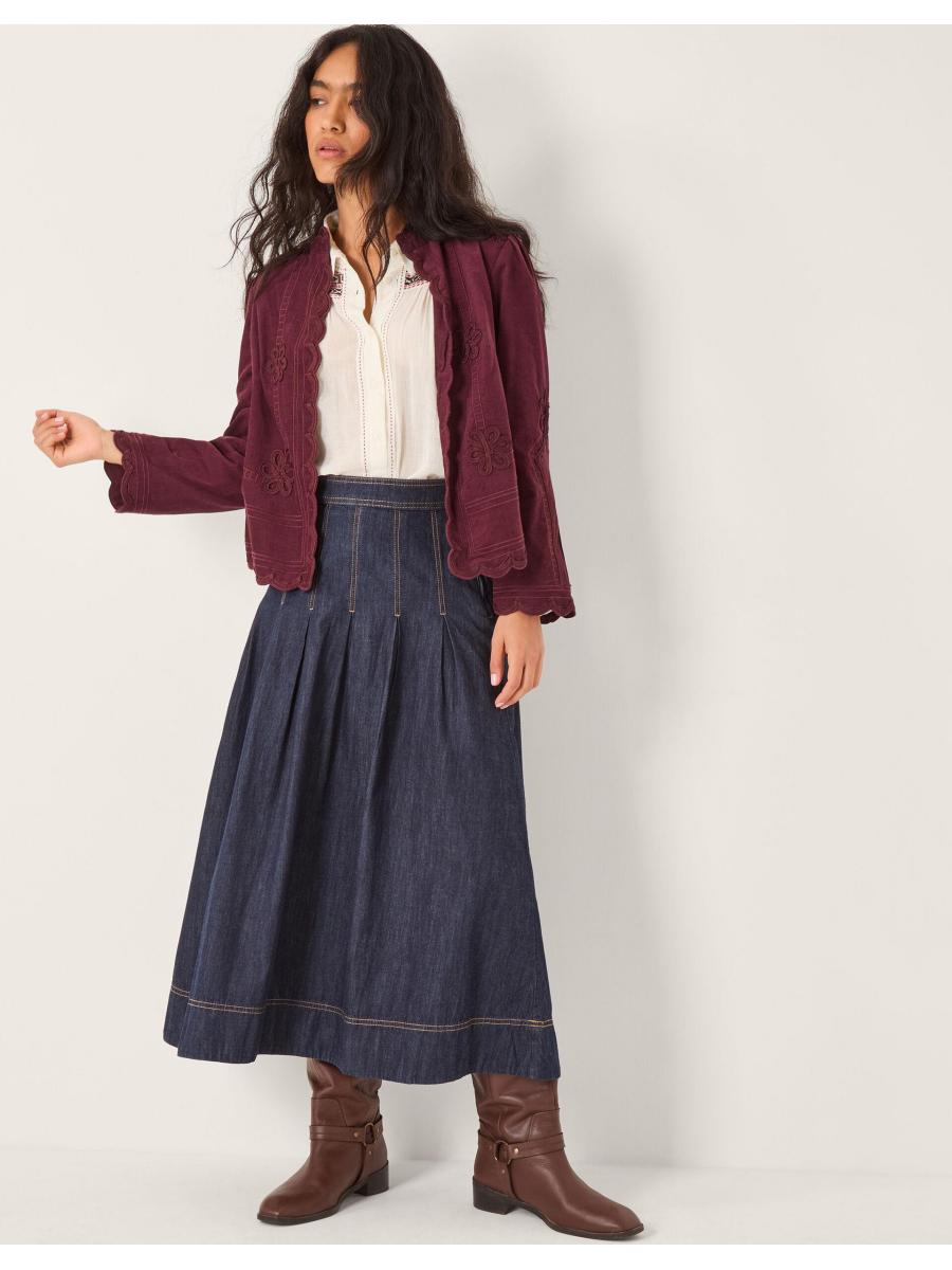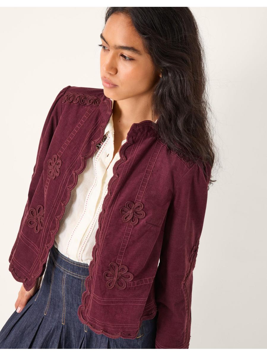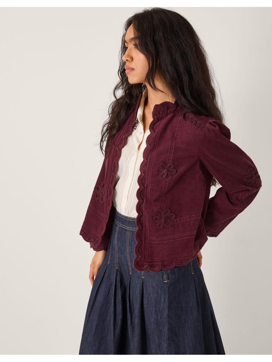 Flowers that won't wilt this autumn. Featuring embroidered blooms and scalloped edges, this lightweight jacket is a layer you never knew you needed. Heading out for a walk or meeting the girls for coffee? Style it with jeans and a blouse and you'll be on your way. Red