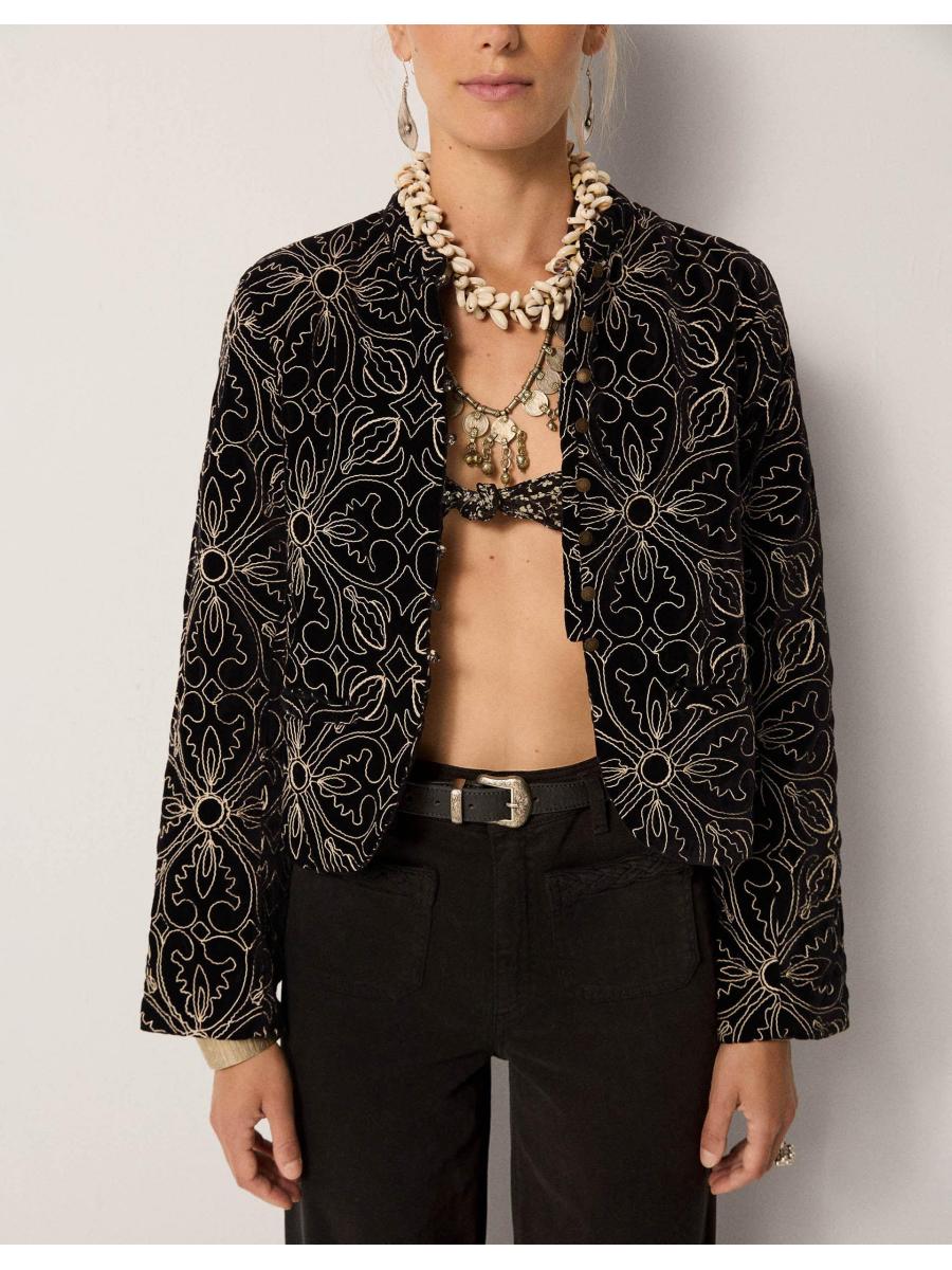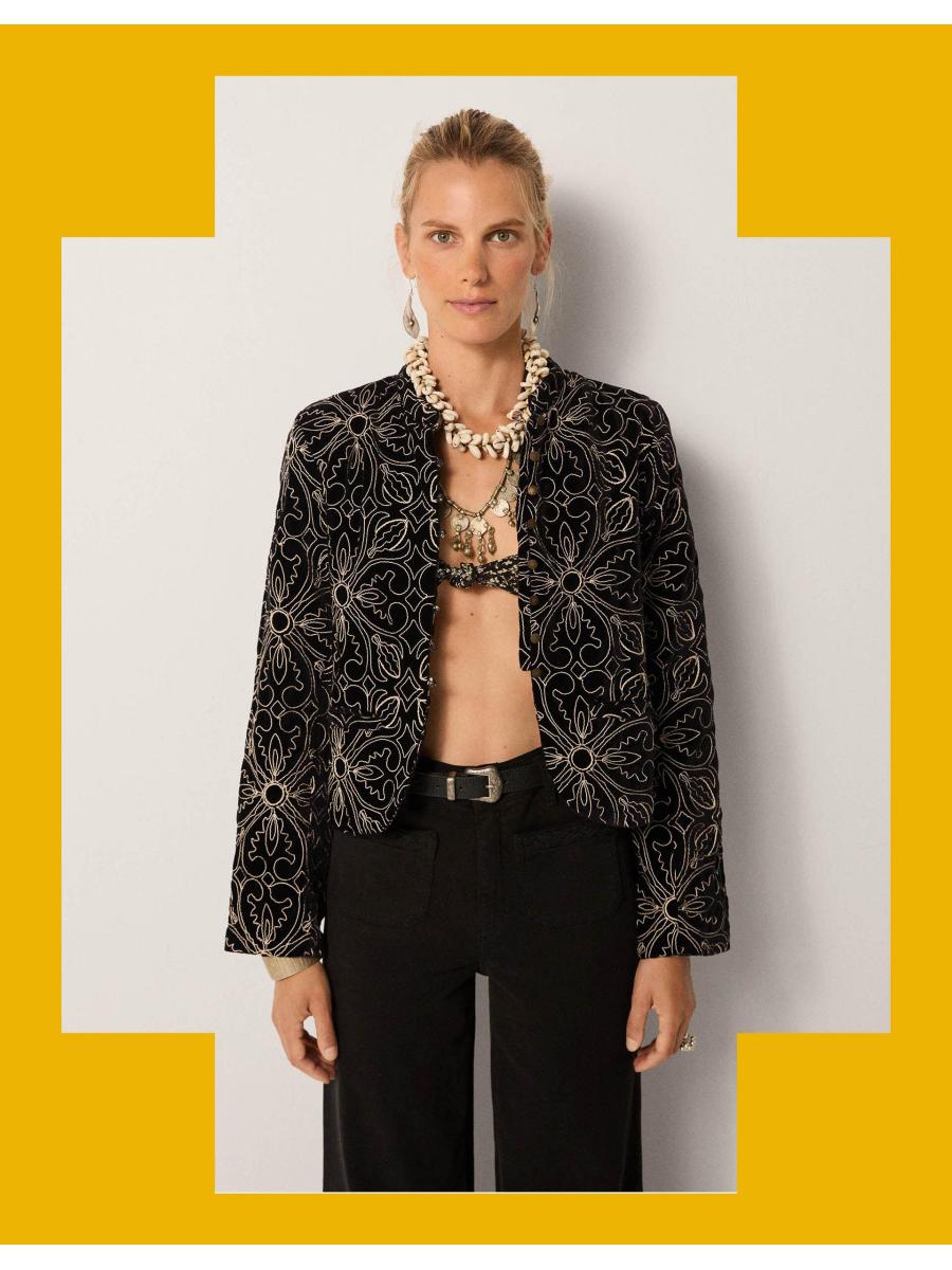 The product: We've never met a velvet jacket we didn't like. Luxuriously soft and brimming with boho charm, this jacket boasts contrasting floral motifs for a statement finish. Fastening with dainty buttons through the front, it's the ultimate layer for all your evening looks.
