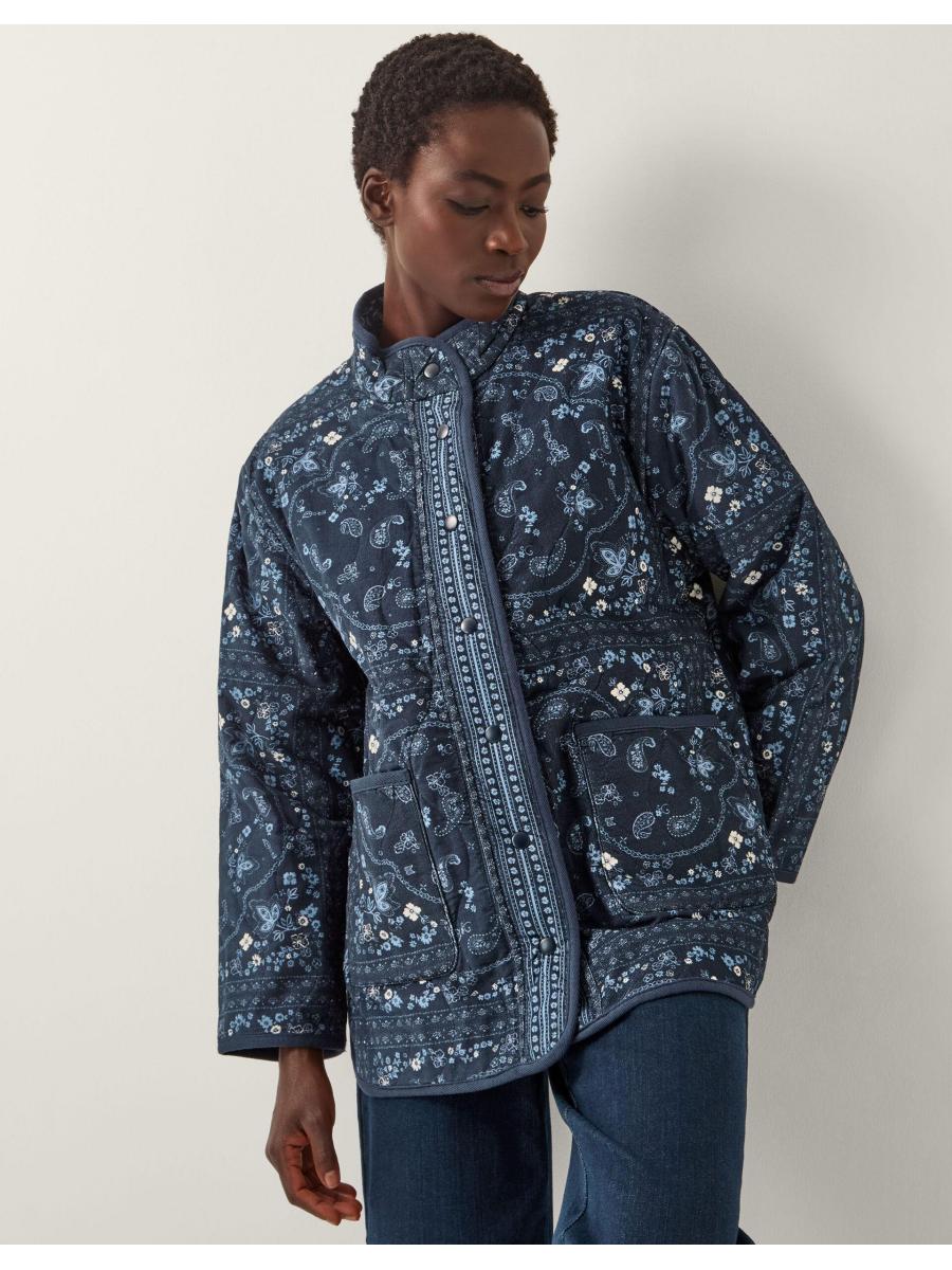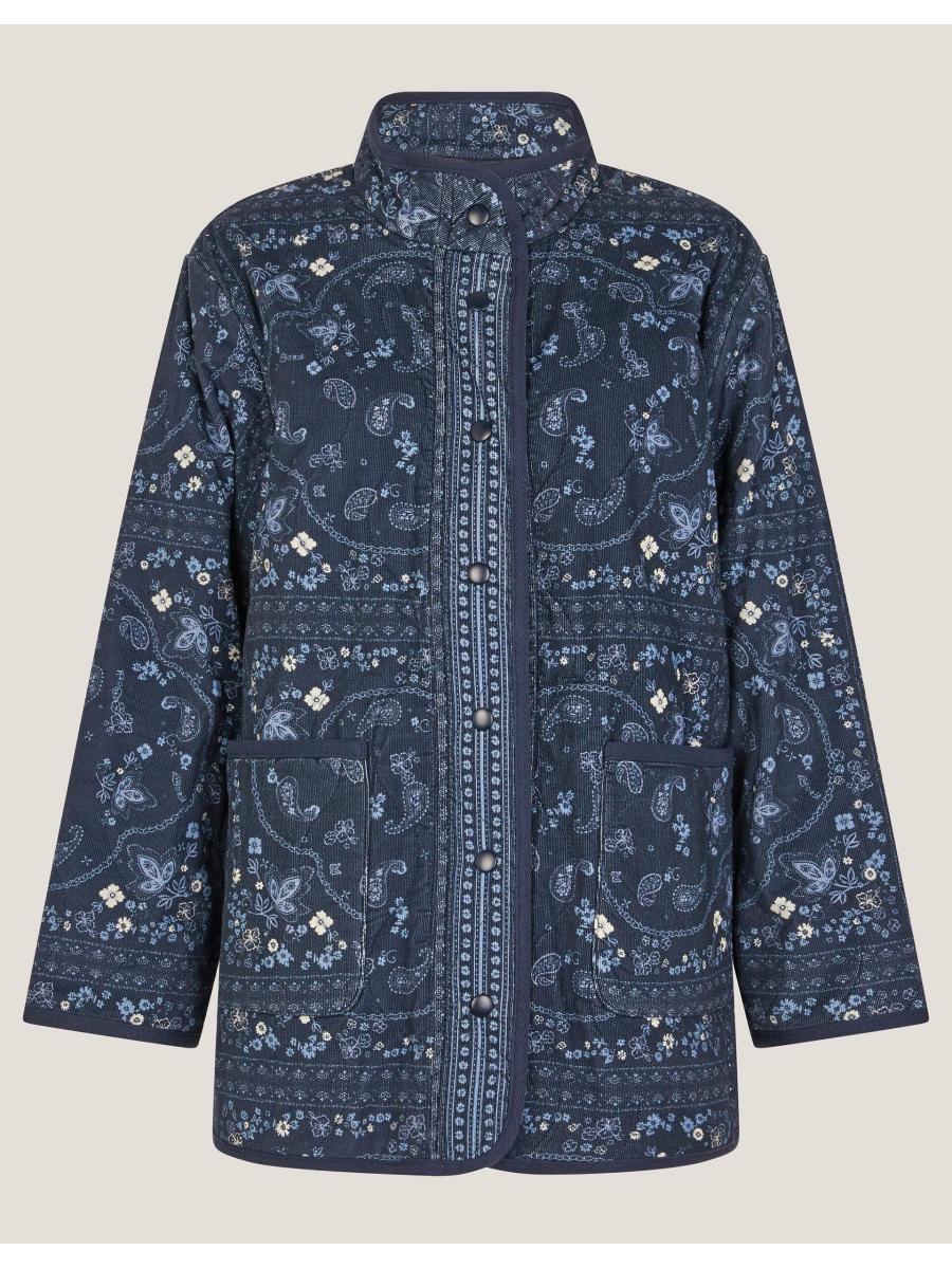 Paisley perfection. Designed with quilted panels, this corduroy jacket is patterned with ditsy florals and eye-catching paisleys. Featuring a high-neck collar, trusty pockets and button fastenings, it's made for afternoon strolls and flower market runs. Trans-seasonal outerwear sorted...