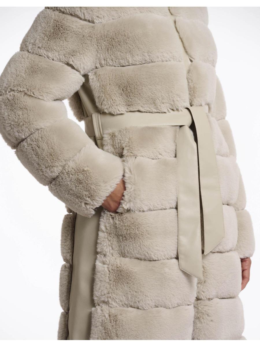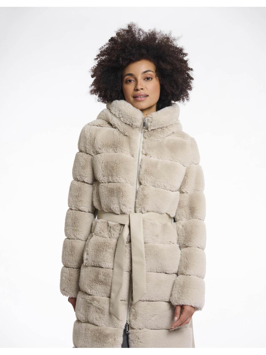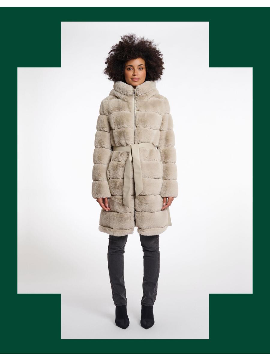 The product: Cosy cocoon. Turning every winter stroll into a catwalk, this coat offers big *main character* energy. Designed in oh-so soft faux fur with a padded finish, it features a hood, front zip fastening and faux leather tie-up belt to cinch the waist.