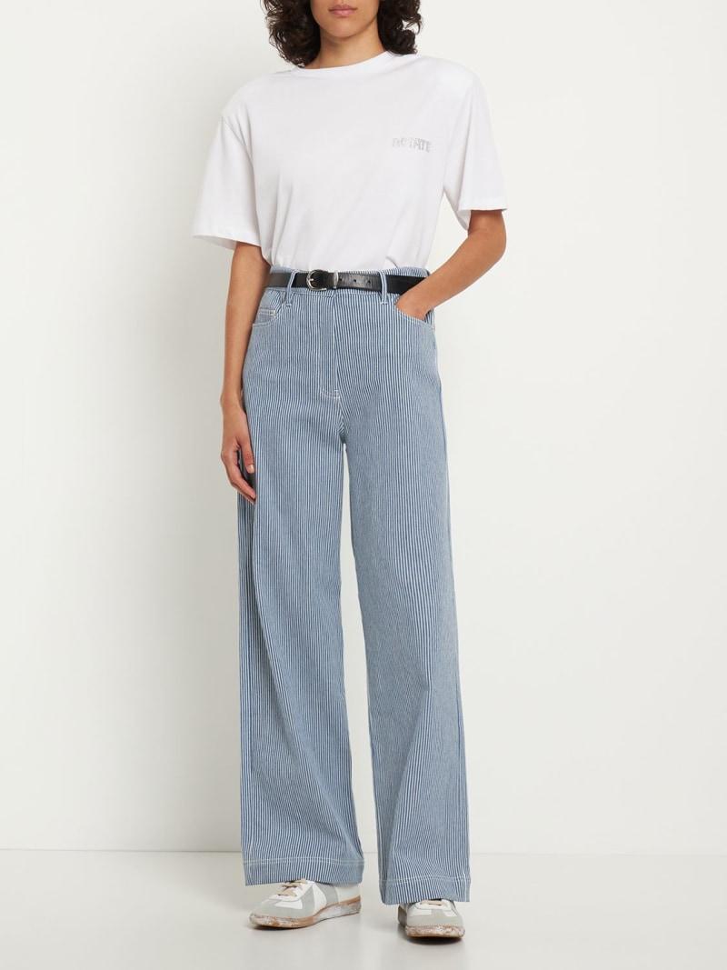 Boxy版型激光镂空有机棉T恤 - 亮白色 - 女士 - Rotate - 正面logo细节
