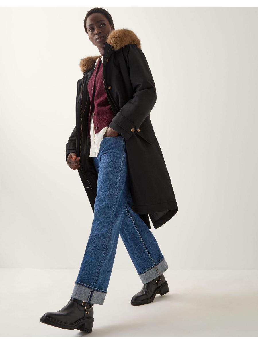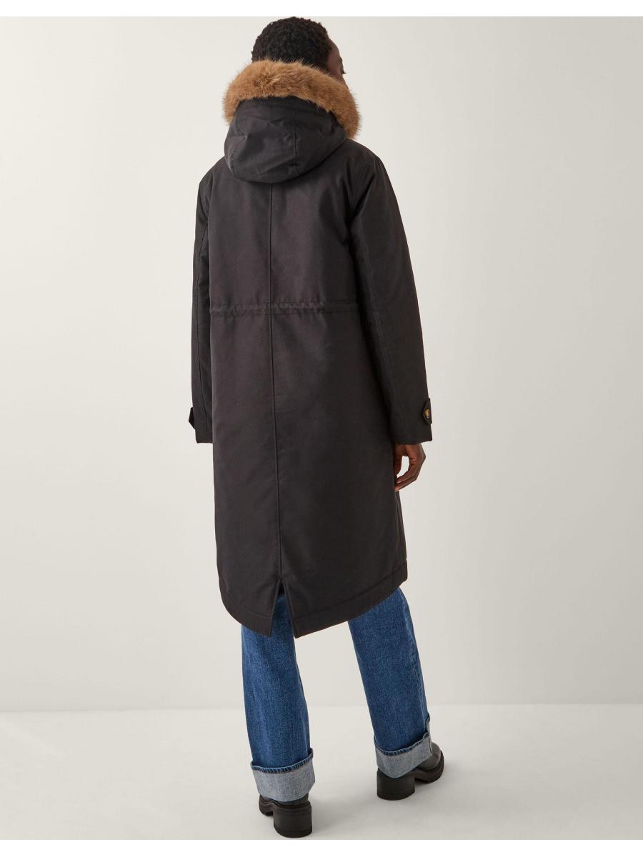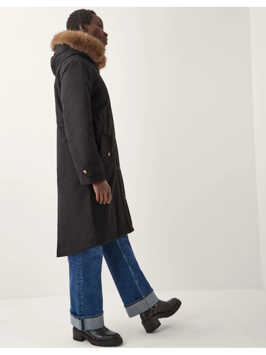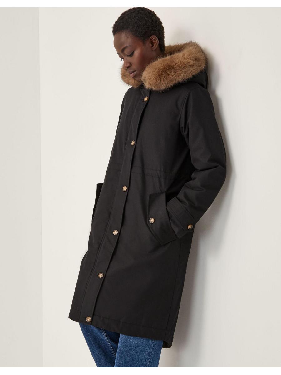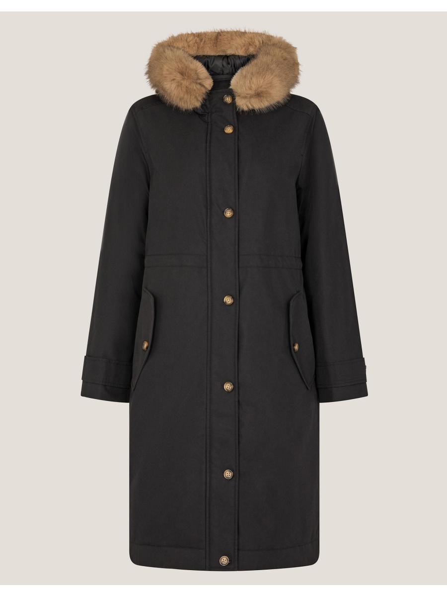 Brrrrrr. Designed to keep you cosy, this classic parka coat features a hooded neckline with faux fur trim and a discreet front zip fastening. Complete with side pockets. Black