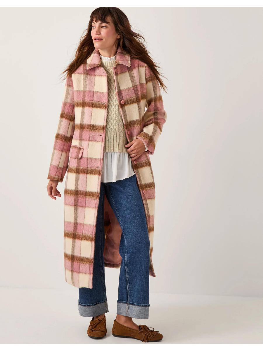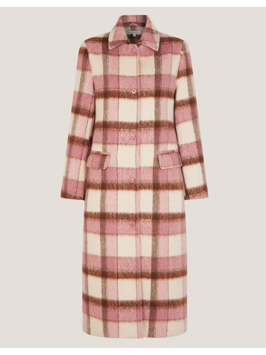 Description Forecast: 100% Chance of cosiness. Lighten up your winterwear with this checkered print coat. Hosting shades of pink, brown and cream, the brushed texture gives it a finish so soft, it'll feel like being wrapped up in a blanket. Features a smart collar, flap pockets and front button fastenings. Pink Details Fabric & Details Outer: Polyester 100% L 120 CM machine wash Button fastening Collared neckline Long sleeves Print Weight: 300.0 ID: 10061050009b-details__content-item"> Outer: Polyester 100%