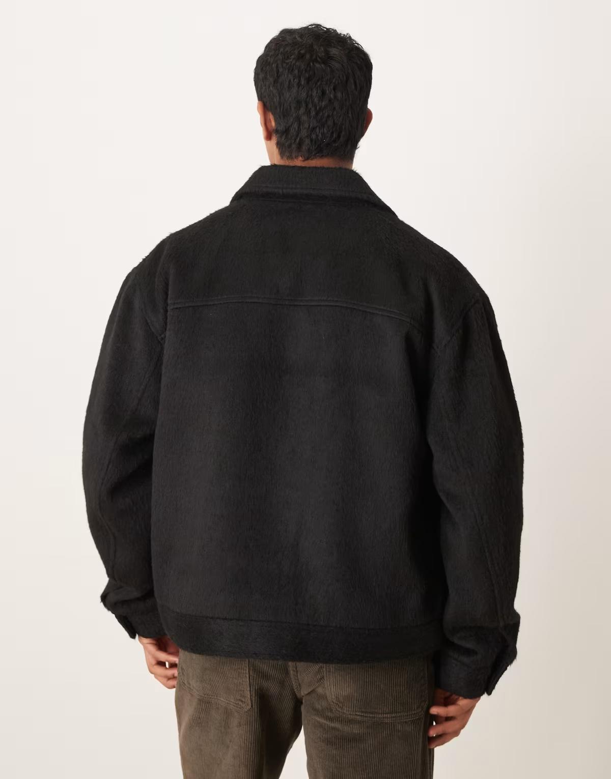 ASOS DESIGN wool look brushed harrington jacket in brown