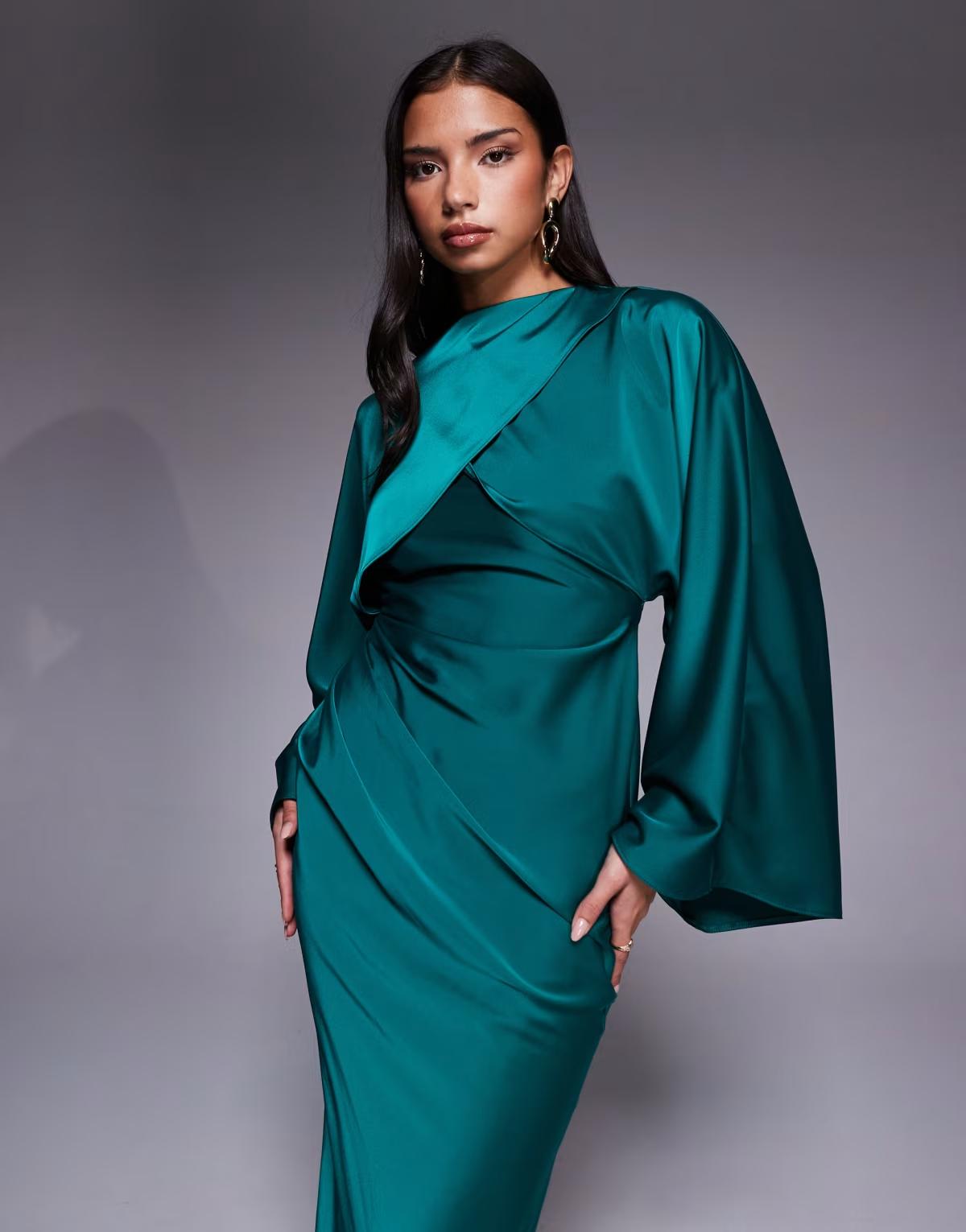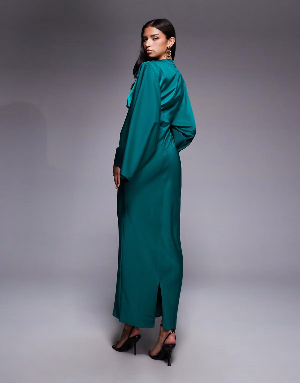ASOS DESIGN wrap front batwing satin bias maxi dress in black