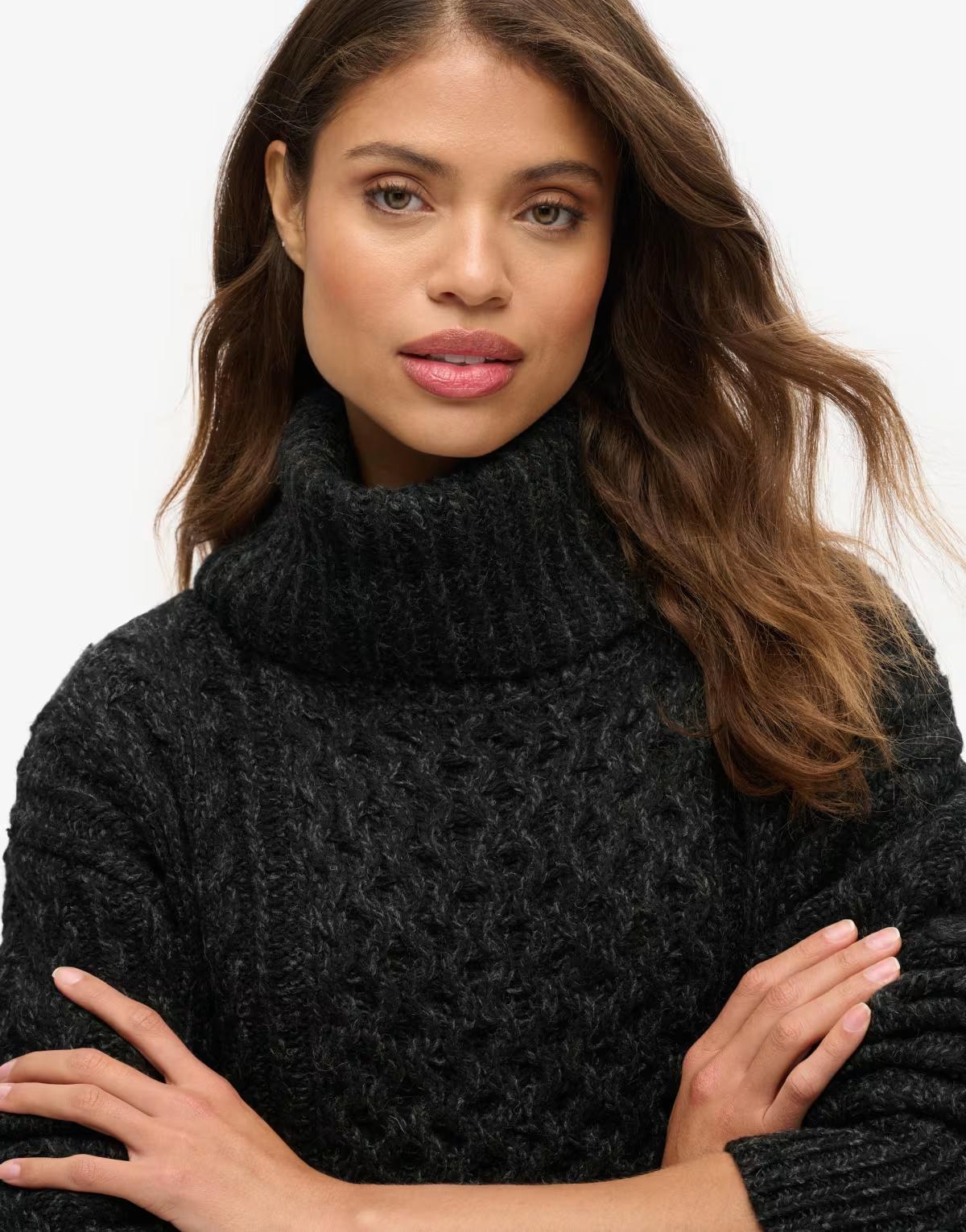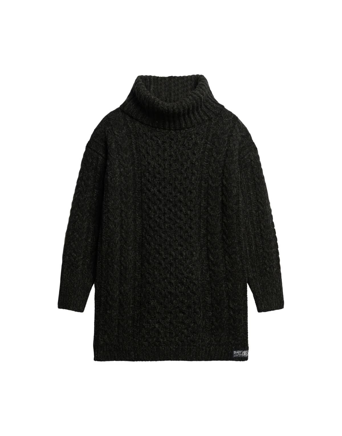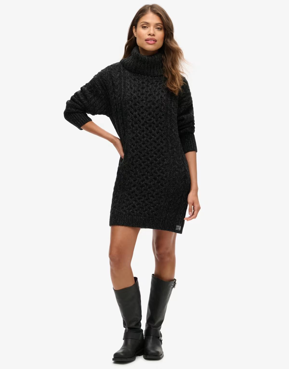 Superdry Roll neck cable jumper dress in black twist